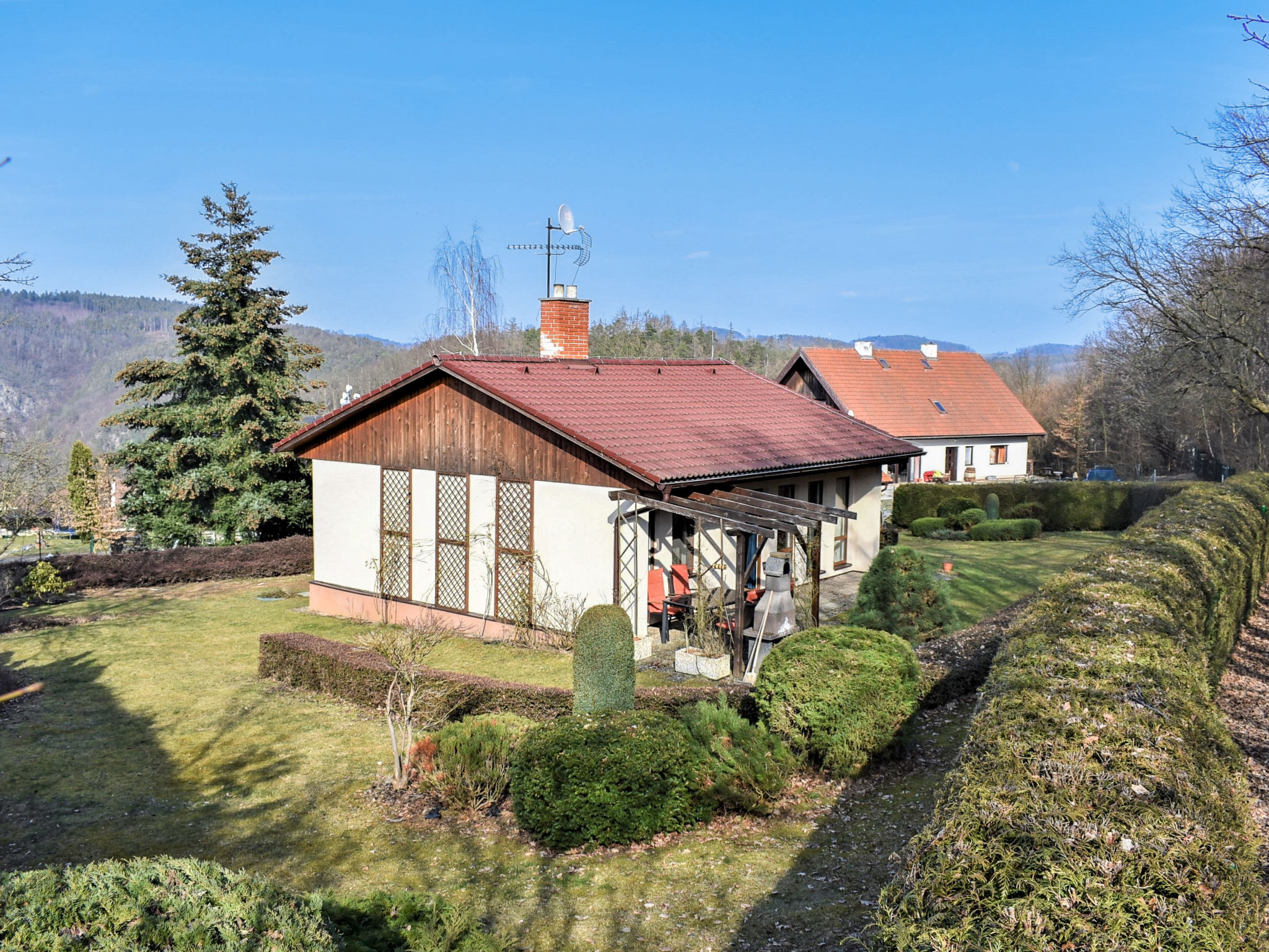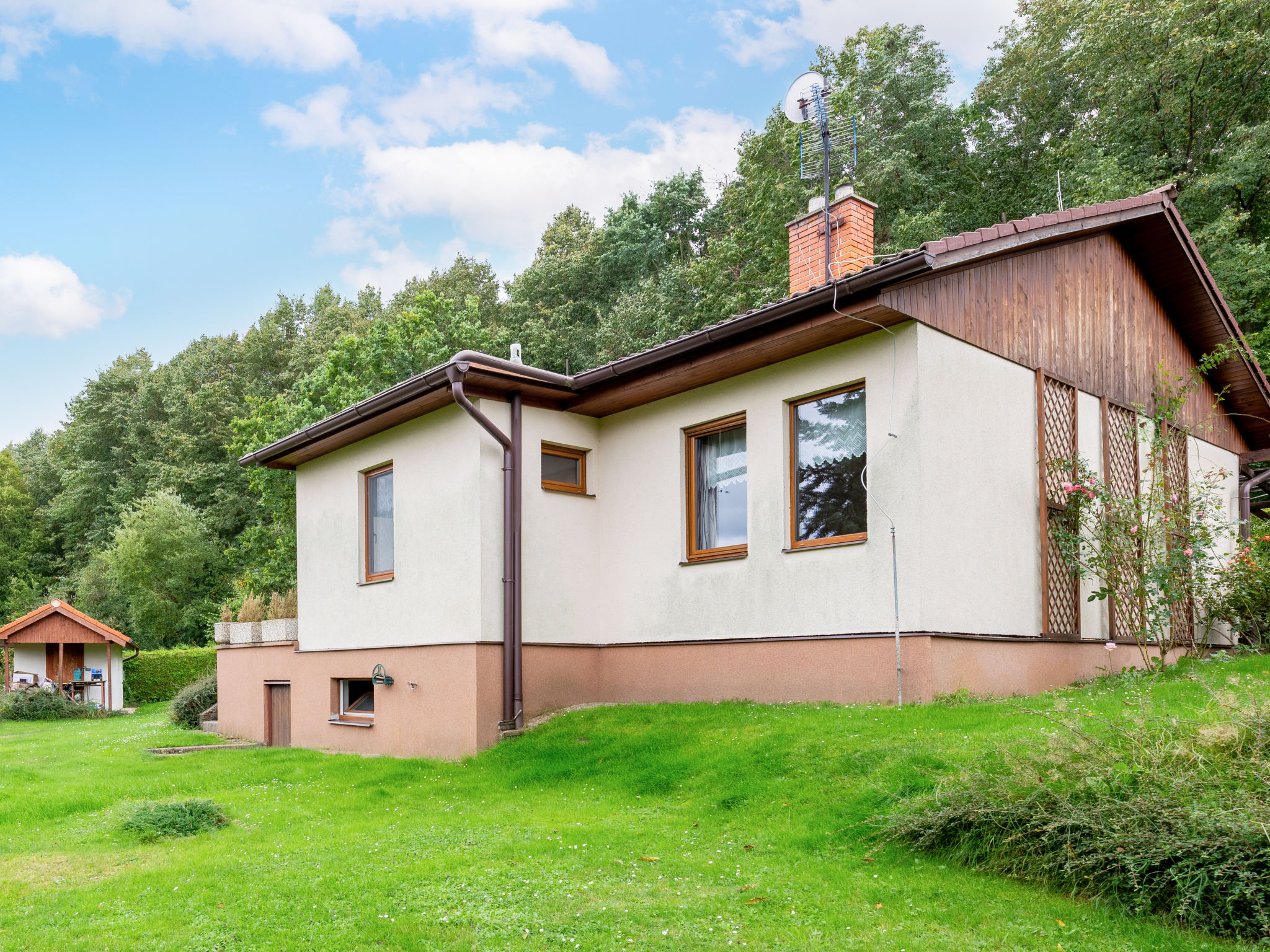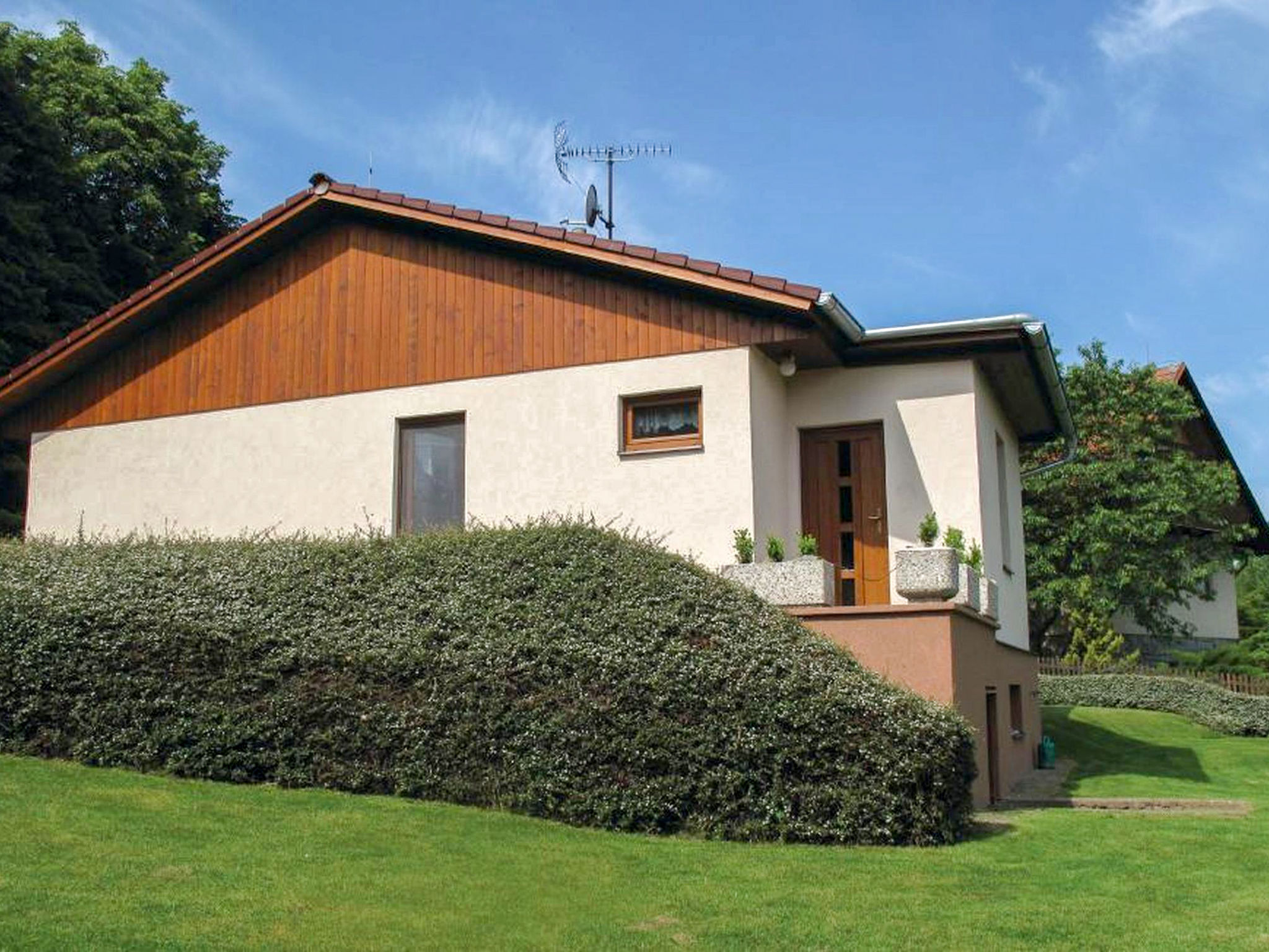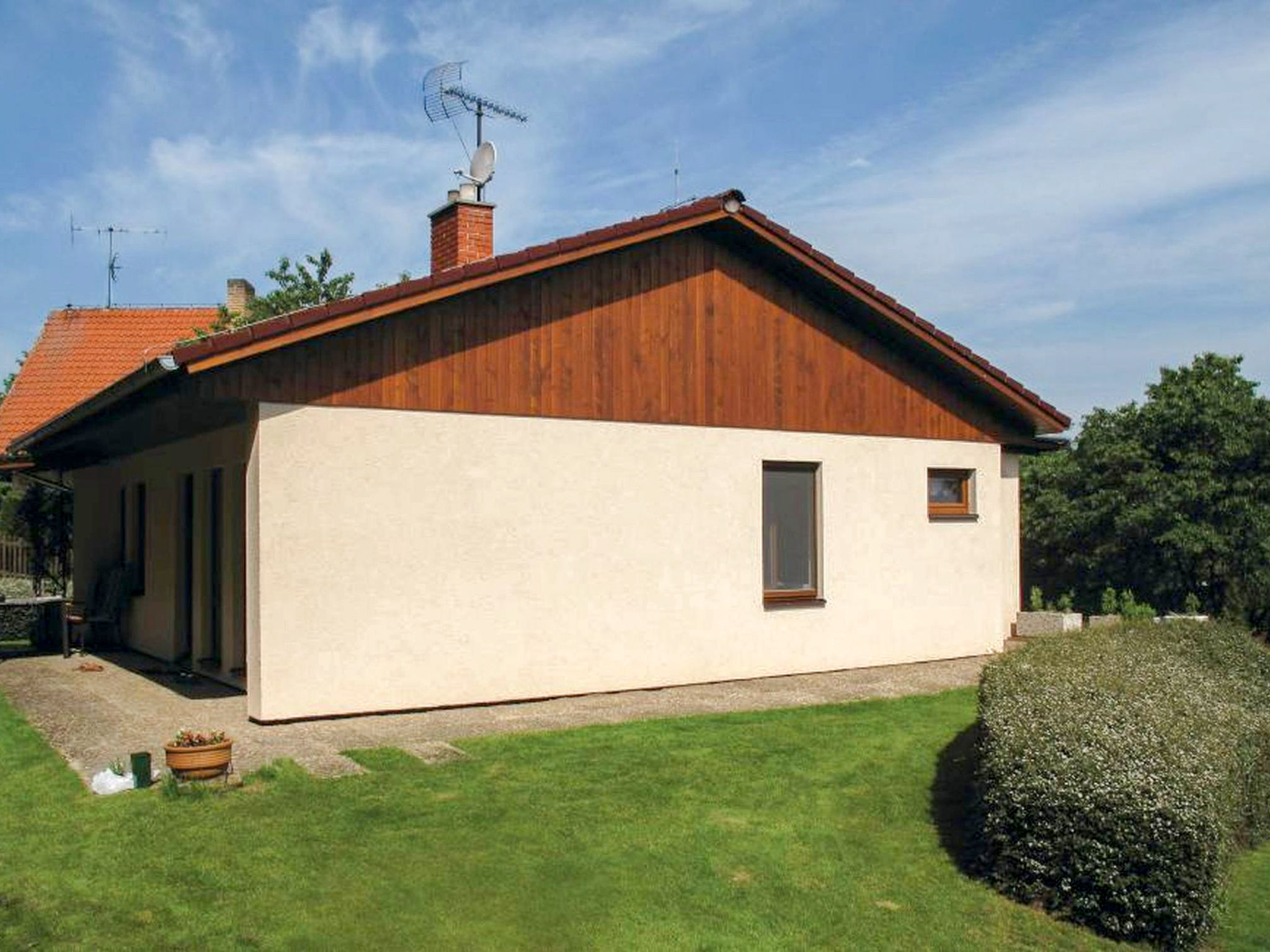 Měřín 5 km von Rabyně: Modernes, schönes, alleinstehendes Einfamilienhaus "Měřín". Am Ortsrand, ruhige, sonnige Lage, 900 m vom See. Zur Alleinbenutzung: Garten 700 m2 (eingezäunt). Sitzplatz, Gartenmöbel, Grill, öffentliche Parkplätze auf der Strasse. Lebensmittelgeschäft 1.5 km, Supermarkt 8 km, Restaurant 3 km, Bushaltestelle "Rabyně - Měřín" 250 m, Sandstrand "vodní nádrž Slapy" 1.5 km, Hallenbad 1.5 km, Badesee "vodní nádrž Slapy" 900 m. Tennis 1.5 km, Tennishalle 1.5 km, Sportzentrum 1.5 km, Wanderwege ab Haus 20 m, Kinderspielplatz 1.5 km. Nahe gelegene Sehenswürdigkeiten: vodní nádrž Slapy 900 m, Krňanský vodopád, vyhlídka Máj 12 km, zámek Konopiště, zámek Dobříš 20 m, Mníšek pod Brdy 27 m, zámek Jemniště 32 km, Praha, Pražský hrad, hrad Karlštejn 55 m. Wandergebiete: Svatojanské proudy 9 km.