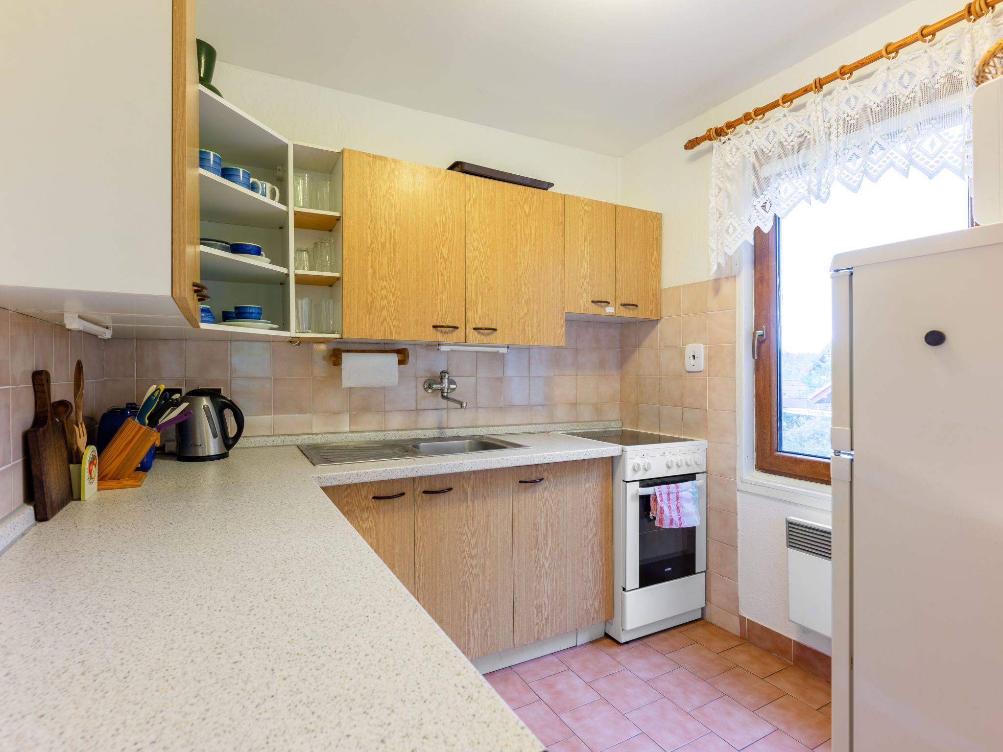 3-Zimmer-Bungalow 90 m2. Geräumig und hell, komfortabel eingerichtet: Wohnzimmer mit 1 Doppeldiwanbett, Schwedenofen, Sat-TV und Kabel-TV (Flachbildschirm). 1 Zimmer mit 1 Doppelbett. 1 Zimmer mit 2 Betten. Küche (Backofen, 4 Glaskeramikherd Platten, Wasserkocher, Mikrowelle, Tiefkühler, elektrische Kaffeemaschine) mit Esstisch. Dusche, sep. WC. E-Heizung, Holzheizung, Boiler (120 Liter). Gartensitzplatz 5 m2. Terrassenmöbel, Gartengrill. Schöne Sicht auf den See. Zur Verfügung: Babybett. Internet (Wireless LAN, gratis). Maximal 2 Haustiere/Hunde erlaubt.