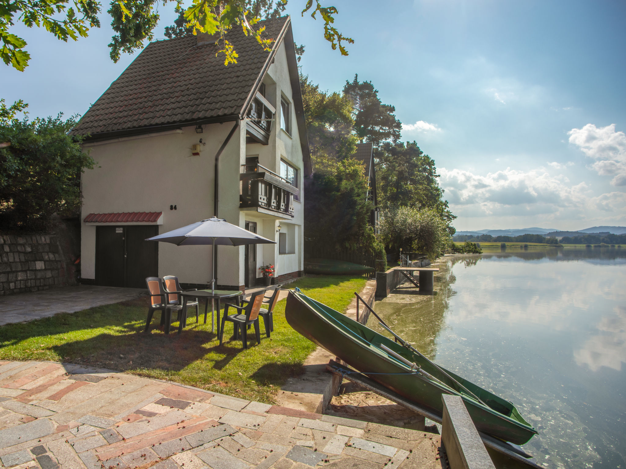 Alleinstehendes Chalet "Panorama (DEH100)", 400 m.ü.M., auf 4 Stockwerken. 500 m vom Zentrum von Dehtáře, am Ortsrand Holašovice, 15 km vom Zentrum von Hluboká nad Vltavou, ruhige, sonnige Lage, 3 m vom See. Zur Alleinbenutzung: naturbelassenes Grundstück 420 m2, Garten (nicht eingezäunt) Bäumen, Wiese. Terrasse, Gartenmöbel, Feuerstelle, Badesteg, Badeplatz. Zur Verfügung: Kanu, Boot. 800 m lange schmale Zufahrt. Parkplatz (für 2 Autos) auf dem Grundstück. Einkaufsgeschäft 1.5 km, Supermarkt 15 km, Restaurant 1.5 km, Biergarten 400 m, Bushaltestelle "Dehtáře" 500 m, Bahnstation "Netolice" 11 km, Sandstrand 3 m, Freibad 15 km, Hallenbad 15 km, Badesee "Dehtáře" 3 m. Golfplatz (18 Loch) 15 km, Wanderwege ab Haus, Radweg 10 m. Nahe gelegene Sehenswürdigkeiten: UNESCO Holašovice 6 km, Hluboká nad Vltavou 15 km, České Budějovice 15 km, Dívčí kámen 18 km, Český Krumlov 36 km. Bekannte Seen in der Umgebung sind gut erreichbar: Dehtáře 3 m.