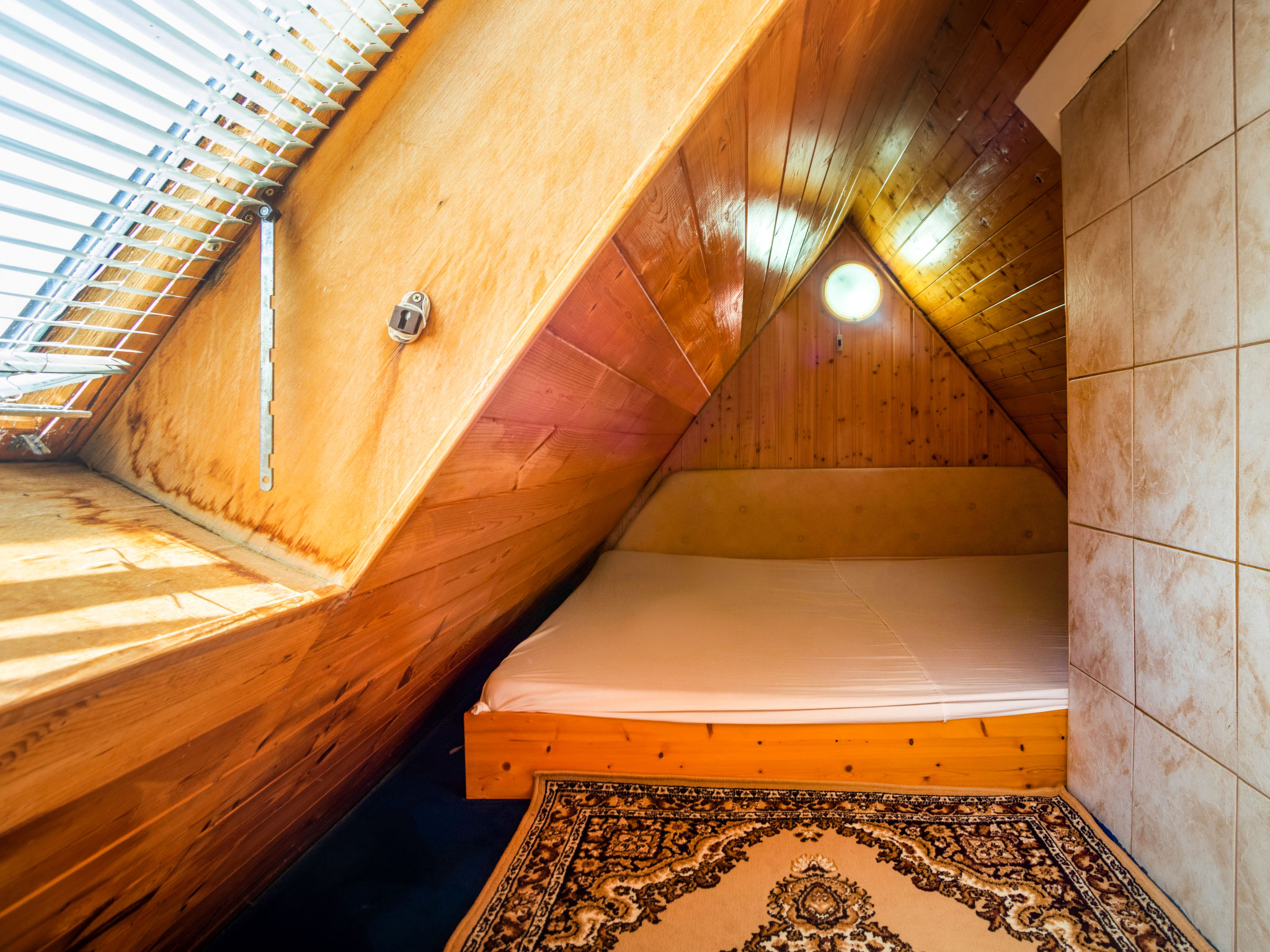 4-Zimmer-Haus 80 m2 auf 4 Stockwerken. Zweckmässig und gemütlich eingerichtet: Küche (4 Kochplatten, Backofen, Toaster, Wasserkocher, Mikrowelle, elektrische Kaffeemaschine). Dusche/WC. E-Heizung. Obergeschoss: Wohn-/Schlafzimmer mit 1 Diwanbett, offenem Kamin, Esstisch, Sat-TV und DVD. Ausgang zum Balkon. 2. Obergeschoss: abgeschrägtes Durchgangszimmer mit 2 Betten. 1 abgeschrägtes, offenes Zimmer mit 1 franz. Bett. Sep. WC. E-Heizung. Dachgeschoss: (steile Treppe) 1 abgeschrägtes, offenes Zimmer mit 1 franz. Bett. Balkon. Balkonmöbel. Herrliche Panoramasicht auf den See. Zur Verfügung: Internet (Wireless LAN, gratis). Bitte beachten: Nichtraucher-Unterkunft. 2 kleine Haustiere/Hunde erlaubt.
