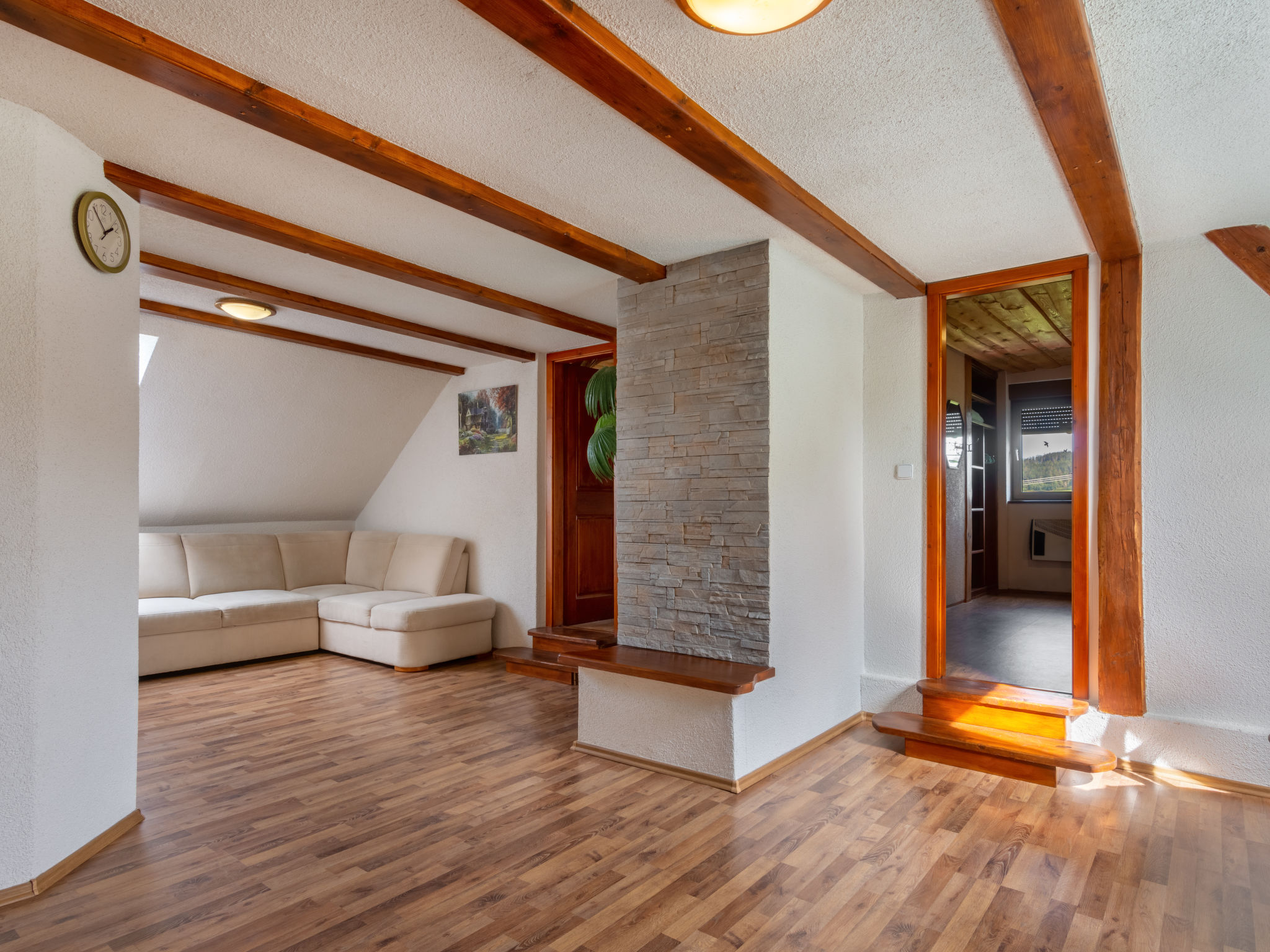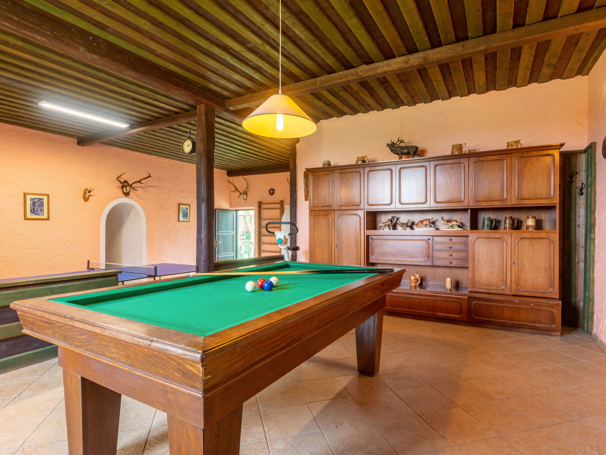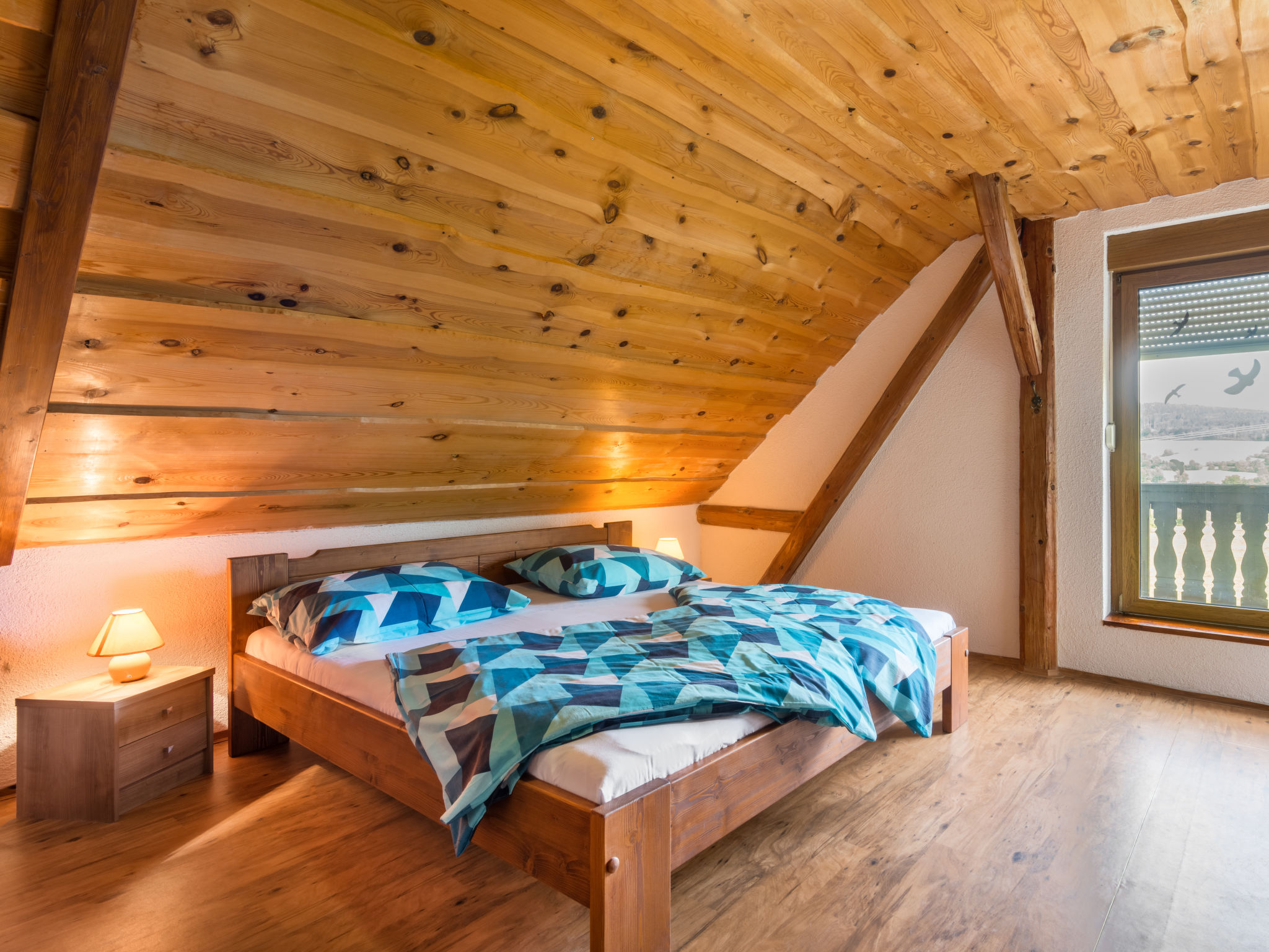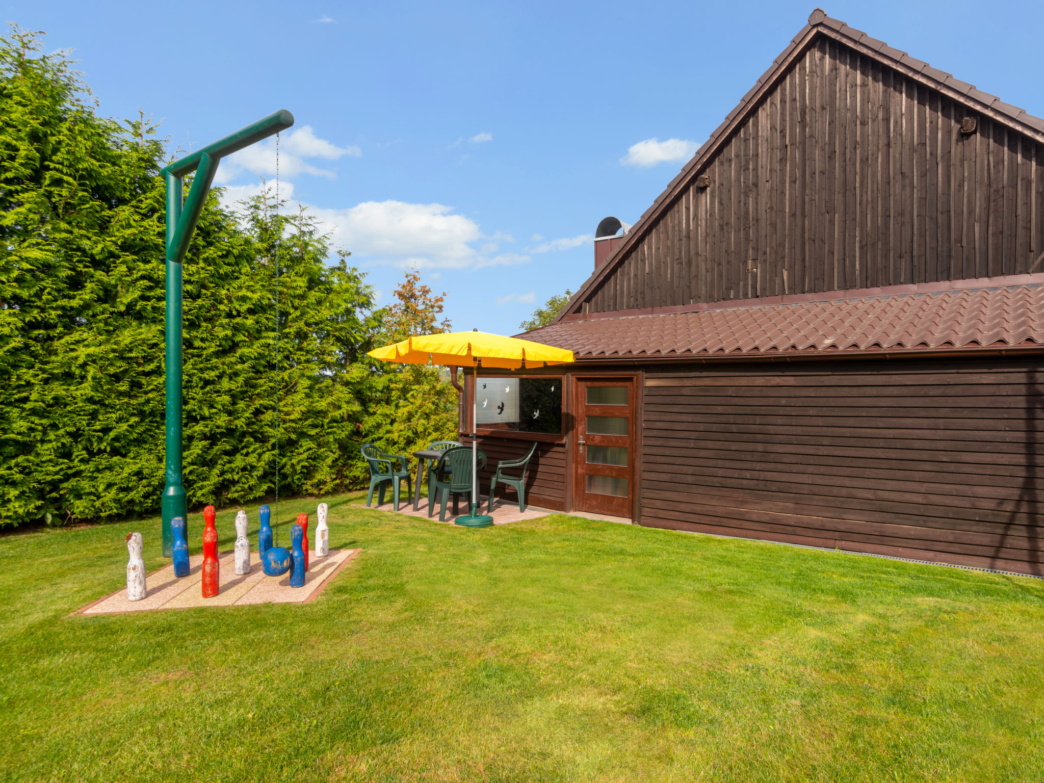 6-Zimmer-Haus 140 m2 auf 2 Stockwerken. Rustikal und gemütlich eingerichtet: Wohnzimmer mit Sat-TV (Flachbildschirm), Radio und DVD. Billardzimmer mit offenem Kamin und Esstisch. 1 Zimmer mit 1 Doppelbett. 1 Zimmer mit 1 Doppelbett. Küche (Backofen, Geschirrspüler, 4 Glaskeramikherd Platten, Toaster, Wasserkocher, Mikrowelle, elektrische Kaffeemaschine) mit Essecke. Dusche, Dusche/Bidet/WC, Doppelwaschbecken, Sauna. E-Heizung. Obergeschoss: 1 abgeschrägtes Zimmer mit 1 Doppelbett. 1 abgeschrägtes Zimmer mit 1 Doppelbett. Dusche/WC. E-Heizung. Gartensitzplatz. Terrassenmöbel, Gartengrill. Panoramasicht. Zur Verfügung: Waschmaschine, Sauna, Kinderhochstuhl, Babybett. Internet (Wireless LAN, gratis). Bitte beachten: Nichtraucher-Unterkunft. Maximal 3 Haustiere/Hunde erlaubt.