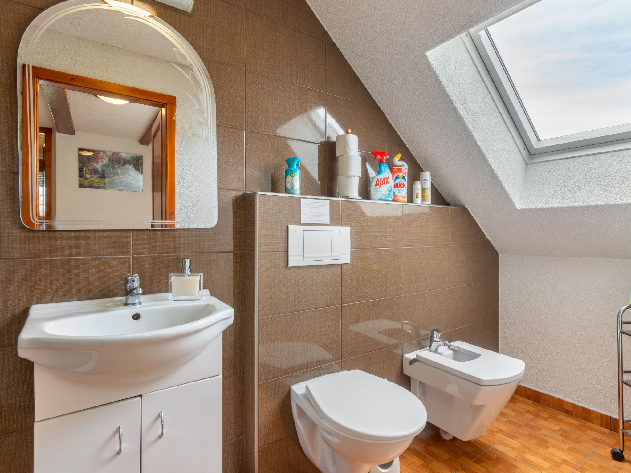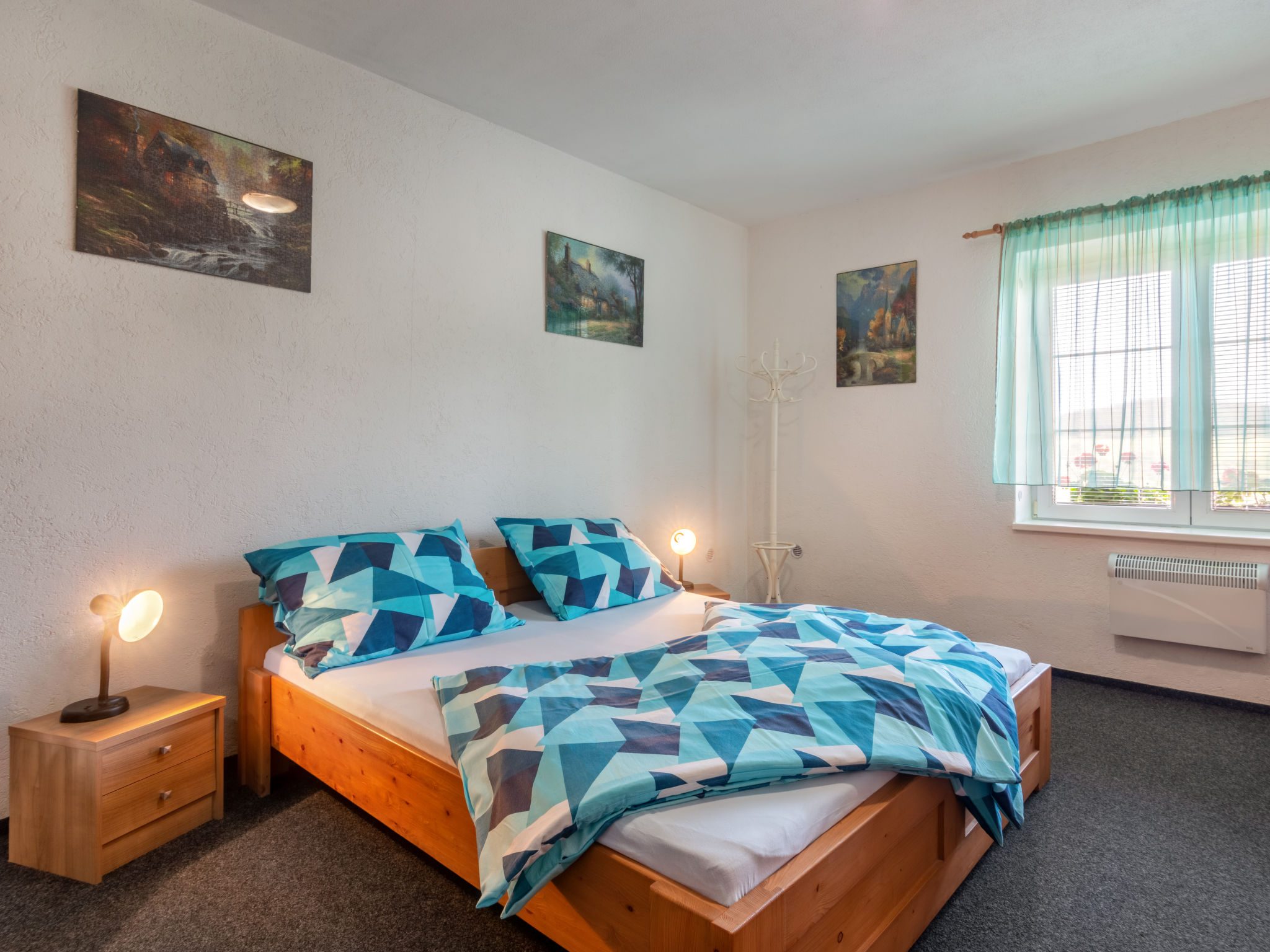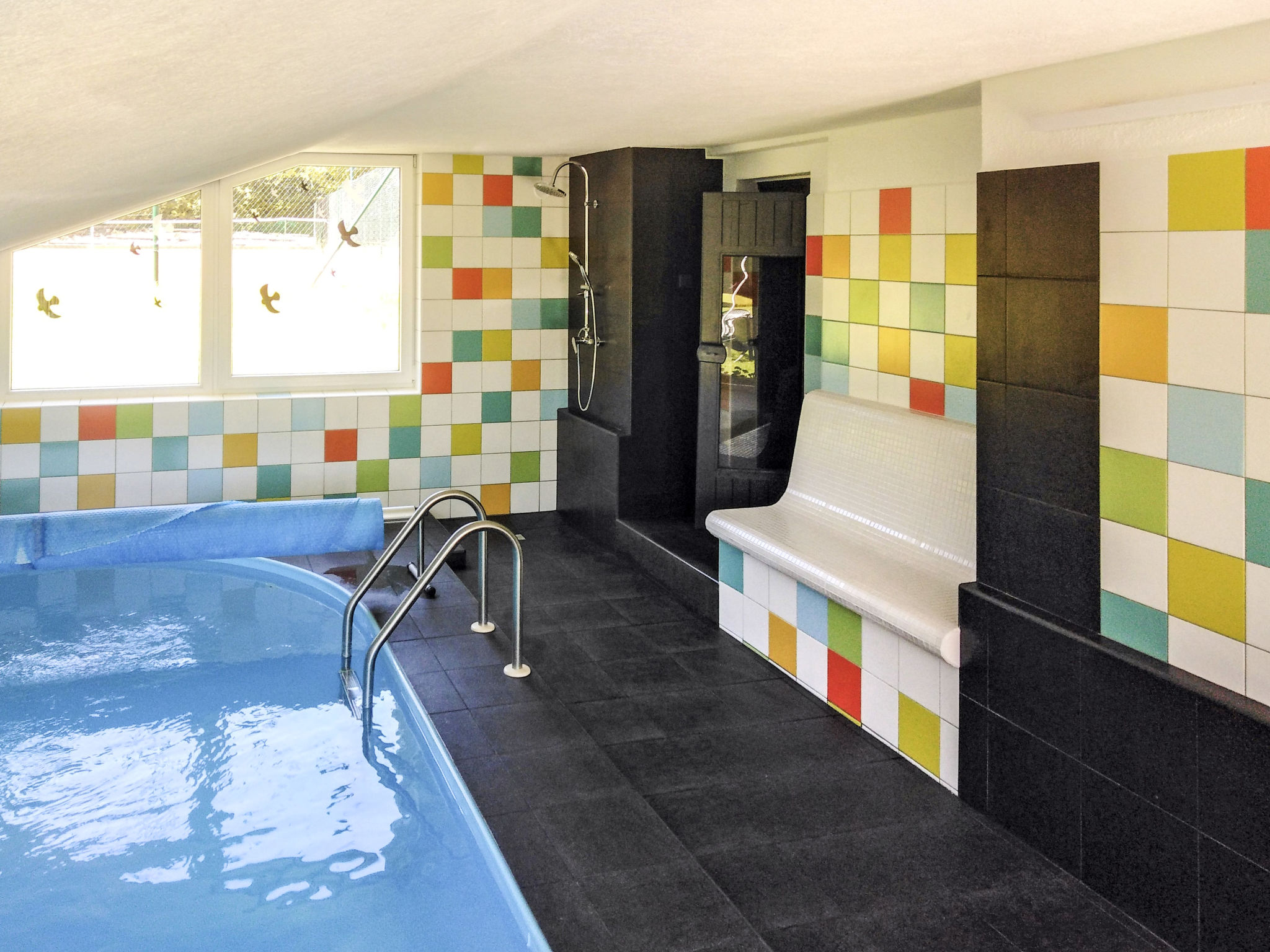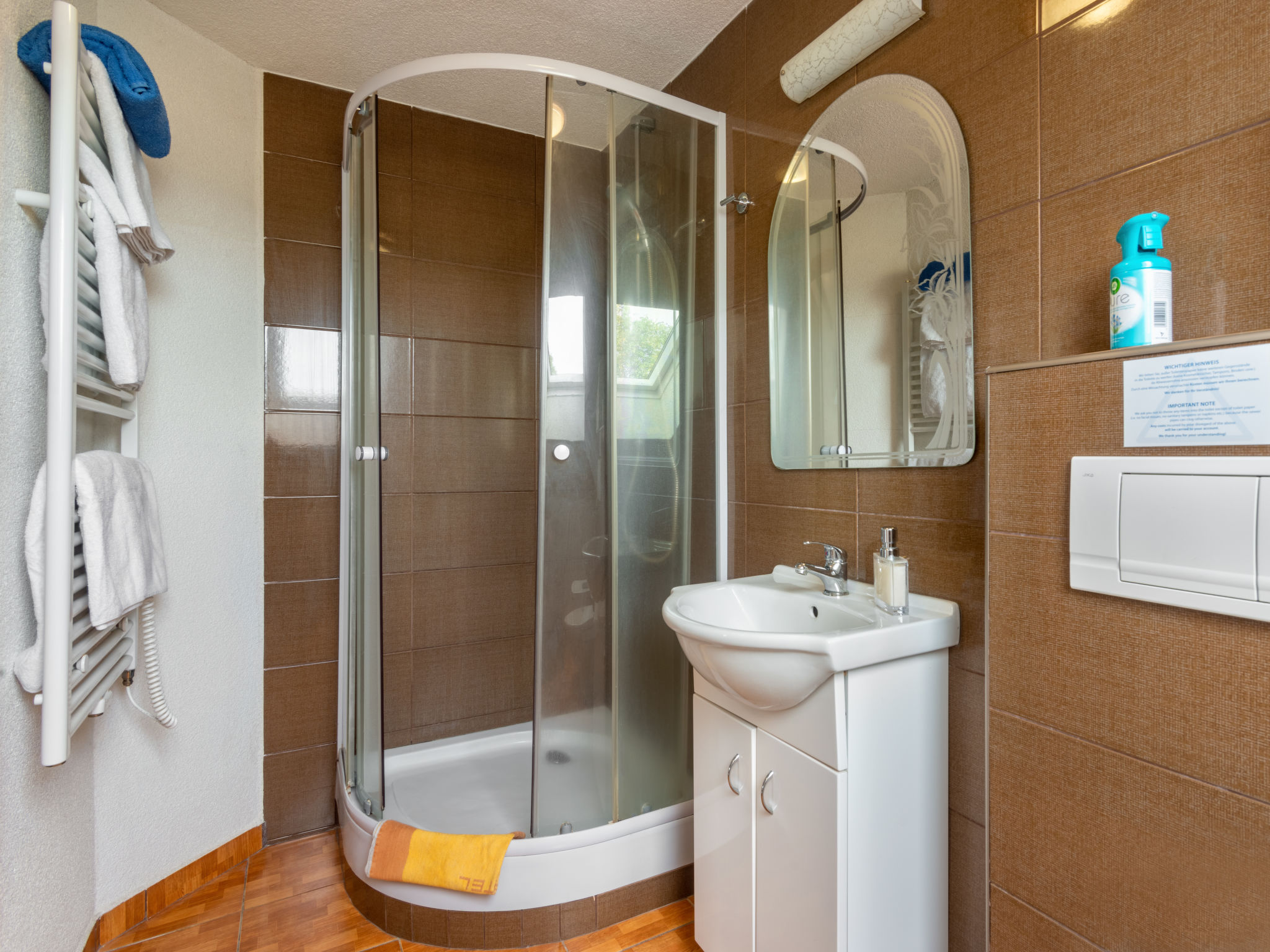 6-Zimmer-Haus 140 m2 auf 2 Stockwerken. Rustikal und gemütlich eingerichtet: Wohnzimmer mit Sat-TV (Flachbildschirm), Radio und DVD. Billardzimmer mit offenem Kamin und Esstisch. 1 Zimmer mit 1 Doppelbett. 1 Zimmer mit 1 Doppelbett. Küche (Backofen, Geschirrspüler, 4 Glaskeramikherd Platten, Toaster, Wasserkocher, Mikrowelle, elektrische Kaffeemaschine) mit Essecke. Dusche, Dusche/Bidet/WC, Doppelwaschbecken, Sauna. E-Heizung. Obergeschoss: 1 abgeschrägtes Zimmer mit 1 Doppelbett. 1 abgeschrägtes Zimmer mit 1 Doppelbett. Dusche/WC. E-Heizung. Gartensitzplatz. Terrassenmöbel, Gartengrill. Panoramasicht. Zur Verfügung: Waschmaschine, Sauna, Kinderhochstuhl, Babybett. Internet (Wireless LAN, gratis). Bitte beachten: Nichtraucher-Unterkunft. Maximal 3 Haustiere/Hunde erlaubt.