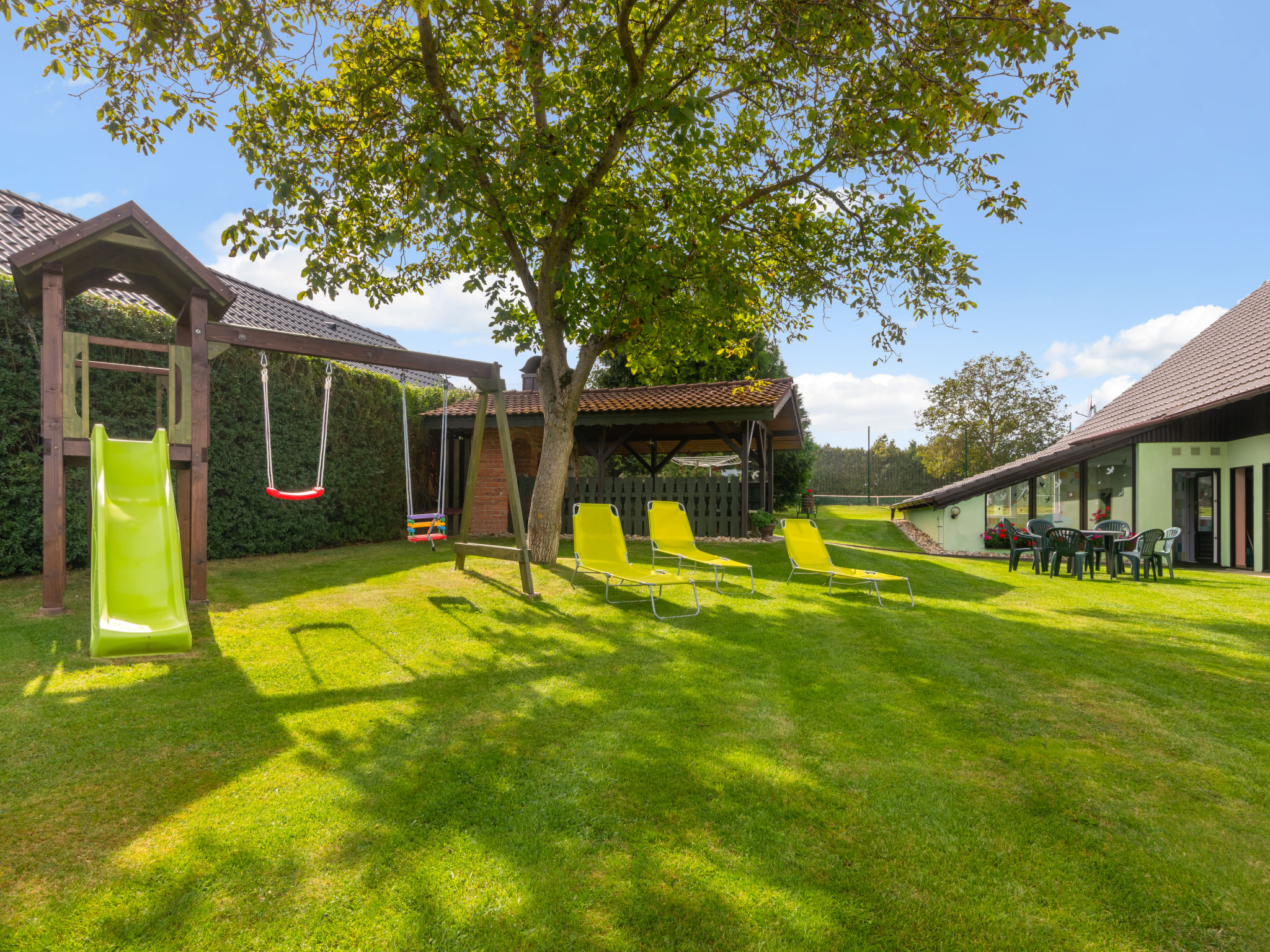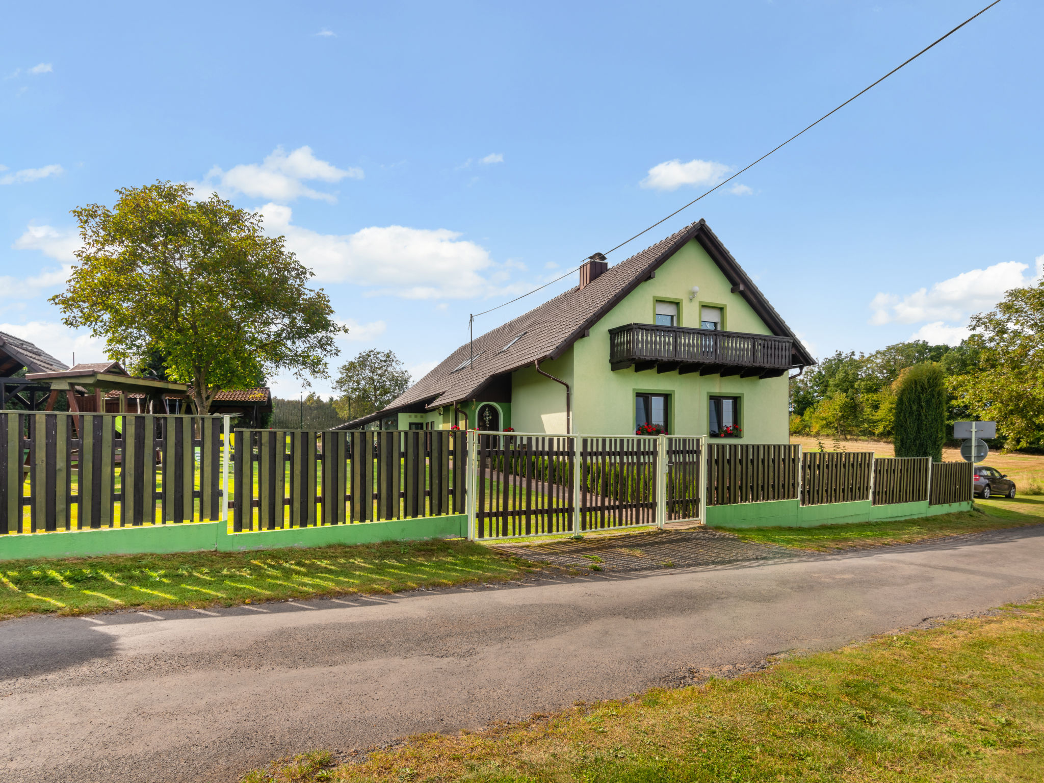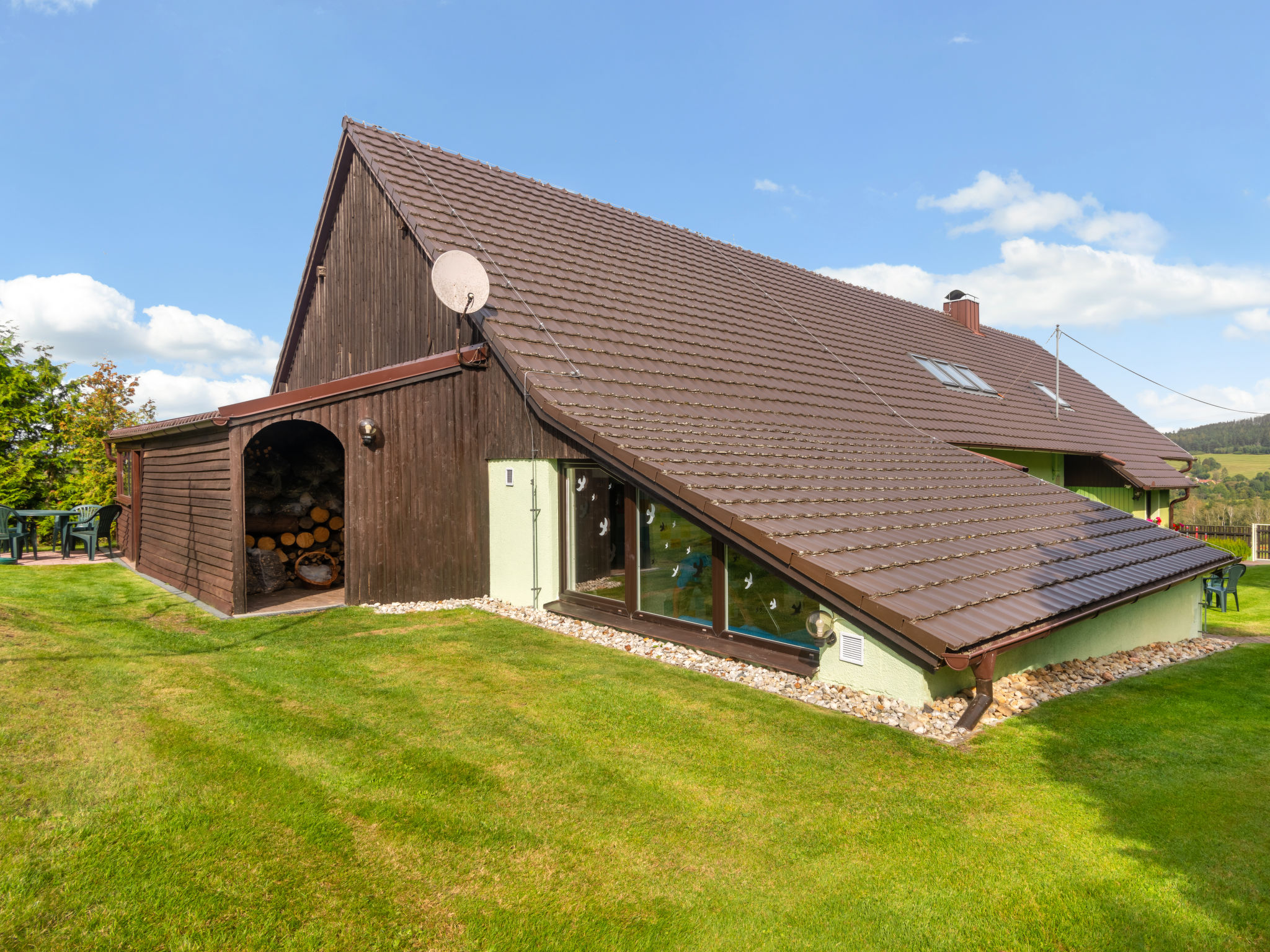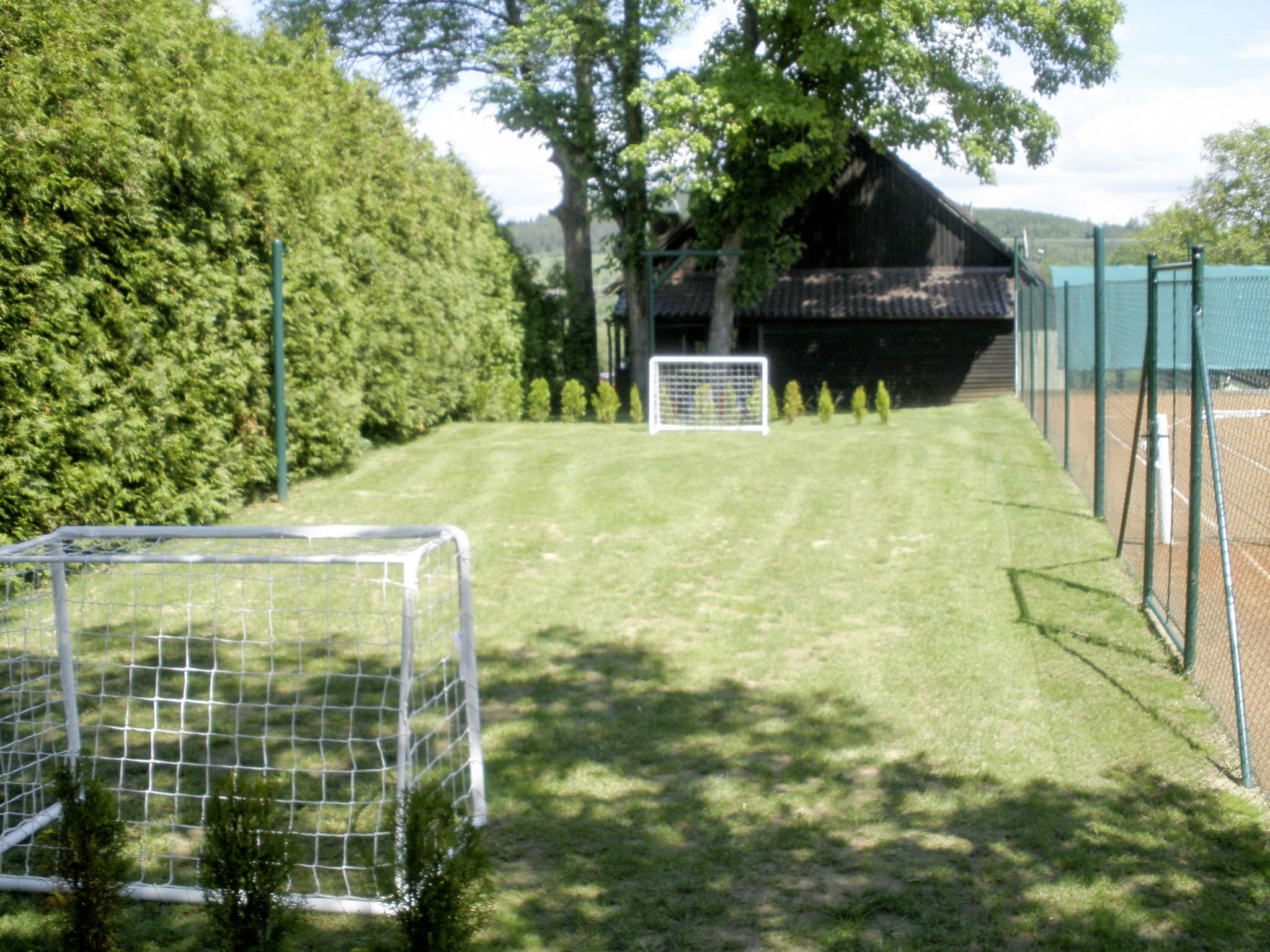 Sehr schöner Landsitz "Haus Polivka (HUR100)", 400 m.ü.M., umgeben von Wiesen und Feldern. Im Ort Hůrka u Němčic, 12 km vom Zentrum von Klatovy, 50 km vom Zentrum von Bayerisch Eisenstein, ruhige, sonnige Lage, 15 km vom Skigebiet. Zur Alleinbenutzung: Grundstück 3'200 m2 (eingezäunt), Rasen und Bäumen, Wiese, Schwimmbad, Hallenbad beheizt (6 x 3 m, 150 cm tief, 01.01.-31.12.). Tennis, Tischtennis, Basketball, Volleyball, Badminton, Volleyballfeld, Terrasse, Gartenmöbel, Grill, Kinderspielplatz (Schaukel). Im Hause: Billard, Spielzimmer. Parkplatz (für 6 Autos) beim Haus. Einkaufsgeschäft 3 km, Supermarkt 12 km, Restaurant 12 km, Bushaltestelle "Němčice" 1 km, Bahnstation "Klatovy" 12 km, Freibad 12 km, Hallenbad 12 km. Skilift 15 km, Sessellift 40 km, Skipisten 40 km, Skiverleih 40 km, Skischule 40 km, Kinderskischule 40 km.
