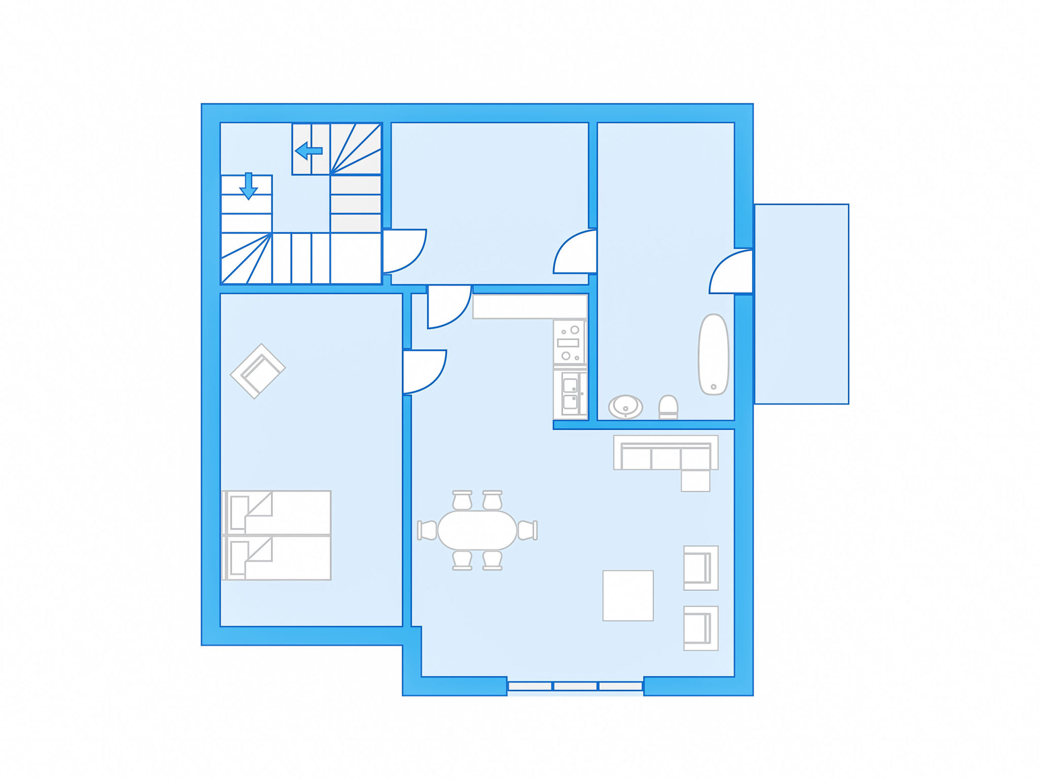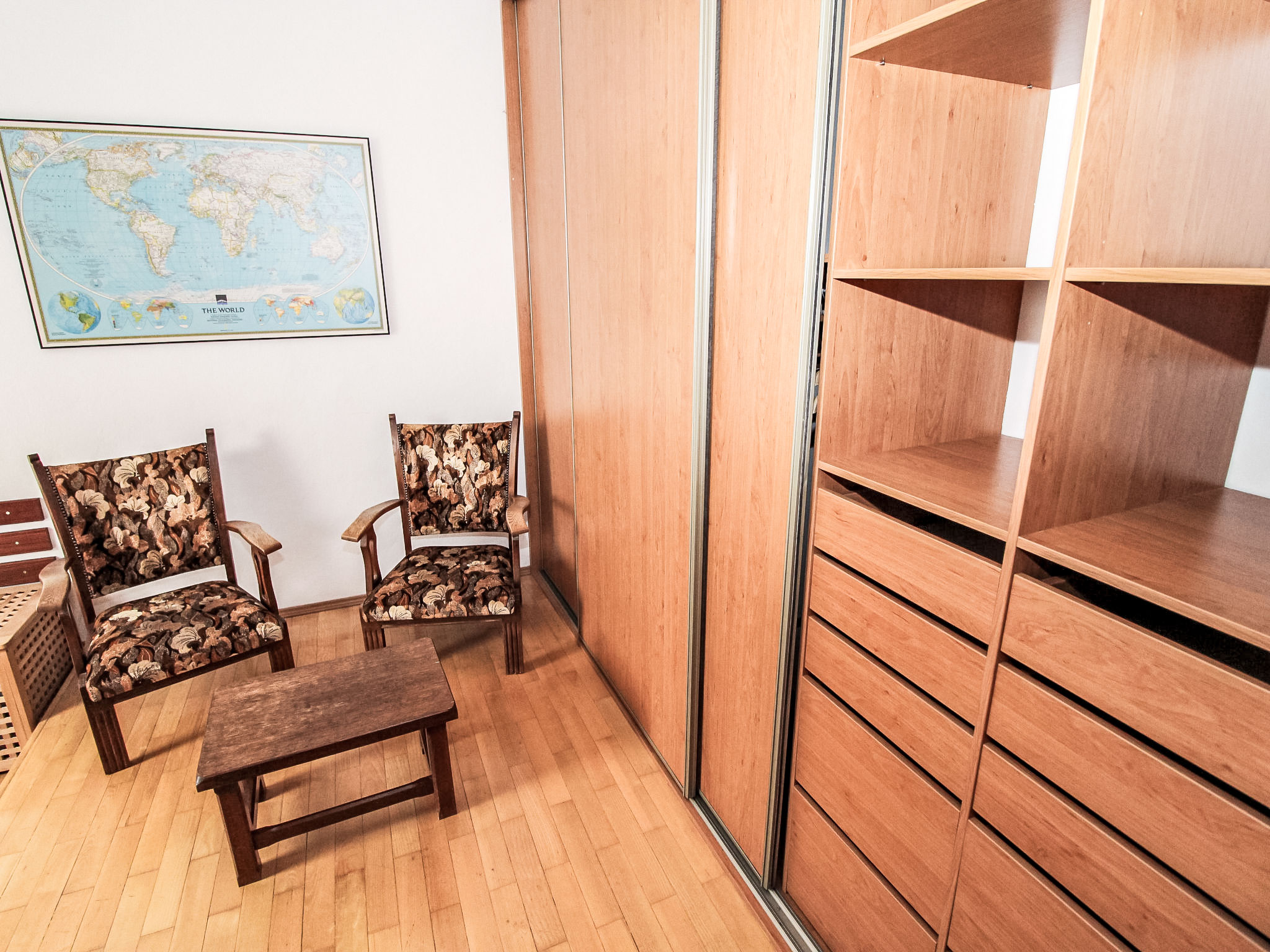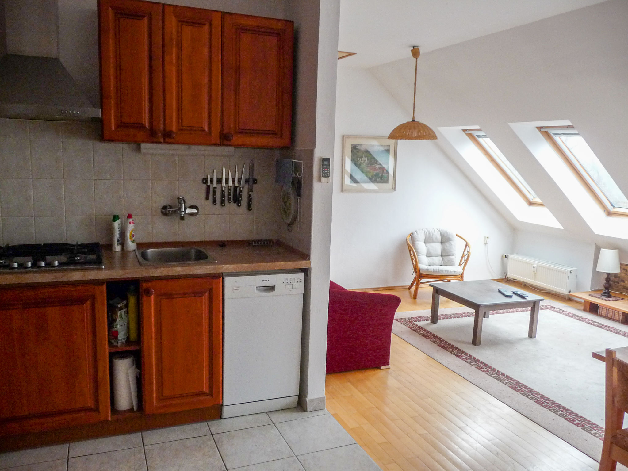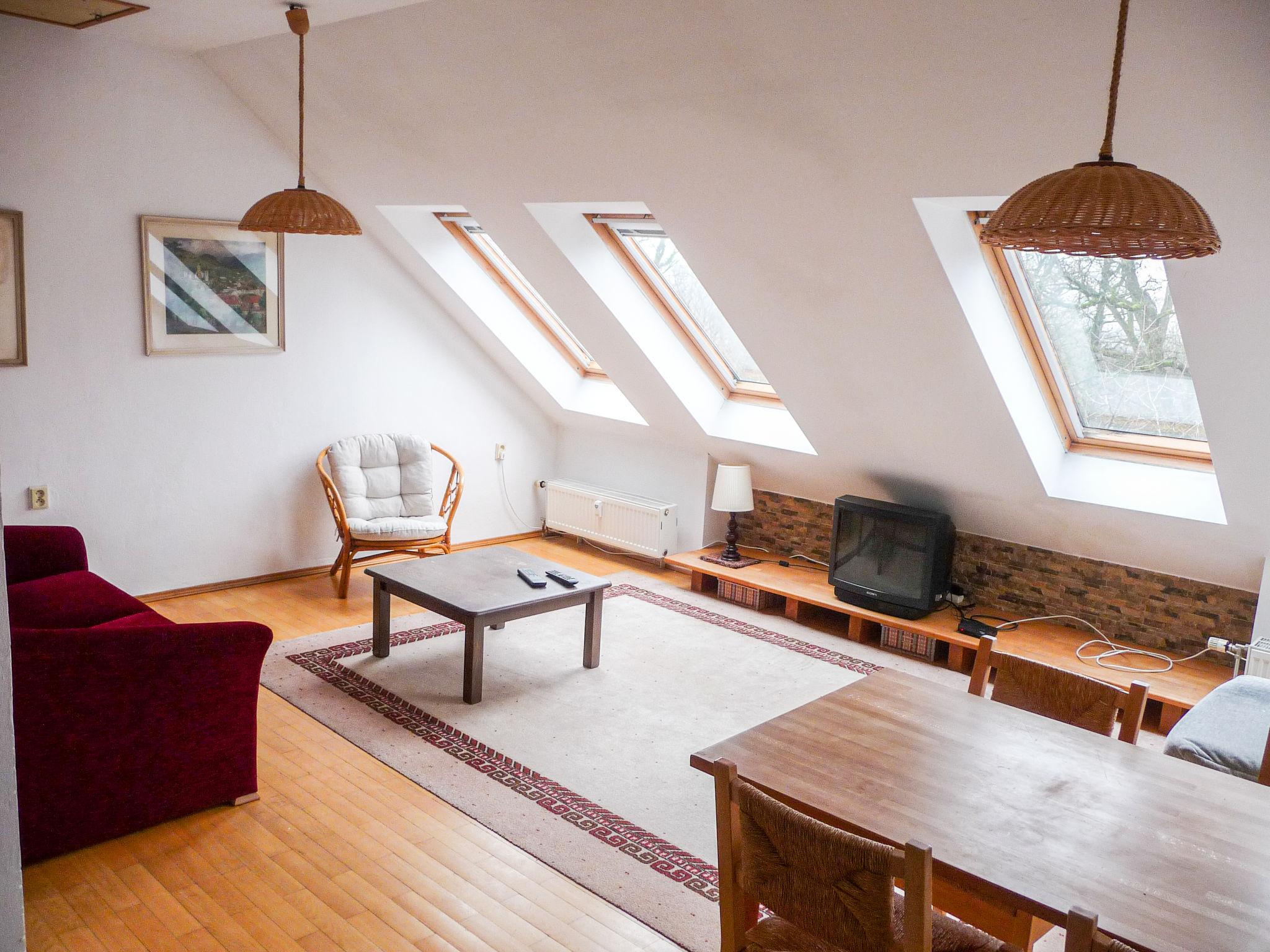 2-Zimmer-Attikawohnung 60 m2 im 2. Stock. Schön und gemütlich eingerichtet: abgeschrägtes, offenes Wohn-/Esszimmer 23 m2 mit 1 Doppeldiwanbett (160 cm, Länge 200 cm), Esstisch, Sat-TV, Video und Radio. 1 abgeschrägtes Zimmer 16 m2 mit Dachfenster mit 2 Betten (80 cm, Länge 200 cm), Klimaanlage. Offene Küche (Geschirrspüler, 4 Flammen, Wasserkocher, Mikrowelle, Tiefkühler, elektrische Kaffeemaschine). Bad/WC. E-Heizung. Balkon 4 m2, Südostlage. Terrassenmöbel. Sicht auf den Garten. Zur Verfügung: Waschmaschine, Bügeleisen. Internet (Wireless LAN, gratis).