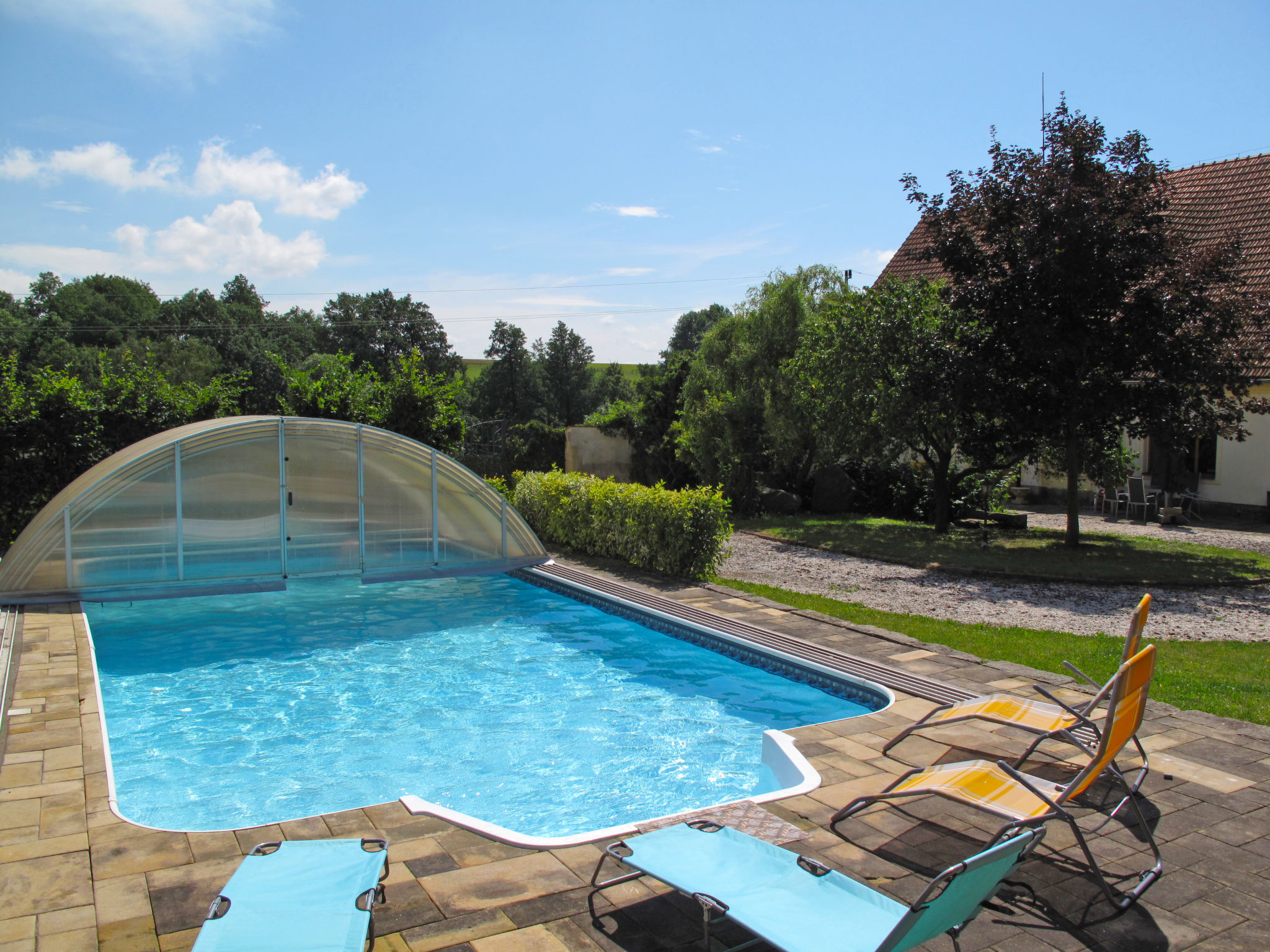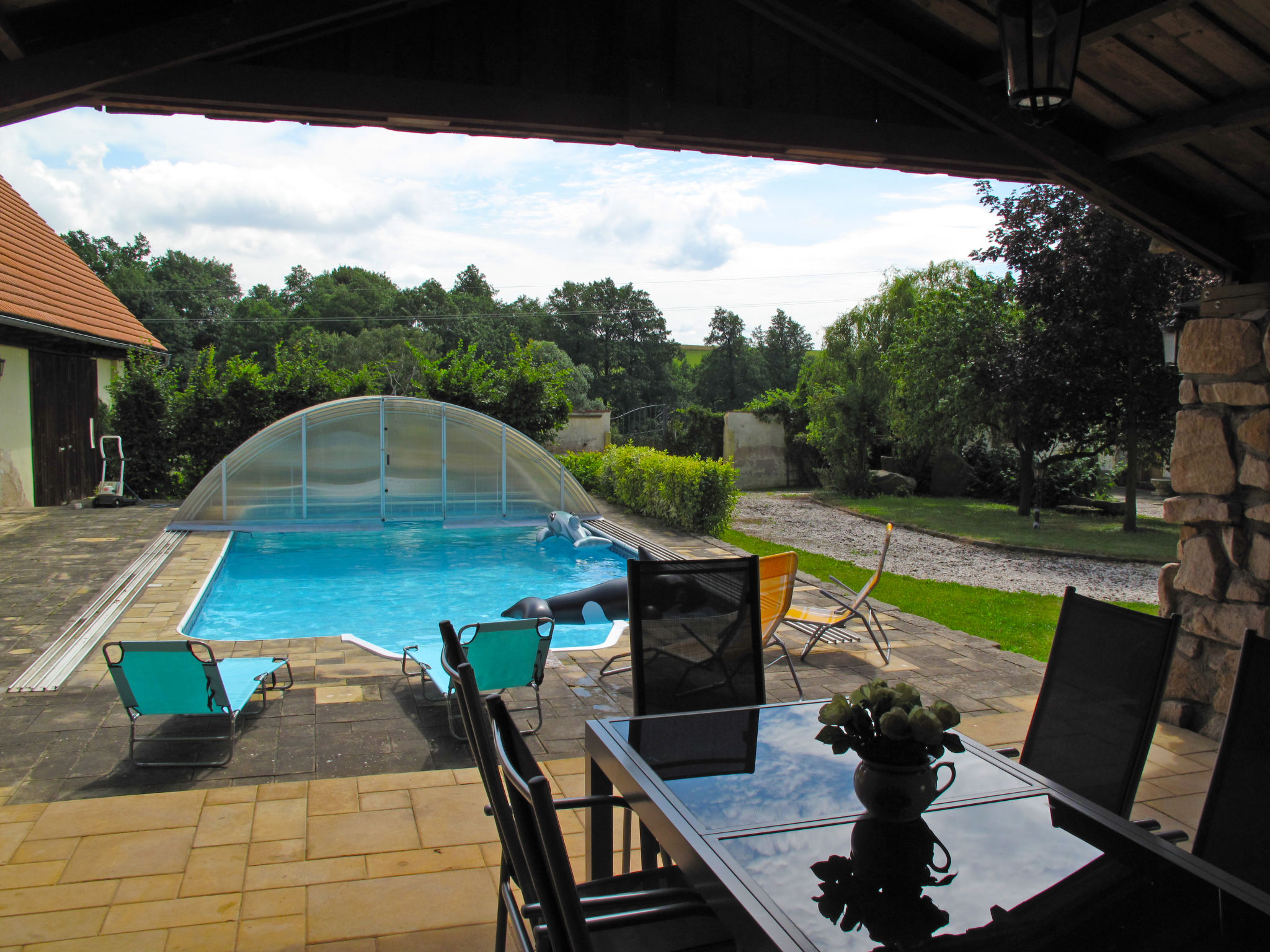 Martínkovice 5 km von Broumov: Grosse, alleinstehende, komfortable Finca "Statek Martínkovice", auf 2 Stockwerken. Zur Alleinbenutzung: Grundstück 1'000 m2 (eingezäunt), Hof, Schwimmbad (10 x 5 m, 150 cm tief, 01.06.-30.09.). Laube, Gartenmöbel. Im Hause: Zentralheizung. Einkaufsgeschäft, Restaurant 200 m. Nahe gelegene Sehenswürdigkeiten: CHKO Broumovsko, Broumovské stěny 5 km, Kaple Panny Marie Sněžné (Hvězda) 15 km, Police nad Metují 18 km, Adšpašsko-Teplické skály 25 km, Góry Stolowe, Kladsko (PL) 30 km. Bekannte Skigebiete sind gut erreichbar: Janovičky 12 km.