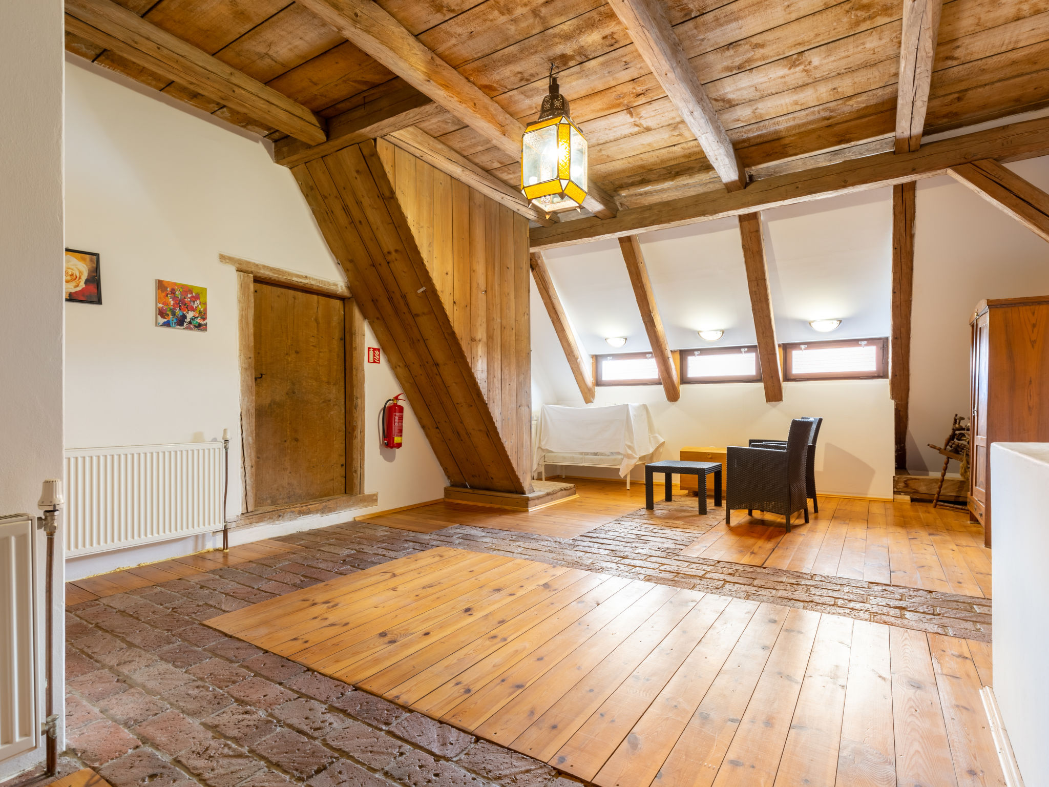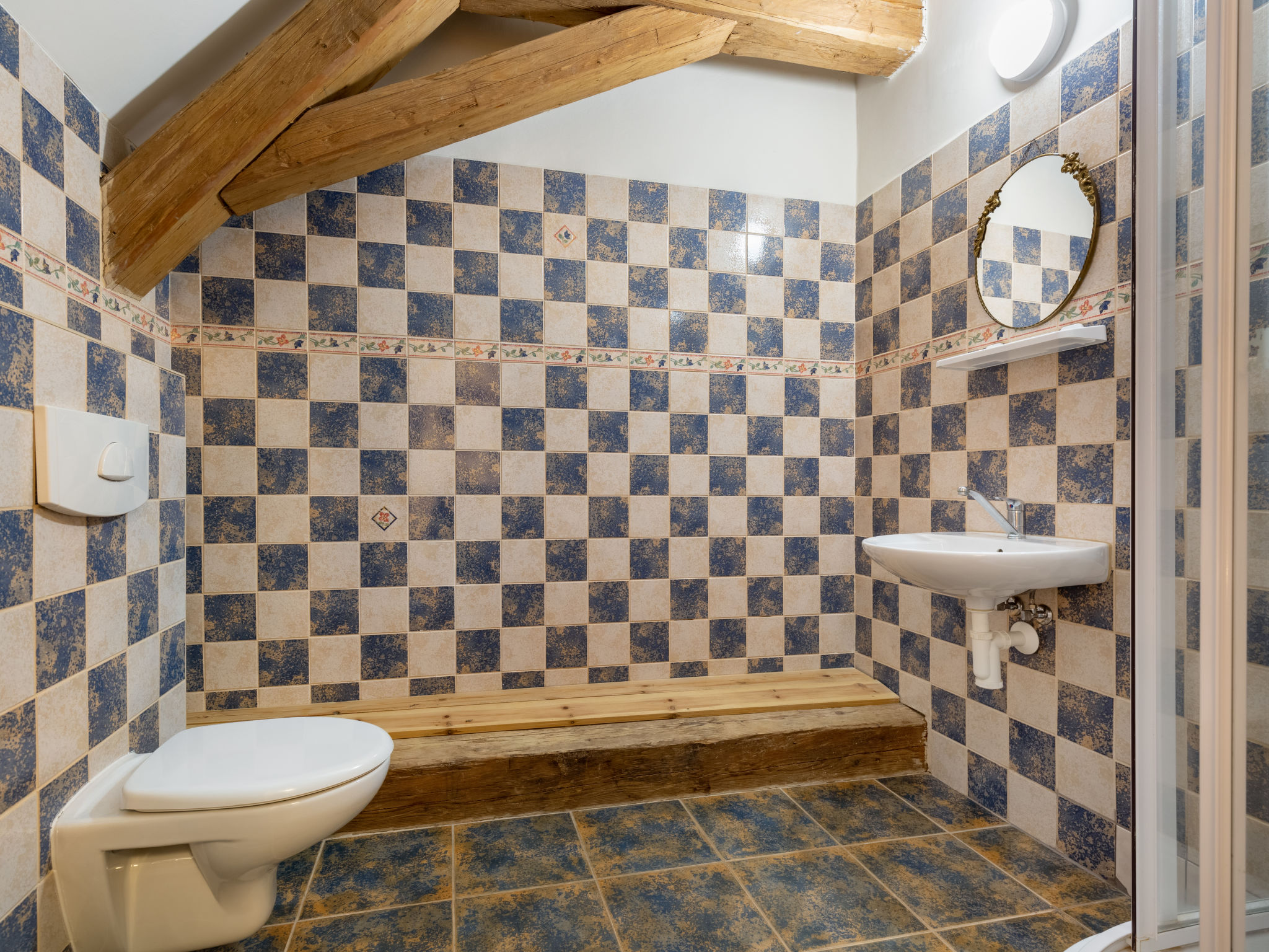 7-Zimmer-Bauernhaus 300 m2 auf 2 Stockwerken. Rustikal und gemütlich eingerichtet: Wohnzimmer mit 3 Diwanbetten, Schwedenofen und TV (Flachbildschirm). Kleines Wohnzimmer mit 1 Diwanbett. Esszimmer mit Esstisch. Küche (Backofen, Geschirrspüler, 4 Glaskeramikherd Platten, Wasserkocher, Mikrowelle, elektrische Kaffeemaschine). Sep. WC. Obergeschoss: 1 Zimmer mit 2 Betten, 1 Doppelbett und Dusche/WC. 1 Zimmer mit 2 Betten und 1 Doppelbett. 1 Zimmer mit 1 Bett, 1 Doppelbett und Dusche/WC. 1 Zimmer mit 1 Doppelbett und Dusche/WC. Dusche/WC. Laube. Terrassenmöbel. Zur Verfügung: Internet (Wireless LAN, gratis). In dem kleinen Wohnzimmer gibt es Sofa, Schreibtisch, Sessel und Brettspiele. Auf Anfrage: 5. Schlafzimmer für max. 4 Personen (gegen Aufpreis) verfügbar.