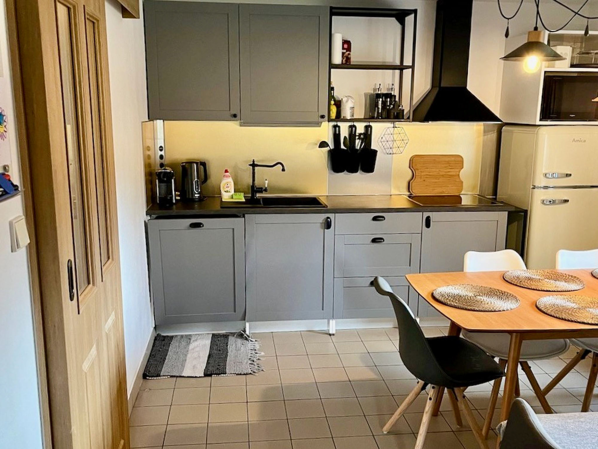 4-Zimmer-Haus 100 m2 auf 2 Stockwerken. Hell, komfortabel und gemütlich eingerichtet: offenes Wohnzimmer mit Sat-TV. Ausgang zur Terrasse. Küche (4 Kochplatten, Geschirrspüler, Toaster, Wasserkocher, Mikrowelle, Tiefkühler, Grill, elektrische Kaffeemaschine) mit Esstisch. Sep. WC. Obergeschoss: 3 Zimmer, jedes Zimmer mit 1 Doppelbett. Bad/WC. Kleine Terrasse. Terrassenmöbel. Zur Verfügung: Waschmaschine, Wäschetrockner, Kinderhochstuhl, Babybett. Internet (Wireless LAN, gratis). Bitte beachten: geeignet für Familien. Nichtraucher-Haus. 2 Haustiere/Hunde erlaubt.
