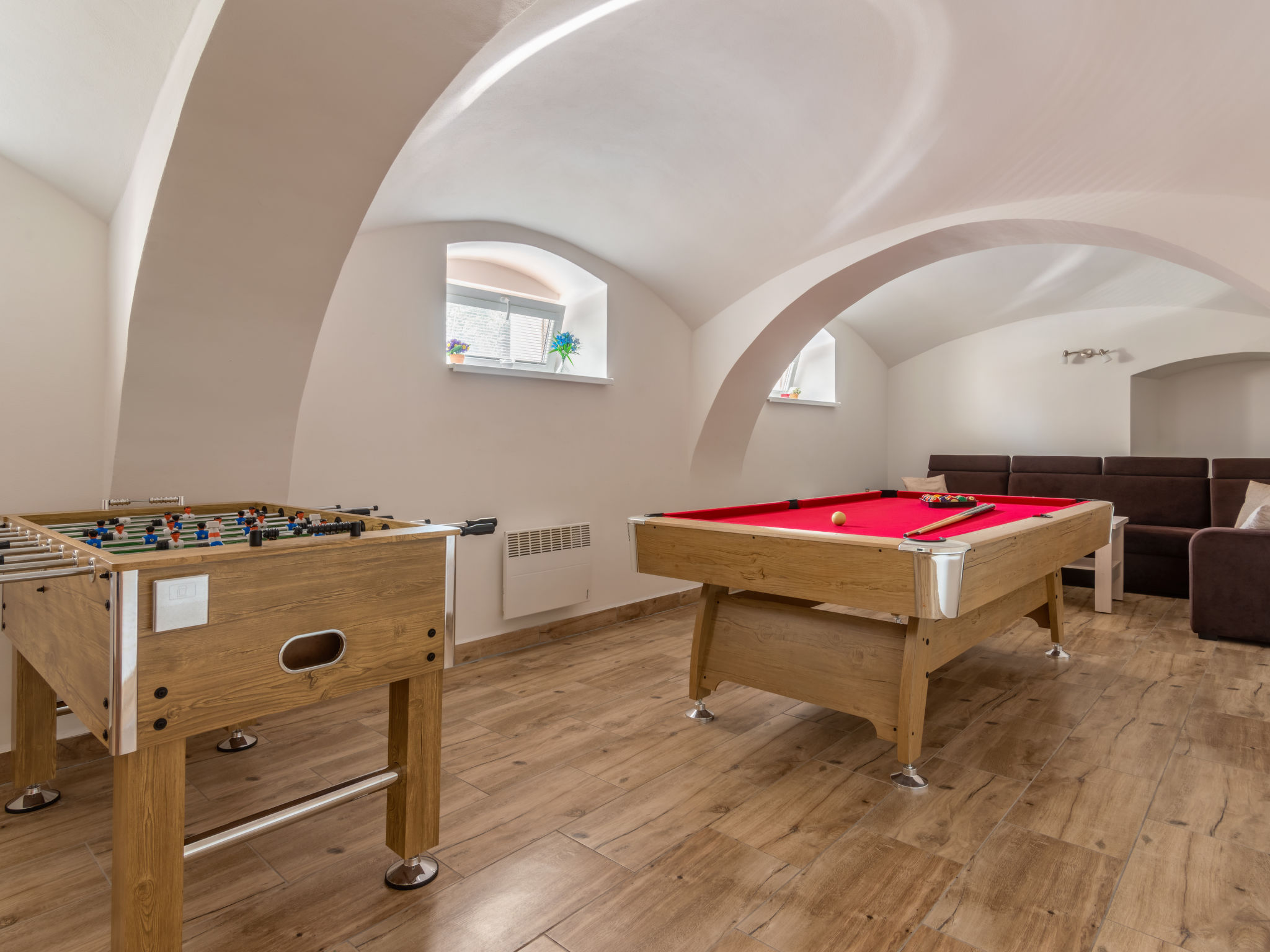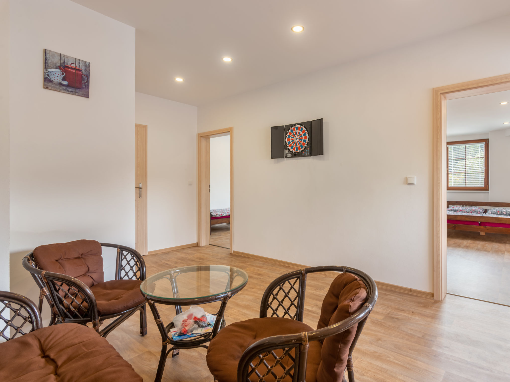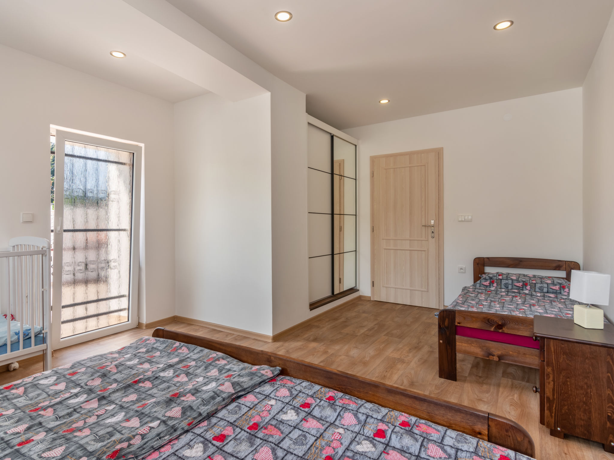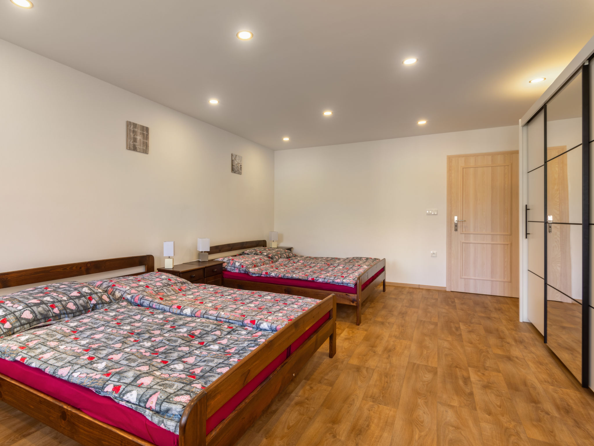 7-Zimmer-Haus 250 m2 auf 2 Stockwerken. Renoviert im Jahre 2019: Wohnzimmer mit Sat-TV. Billardzimmer mit Bar und Sat-TV. 1 Zimmer mit 1 Doppelbett und Sat-TV. Esszimmer mit Esstisch, Essecke und Sat-TV. Küche (Backofen, Geschirrspüler, 4 Glaskeramikherd Platten, Toaster, Wasserkocher, Tiefkühler, elektrische Kaffeemaschine). Dusche/WC, sep. WC, Whirlbadewanne, Sauna. E-Heizung. Obergeschoss: 1 Zimmer mit 3 Betten und 1 Doppelbett. 1 Zimmer mit 1 Betten und 1 Doppelbetten. 1 Zimmer mit 2 Betten und 1 Doppelbetten. 1 Zimmer mit 2 Betten und 2 Doppelbetten. 2 Duschen/WC, 3 sep. WC's. E-Heizung. Zur Verfügung: Waschmaschine, Wäschetrockner, Sauna, Kinderhochstuhl, Babybett. Internet (Wireless LAN, gratis). 2 kleine Haustiere/Hunde erlaubt.