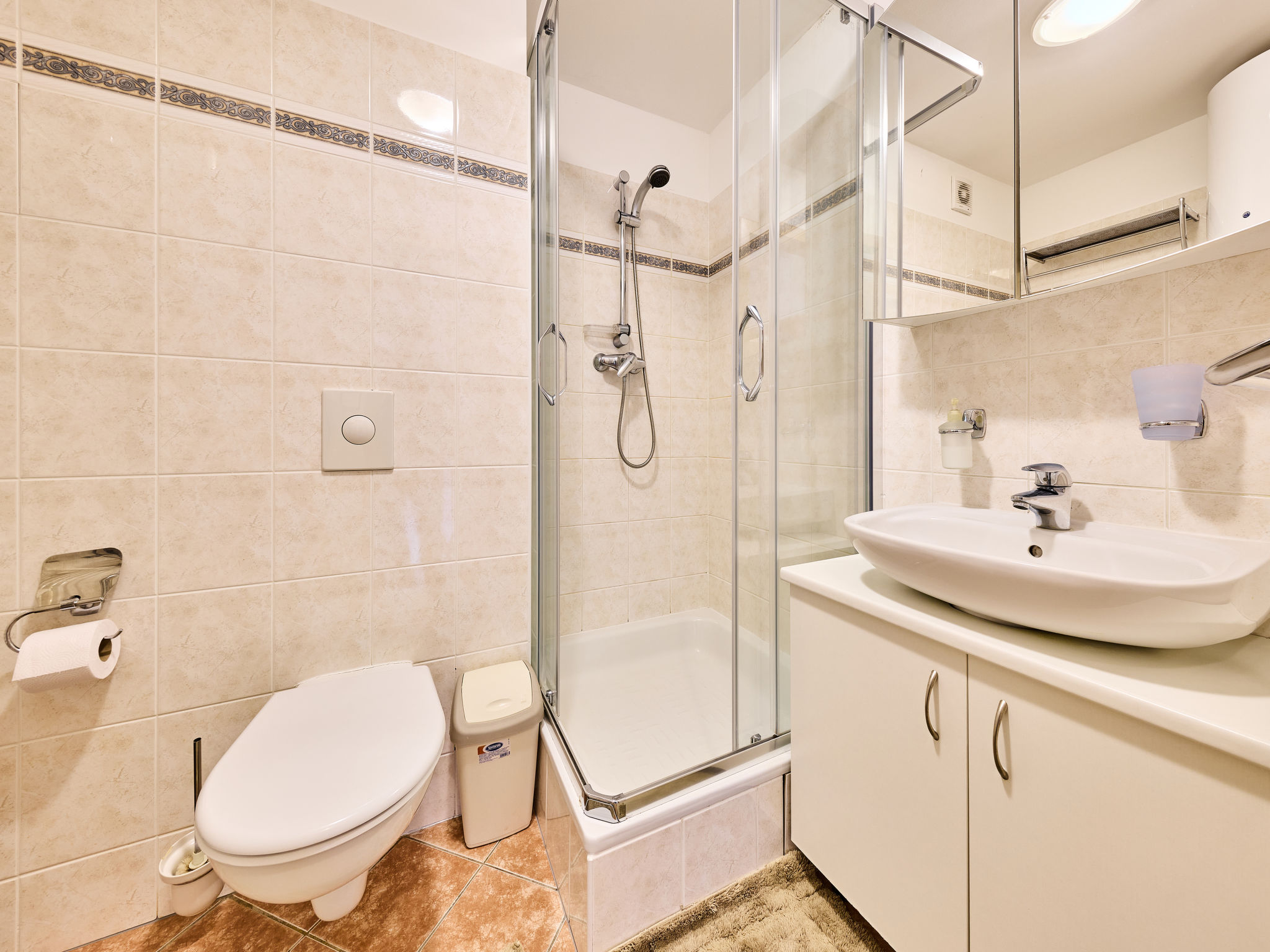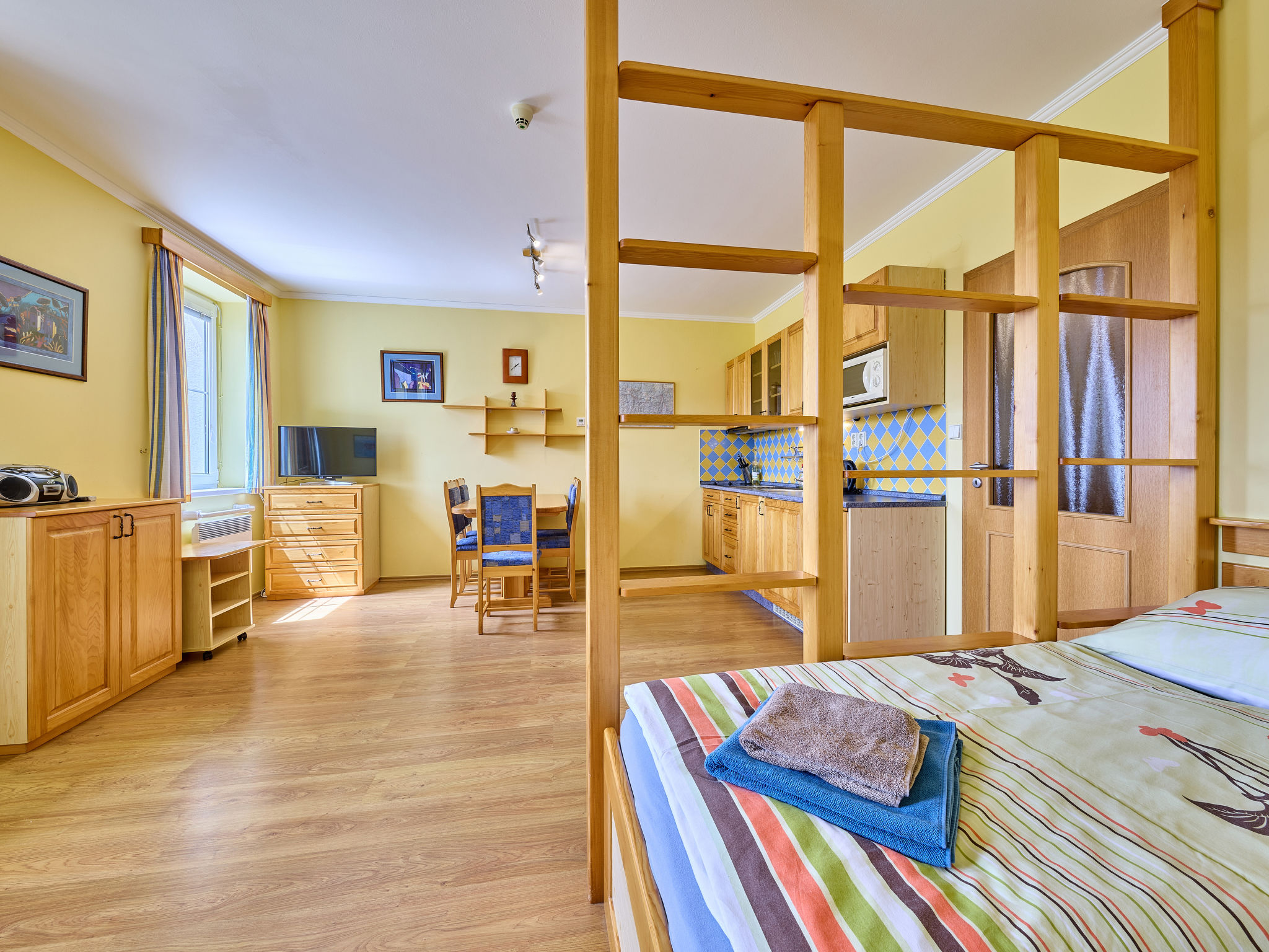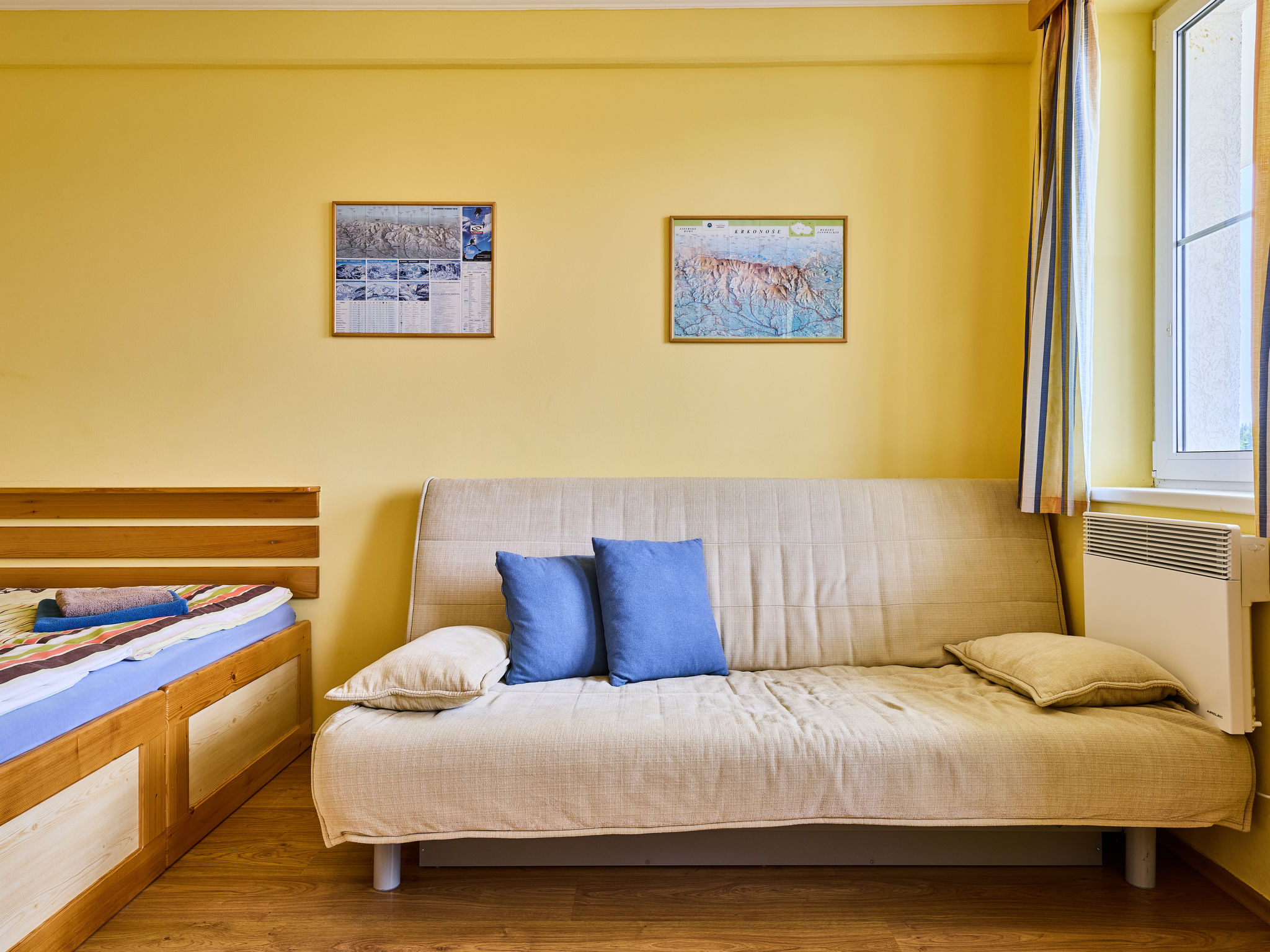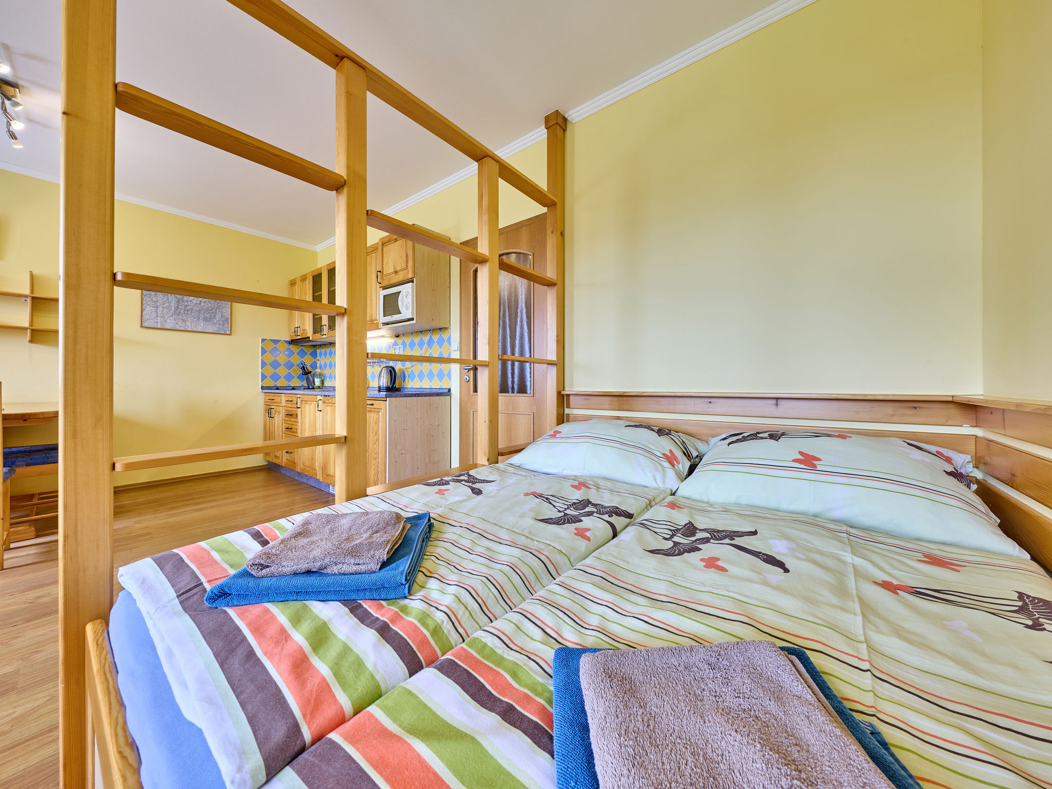"Horní Mísečky (HMS110)", 1-Zimmer-Wohnung 35 m2, im Erdgeschoss. Komfortabel und gemütlich eingerichtet: Wohn-/Schlafzimmer mit 1 Doppeldiwanbett, 1 Doppelbett, Esstisch, Sat-TV und Internationale TV-Sender. Ausgang zum Balkon. Offene Küche (Geschirrspüler, 2 Glaskeramikherd Platten, Toaster, Wasserkocher, Mikrowelle, elektrische Kaffeemaschine, Kapseln für die Kaffeemaschine (Nespresso) extra). Dusche/WC. E-Heizung. Balkon. Zur Verfügung: Internet (Wireless LAN, gratis). Parkplatz (überdacht). Bitte beachten: Nichtraucher-Unterkunft.