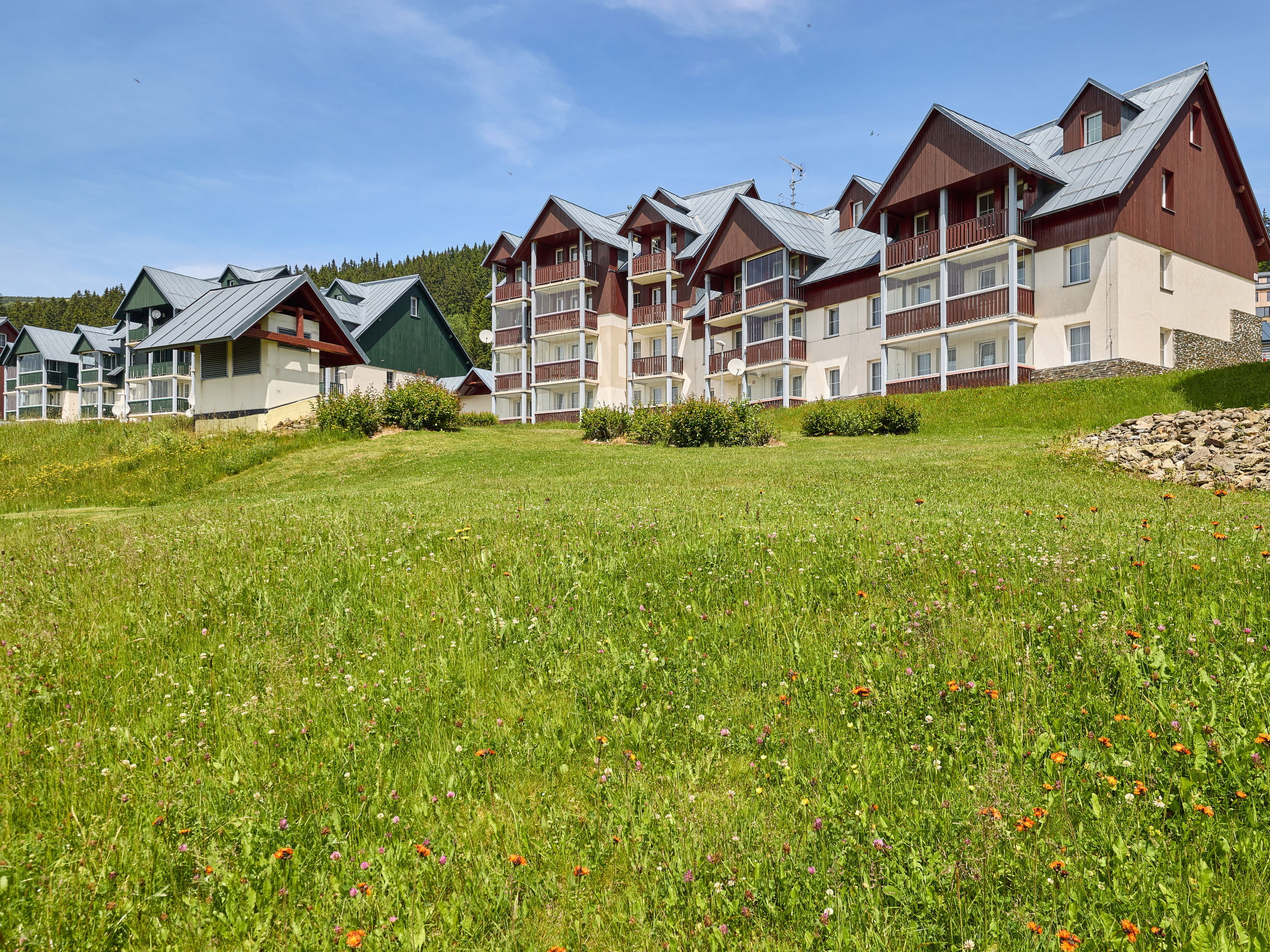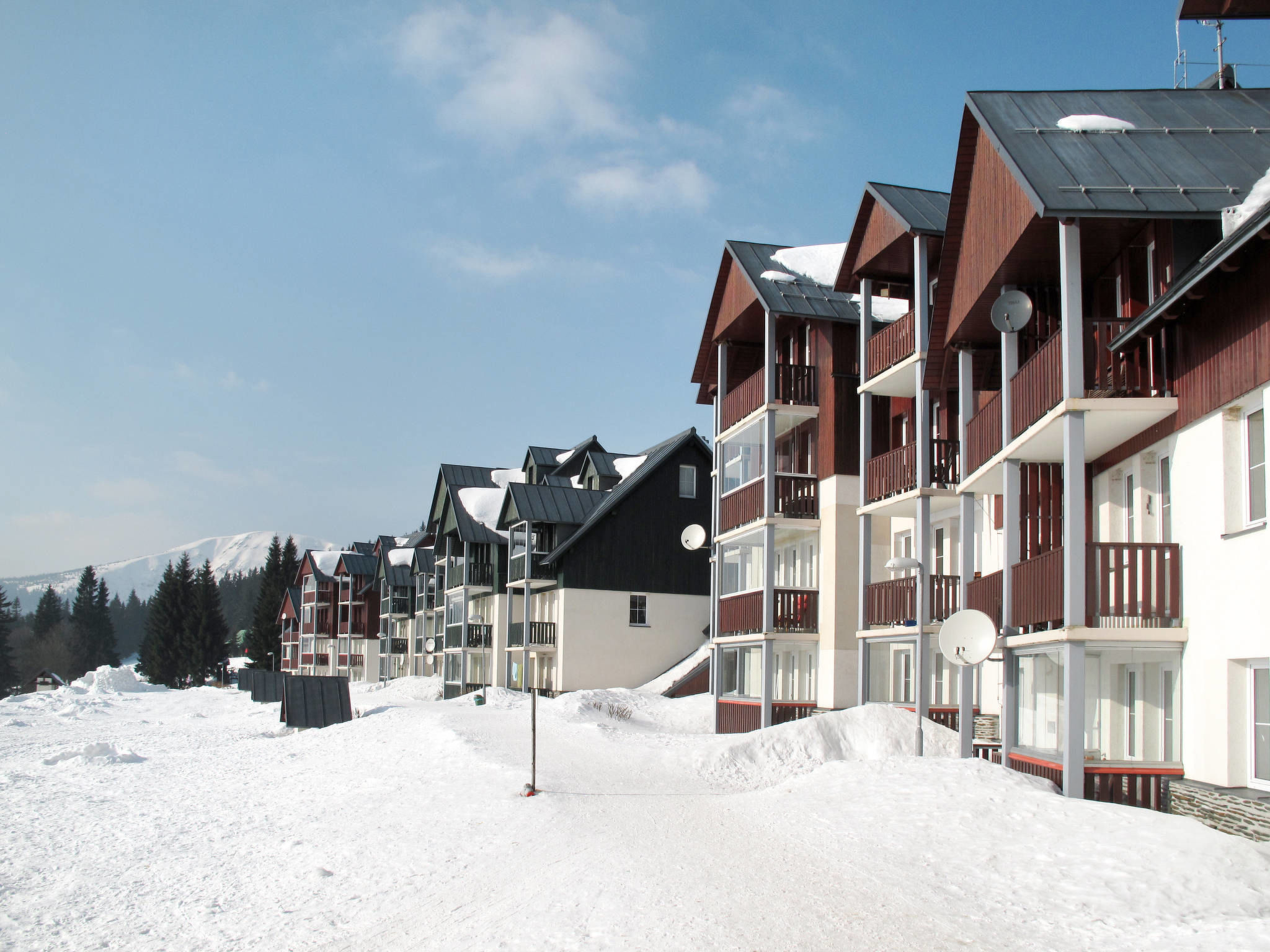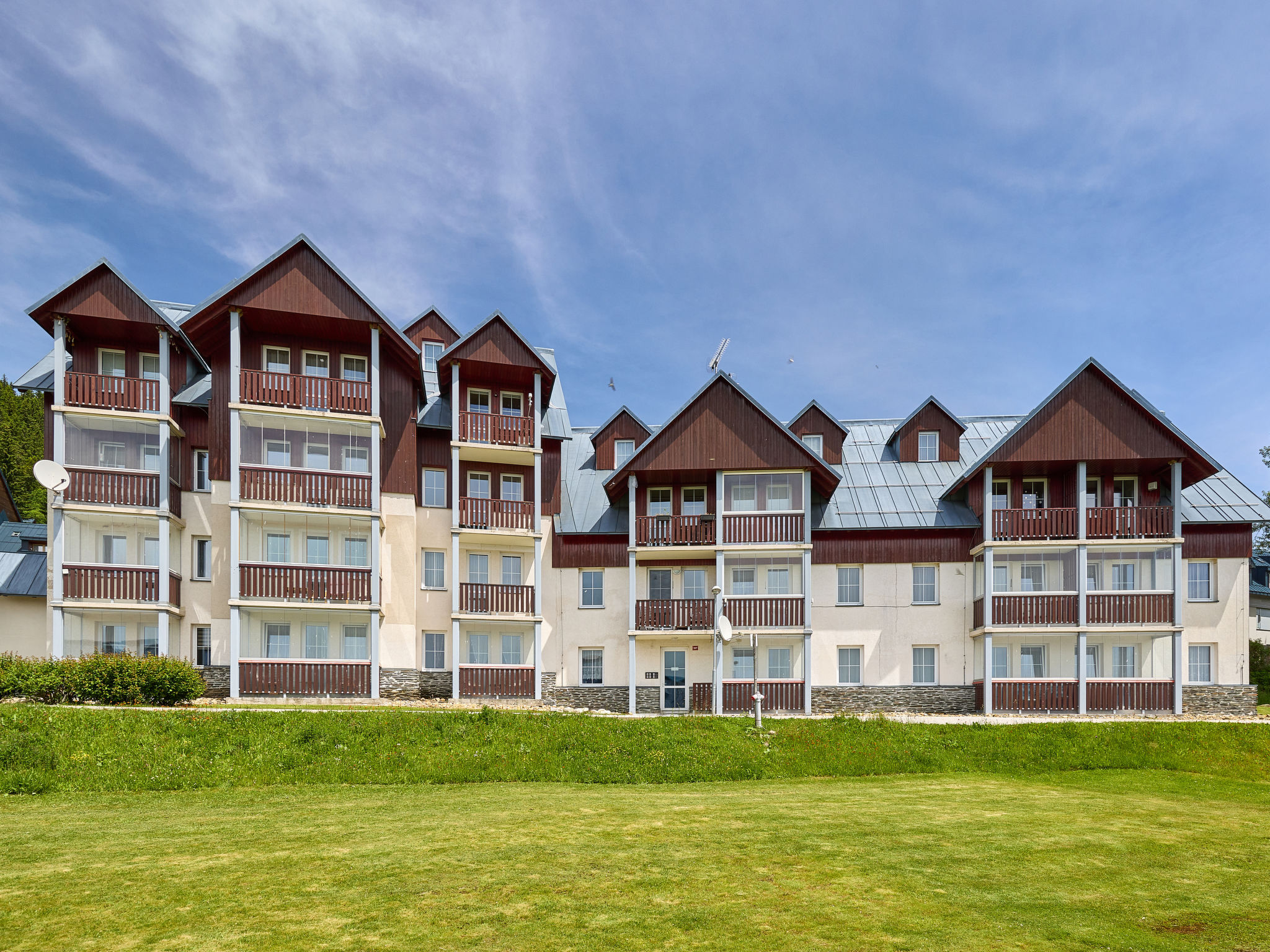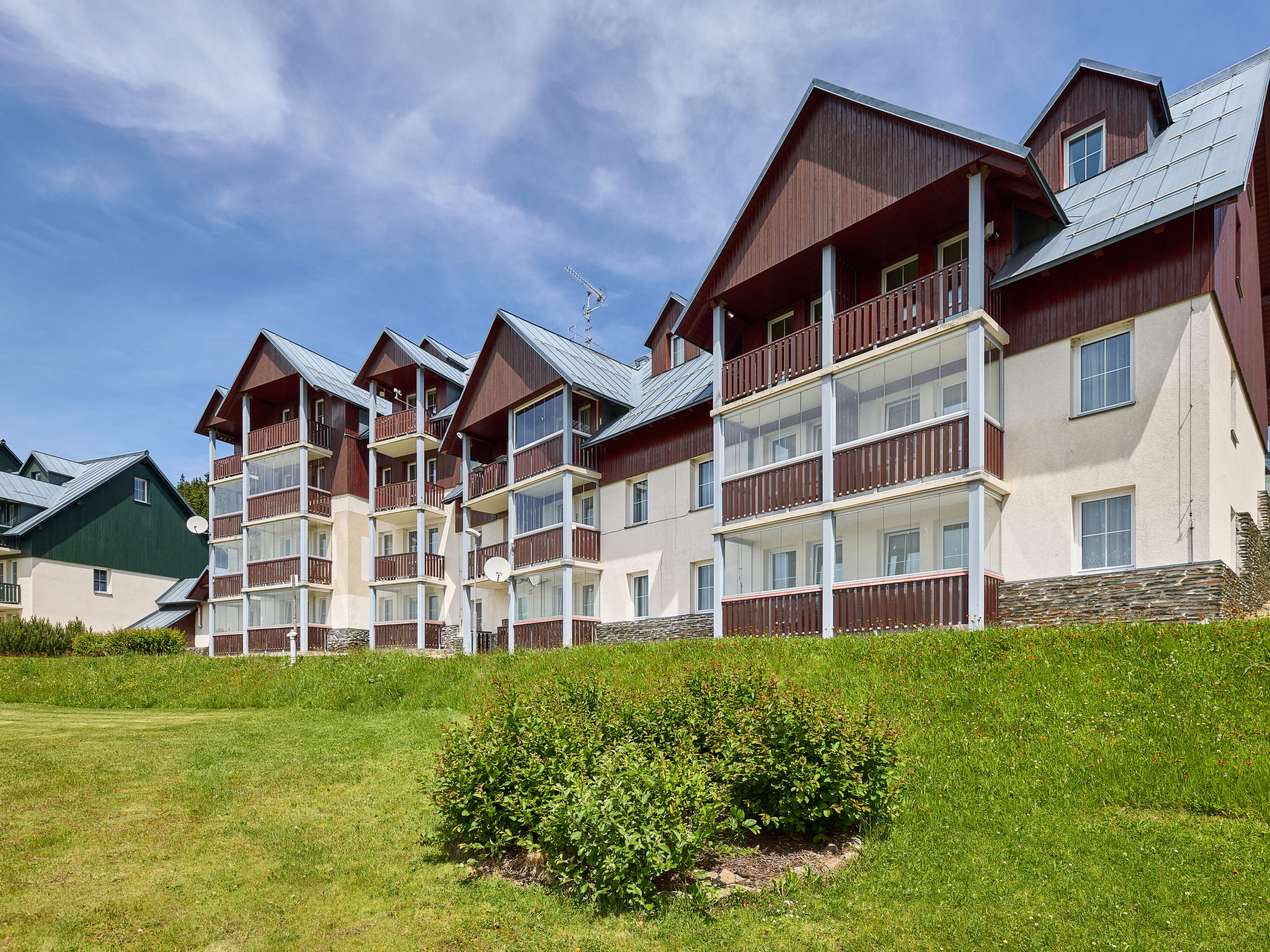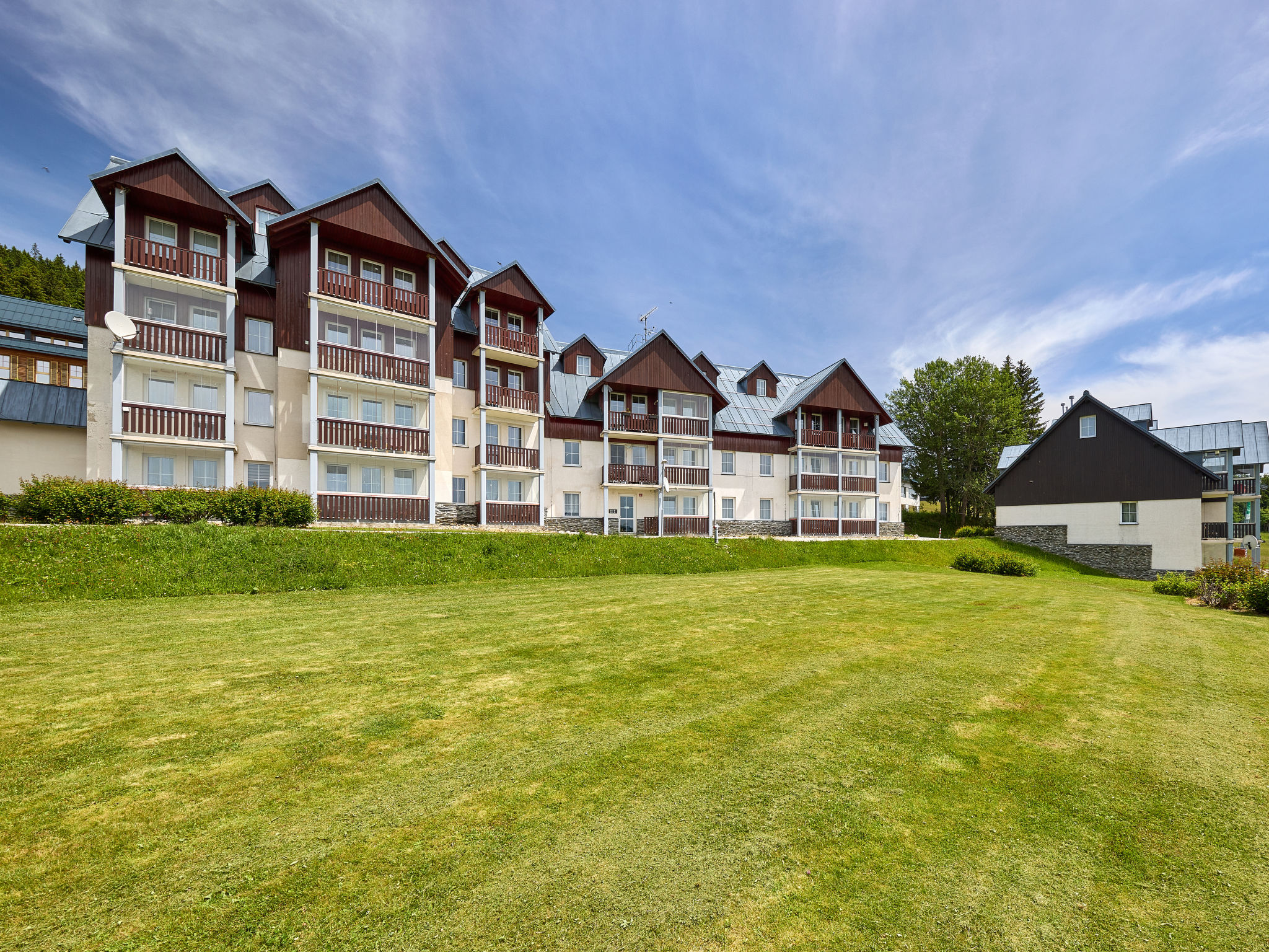 Modernes, schönes Mehrfamilienhaus "Horní Mísečky (HMS130)", 1'000 m.ü.M.. 20 Wohnungen in der Residenz. 10 m vom Zentrum von Horní Mísečky, 9 km vom Zentrum von Vítkovice, 20 km vom Zentrum von Jilemnice, 50 m vom Skigebiet. Zur Mitbenutzung: Grundstück, Parkplatz (überdacht). Einkaufsgeschäft 9 km, Supermarkt 20 km. Skipisten 50 m.