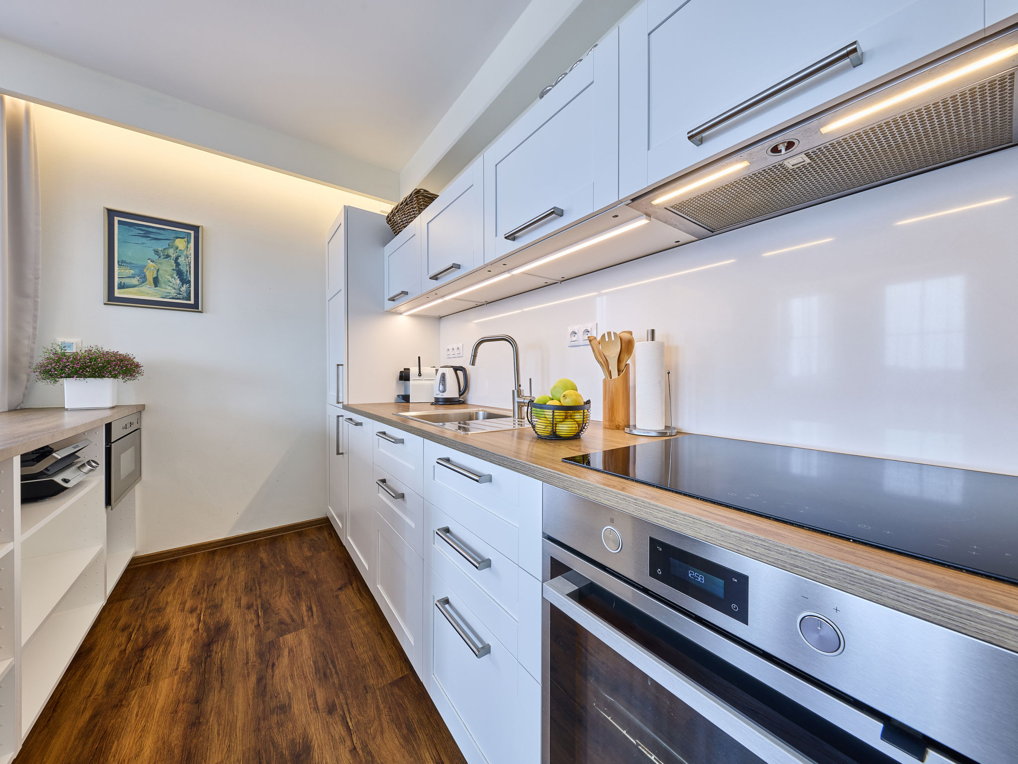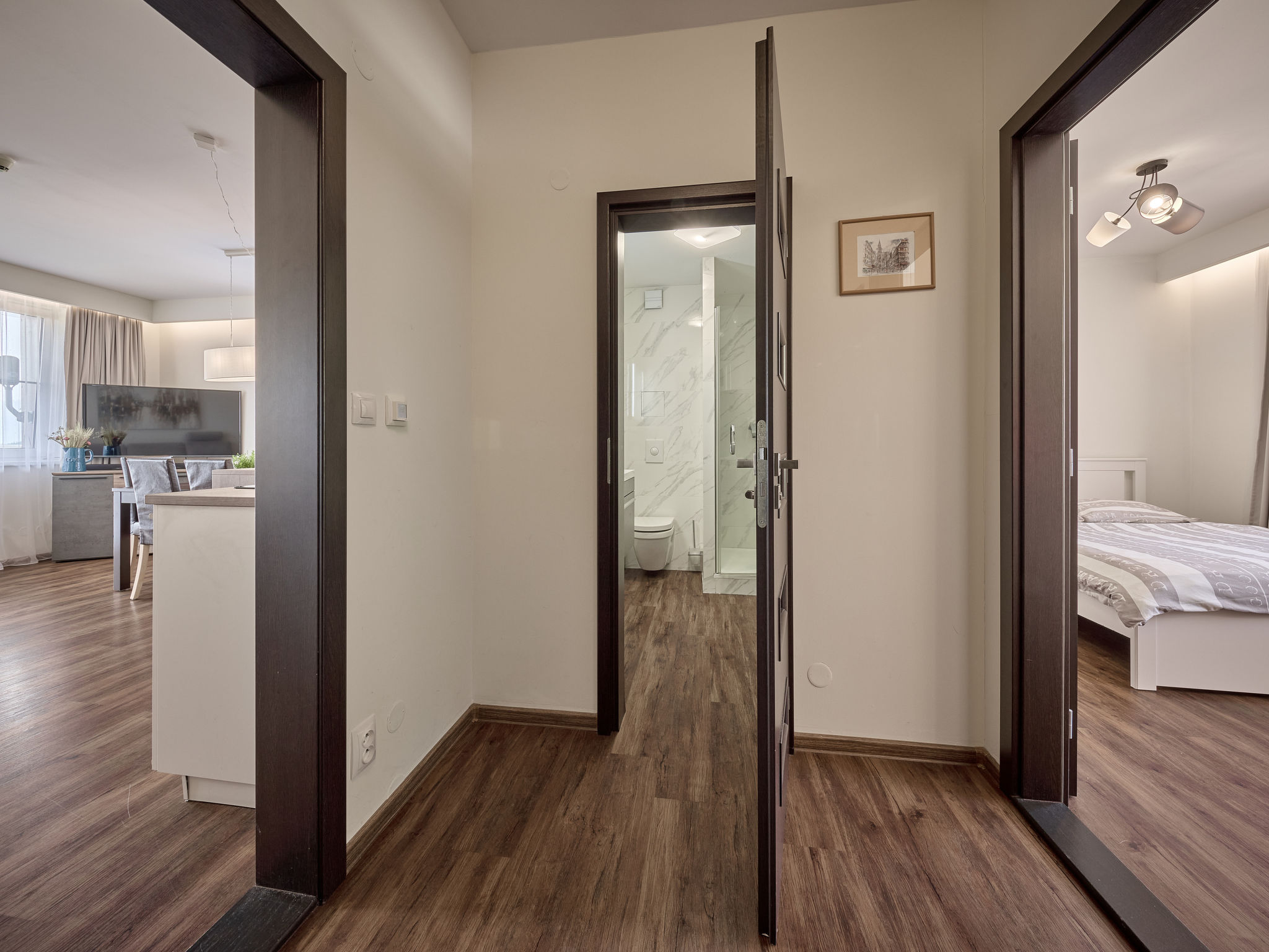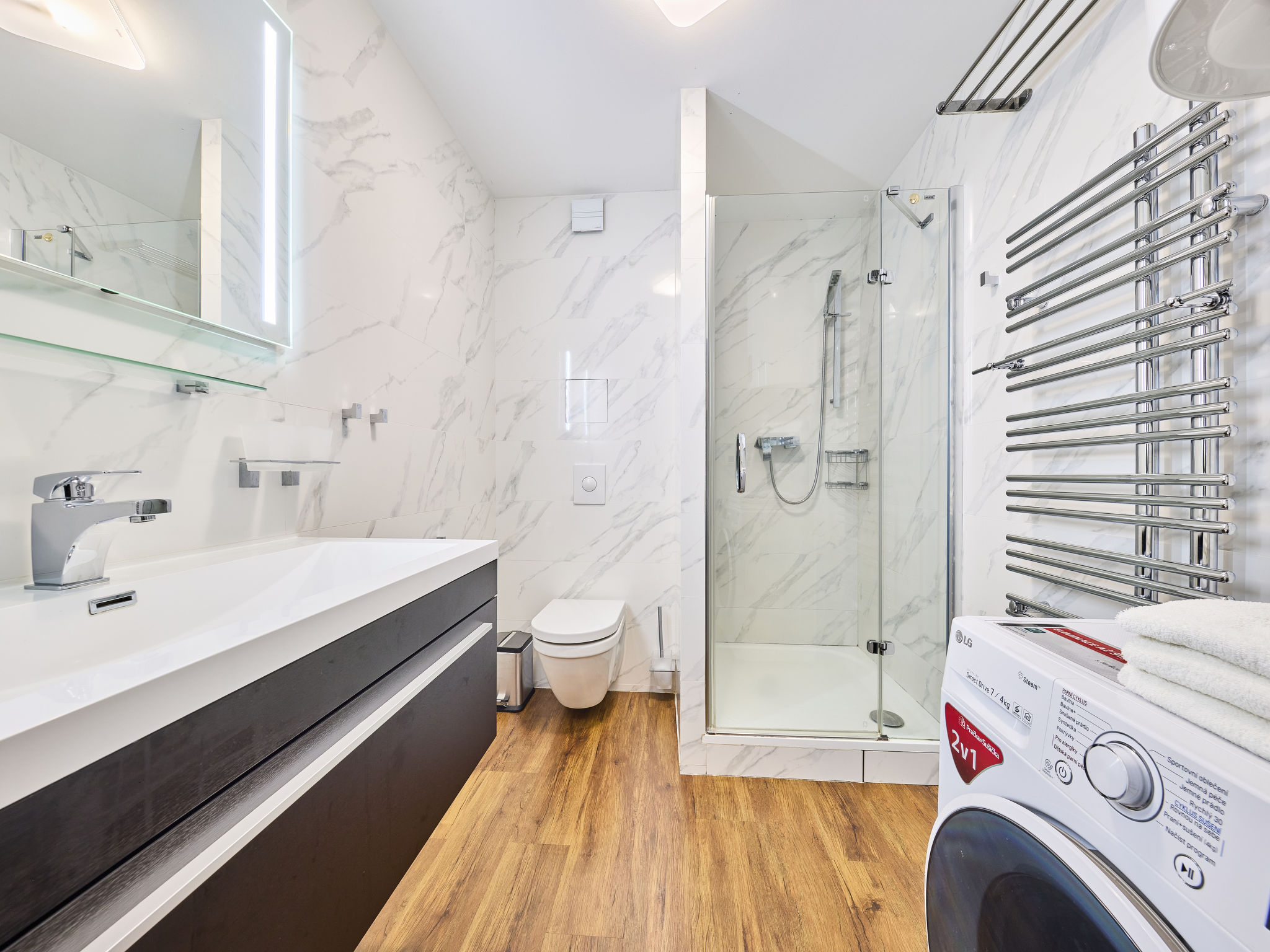 "Horní Mísečky (HMS130)", 2-Zimmer-Wohnung 54 m2 im 2. Stock. Renoviert im Jahre 2018, modern eingerichtet: Wohn-/Schlafzimmer mit 1 Diwanbett, Esstisch und Sat-TV. 1 Zimmer mit 2 Doppelbetten (160 cm). Kochnische (Backofen, Geschirrspüler, 4 Glaskeramikherd Platten, Toaster, Wasserkocher, Mikrowelle, Tiefkühler, elektrische Kaffeemaschine). Dusche/WC. Balkon. Balkonmöbel. Zur Verfügung: Waschmaschine. Internet (Wireless LAN, gratis). Parkplatz (überdacht). Bitte beachten: Nichtraucher-Unterkunft.