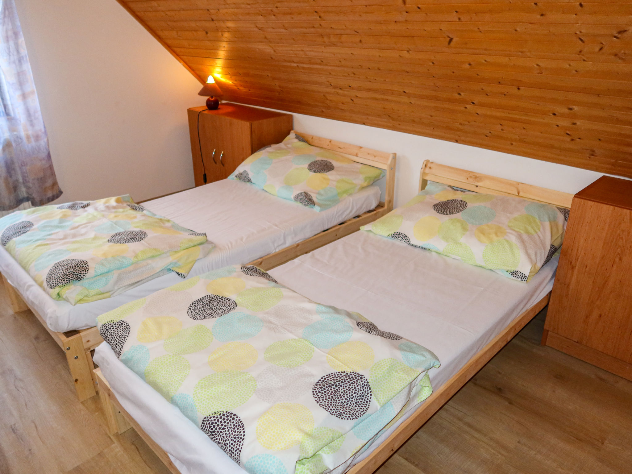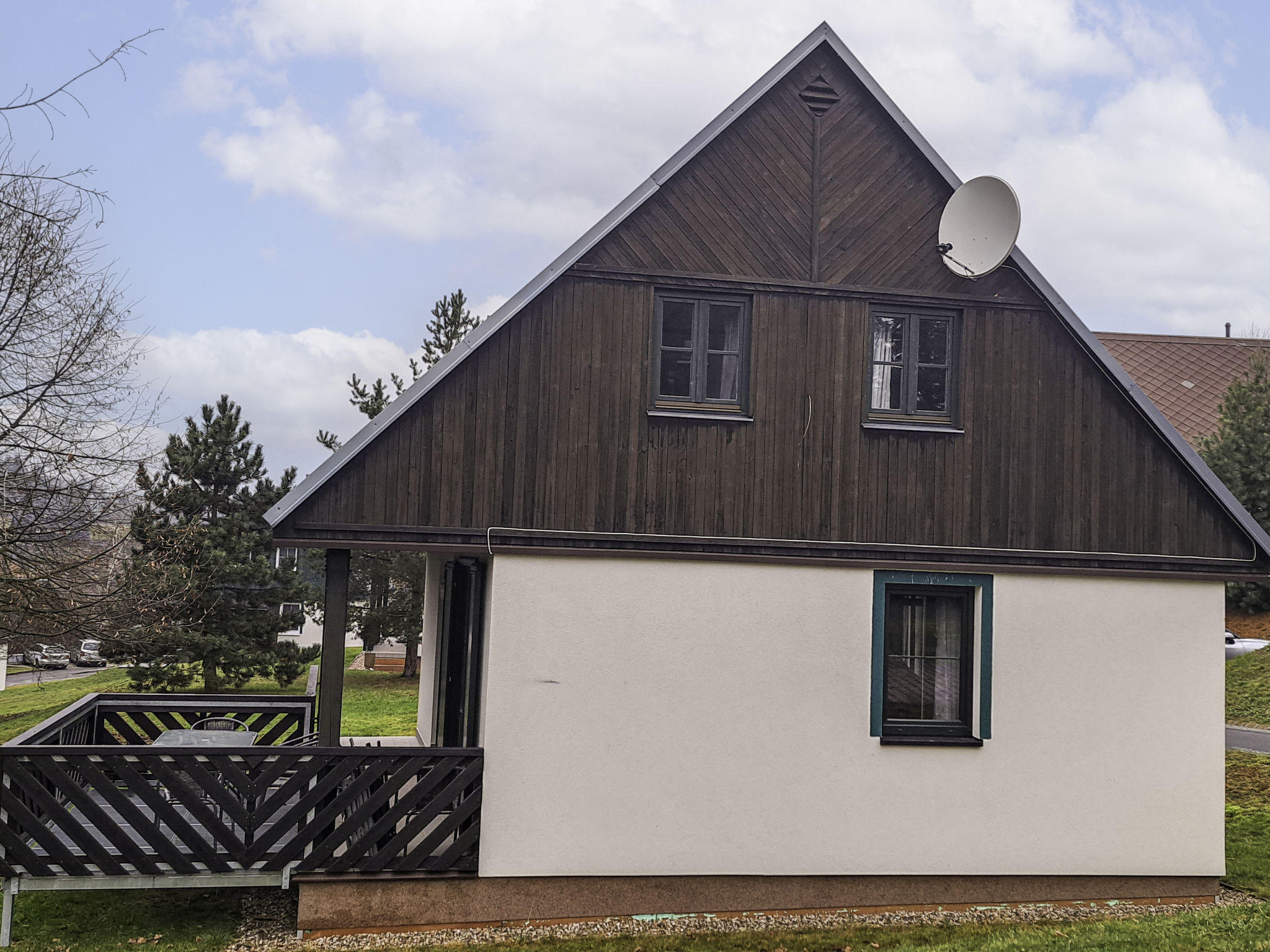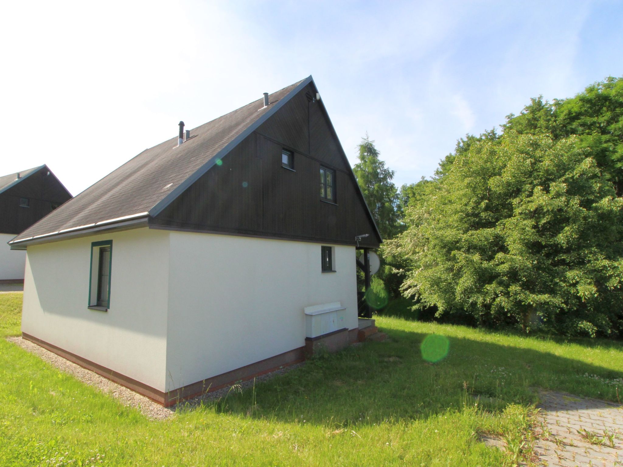Čistá v Krkonoších 2 km von Černý Důl: Kinderfreundliches, schönes, komfortables Feriendorf "Holiday Hill", 500 m.ü.M., umgeben von Bäumen und Wiesen. 43 Häuser im Ferienresort. Am Ortsrand, alleinstehende, ruhige, sonnige Lage, 1.5 km vom See, 3 km vom Skigebiet, im Grünen. Zur Mitbenutzung: Grundstück 6 ha, Wiese, Schwimmbad beheizt (9 x 4 m, 120 cm tief, saisonale Verfügbarkeit: 01.Jun.-26.Sep. Öffnungszeiten Schwimmbad: 09:00-20:00). Dusche/WC im Poolbereich, Tischtennis, Kinderspielplatz (Schaukel, Sandkasten). In der Anlage: Empfang. Parkplatz (für 2 Autos) beim Haus. Einkaufsgeschäft 2.5 km, Lebensmittelgeschäft 2.5 km, Supermarkt 7.5 km, Restaurant 1.6 km, Biergarten 400 m, Bushaltestelle "Černý Důl, Čistá-pošta" 400 m, Sandstrand 1.5 km (klein), Hallenbad 19 km. Golfplatz (18 Loch) 14 km, Tennis 2.5 km, Sportzentrum 2.5 km, Wanderwege ab Haus, Radweg 100 m, Skilift 3 km, Sessellift 3 km, Skipisten 3 km, Skibushaltestelle 100 m, Skischule 3 km, Kinderskischule 3 km, Schlittelbahn 7 km, Langlaufloipe 100 m. Nahe gelegene Sehenswürdigkeiten: Janské Lázně Spa 9 km, Vrchlabí 10 km, Aquapark Trutnov 25 km, Zoo Safari Dvůr Králové 29 km, Bozkovské jeskyně 37 km, Adršpašské skály 44 km. Bekannte Skigebiete sind gut erreichbar: Černý Důl 3 km, Herlíkovice 15 km, Pec pod Sněžkou 22 km. Bekannte Seen in der Umgebung sind gut erreichbar: Čistá 1.5 km, Vrchlabí 9 km. Wandergebiete: Sněžka 25 km.