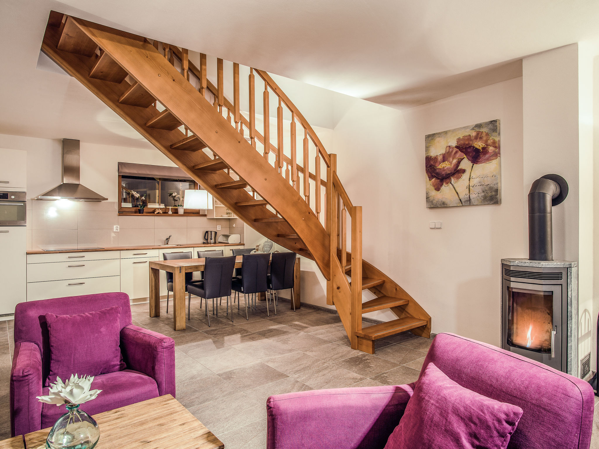 3-Zimmer-Reihenhaus 95 m2 auf 2 Stockwerken. Geräumig, gemütlich eingerichtet: Wohnzimmer mit 1 Diwanbett und Schwedenofen. Kochnische (Geschirrspüler, 4 Glaskeramikherd Platten, Toaster, Wasserkocher, Mikrowelle, Tiefkühler, elektrische Kaffeemaschine) mit Esstisch. Sep. WC. Obergeschoss: 1 Zimmer mit 1 Doppelbett. 1 Zimmer mit 1 Bett und 1 Doppelbett. Bad/WC. Terrasse. Terrassenmöbel, Abstellkammer. Zur Verfügung: Internet (Wireless LAN, gratis). Bitte beachten: Nichtraucher-Haus. Grill (gegen Aufpreis). Haustier auf Anfrage.