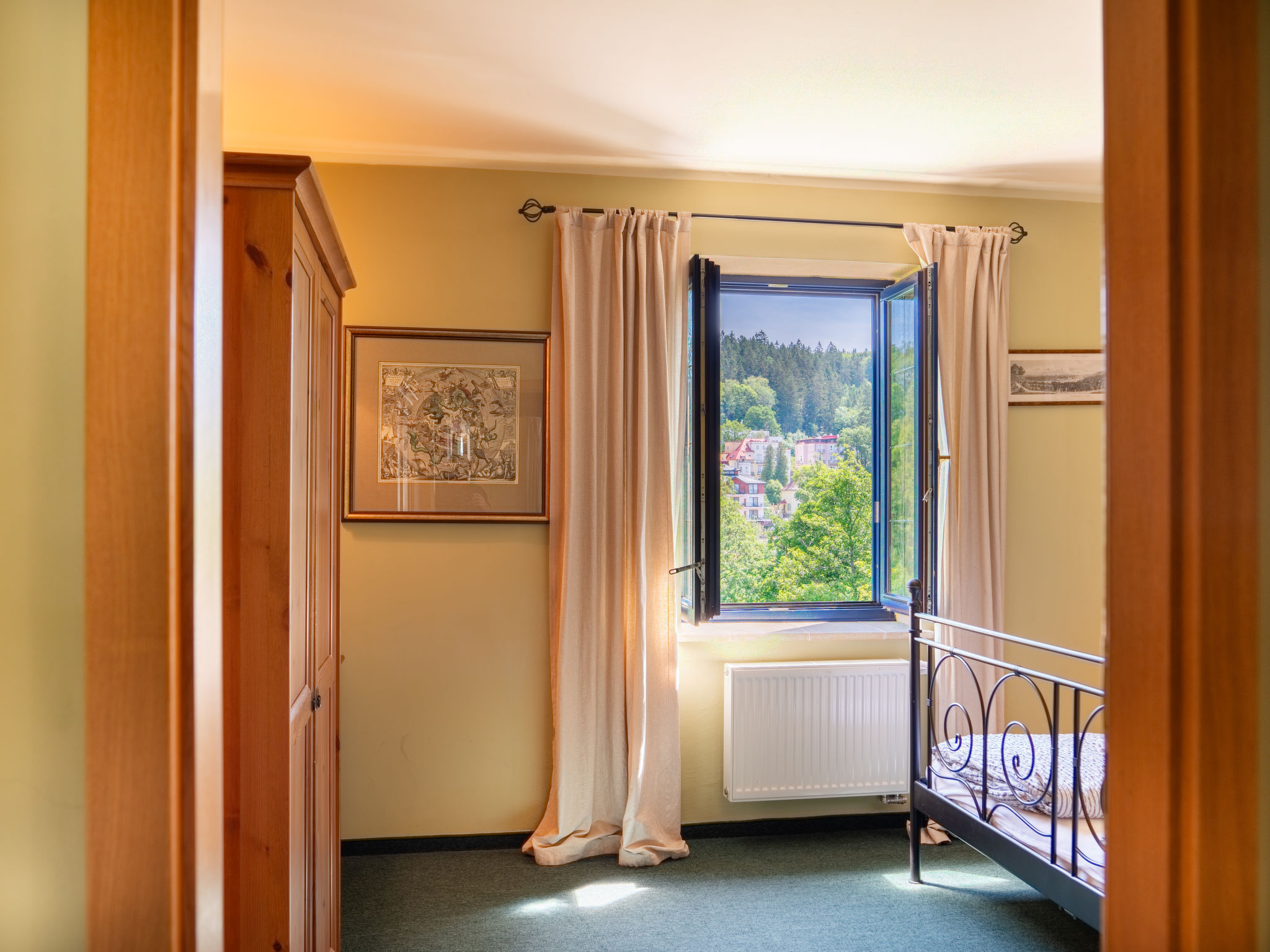 Das Haus "Villa Merlin" wurde im alten englischen Stil erbaut, in einem Wohnquartier am Rande der Altstadt von Marianske Lazne. Haus auf 3 Stockwerken, Baujahr 2006. Im Ort, 100 m vom Zentrum, zentrale, ruhige Lage, an einer Strasse, im Grünen. Im Hause: Skiraum, Zentralheizung. Parkplatz auf dem Grundstück. Einkaufsgeschäft, Restaurant 100 m, Freibad 1 km, Hallenbad 1 km. Golfplatz 3 km, Tennis 500 m, Skipisten 3 km. Bitte beachten: In diesem Haus sind weitere Ferienwohnungen mietbar. Die Südost-Seite des Hauses verfügt über eine Terrasse, welche in hübsche Ecken des historischen Spa-Parkes führt.