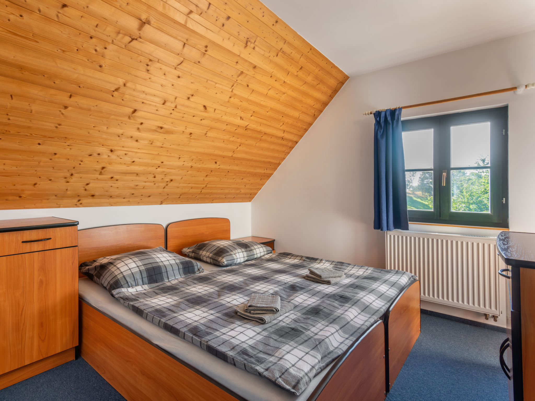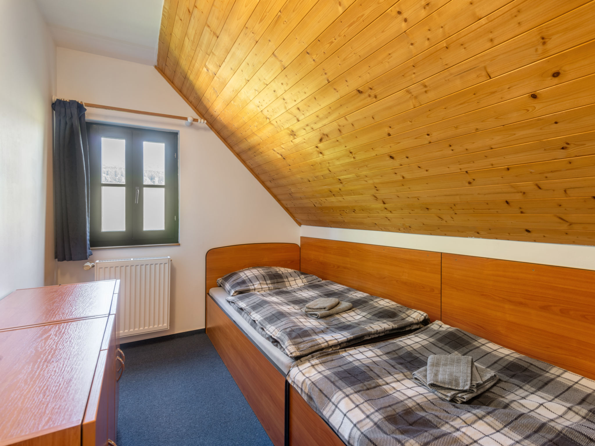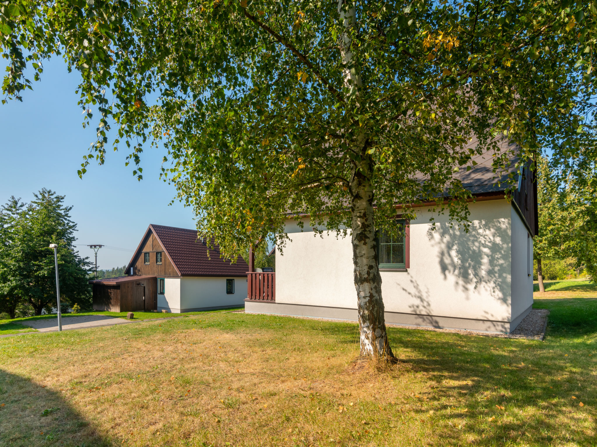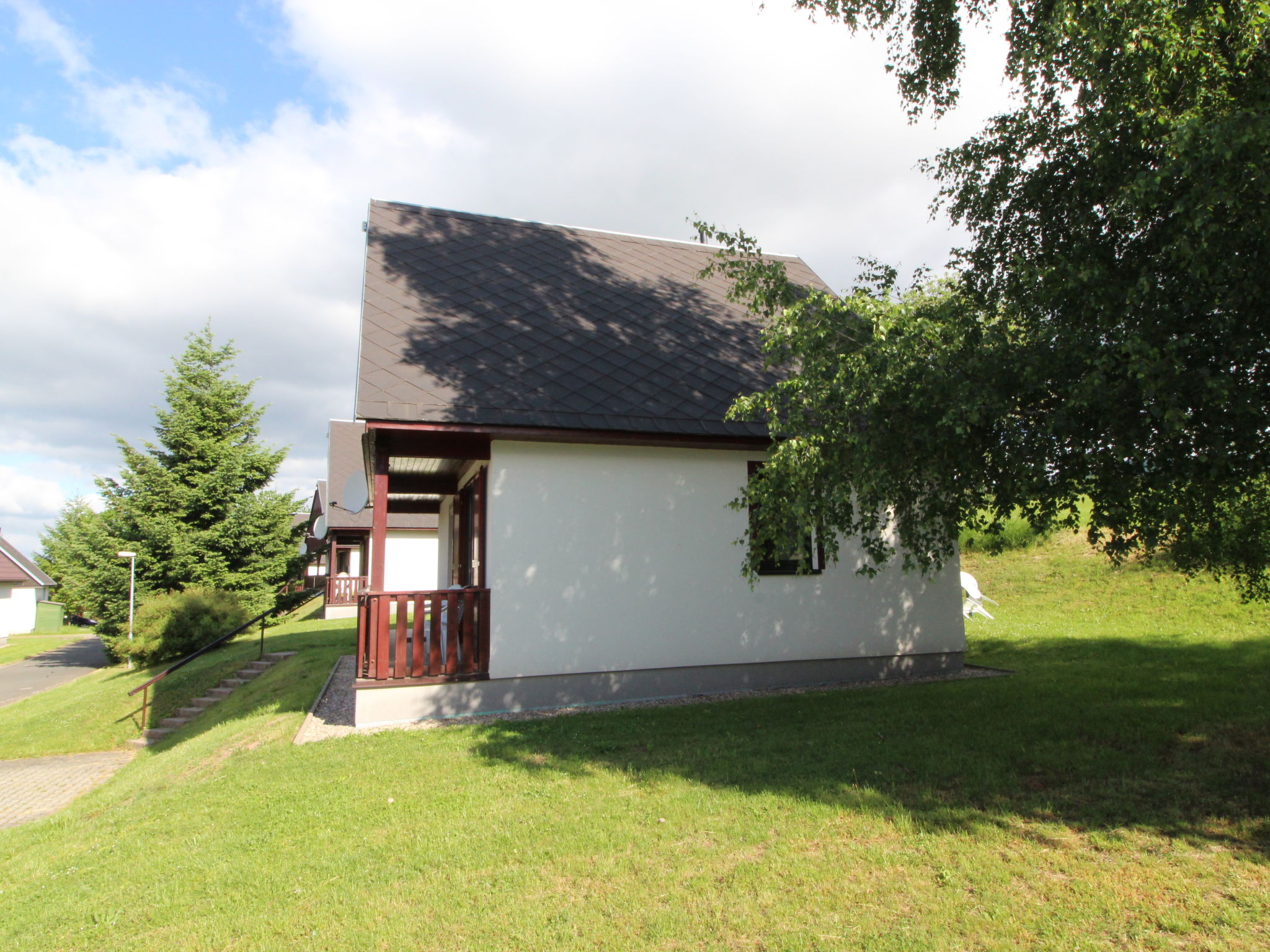 Čistá v Krkonoších 2 km von Černý Důl: Kinderfreundliches, schönes, komfortables Feriendorf "Holiday Hill", 500 m.ü.M., umgeben von Bäumen und Wiesen. 43 Häuser im Ferienresort. Am Ortsrand, alleinstehende, ruhige, sonnige Lage, 1.5 km vom See, 3 km vom Skigebiet, im Grünen. Zur Mitbenutzung: Grundstück 6 ha, Wiese, Schwimmbad beheizt (9 x 4 m, 120 cm tief, saisonale Verfügbarkeit: 01.Jun.-26.Sep. Öffnungszeiten Schwimmbad: 09:00-20:00). Dusche/WC im Poolbereich, Tischtennis, Kinderspielplatz (Schaukel, Sandkasten). In der Anlage: Empfang. Parkplatz (für 2 Autos) beim Haus. Einkaufsgeschäft 2.5 km, Lebensmittelgeschäft 2.5 km, Supermarkt 7.5 km, Restaurant 1.6 km, Biergarten 400 m, Bushaltestelle "Černý Důl, Čistá-pošta" 400 m, Sandstrand 1.5 km (klein), Hallenbad 19 km. Golfplatz (18 Loch) 14 km, Tennis 2.5 km, Sportzentrum 2.5 km, Wanderwege ab Haus, Radweg 100 m, Skilift 3 km, Sessellift 3 km, Skipisten 3 km, Skibushaltestelle 100 m, Skischule 3 km, Kinderskischule 3 km, Schlittelbahn 7 km, Langlaufloipe 100 m. Nahe gelegene Sehenswürdigkeiten: Janské Lázně Spa 9 km, Vrchlabí 10 km, Aquapark Trutnov 25 km, Zoo Safari Dvůr Králové 29 km, Bozkovské jeskyně 37 km, Adršpašské skály 44 km. Bekannte Skigebiete sind gut erreichbar: Černý Důl 3 km, Herlíkovice 15 km, Pec pod Sněžkou 22 km. Bekannte Seen in der Umgebung sind gut erreichbar: Čistá 1.5 km, Vrchlabí 9 km. Wandergebiete: Sněžka 25 km.