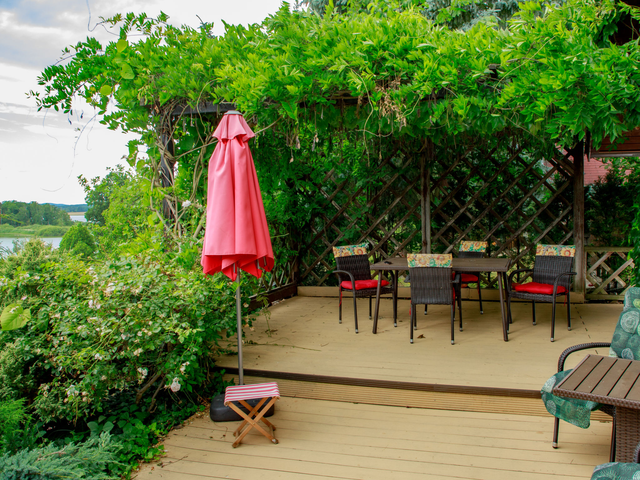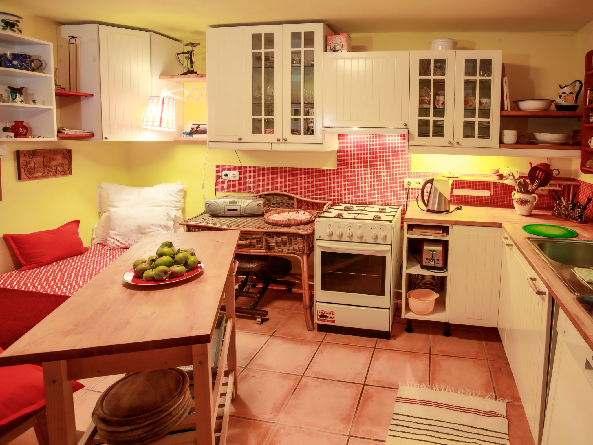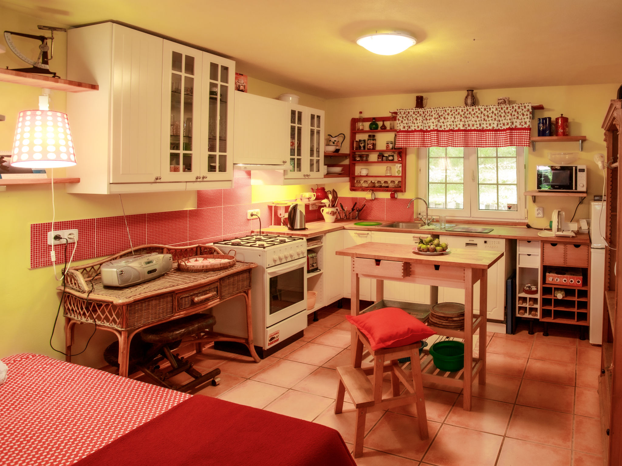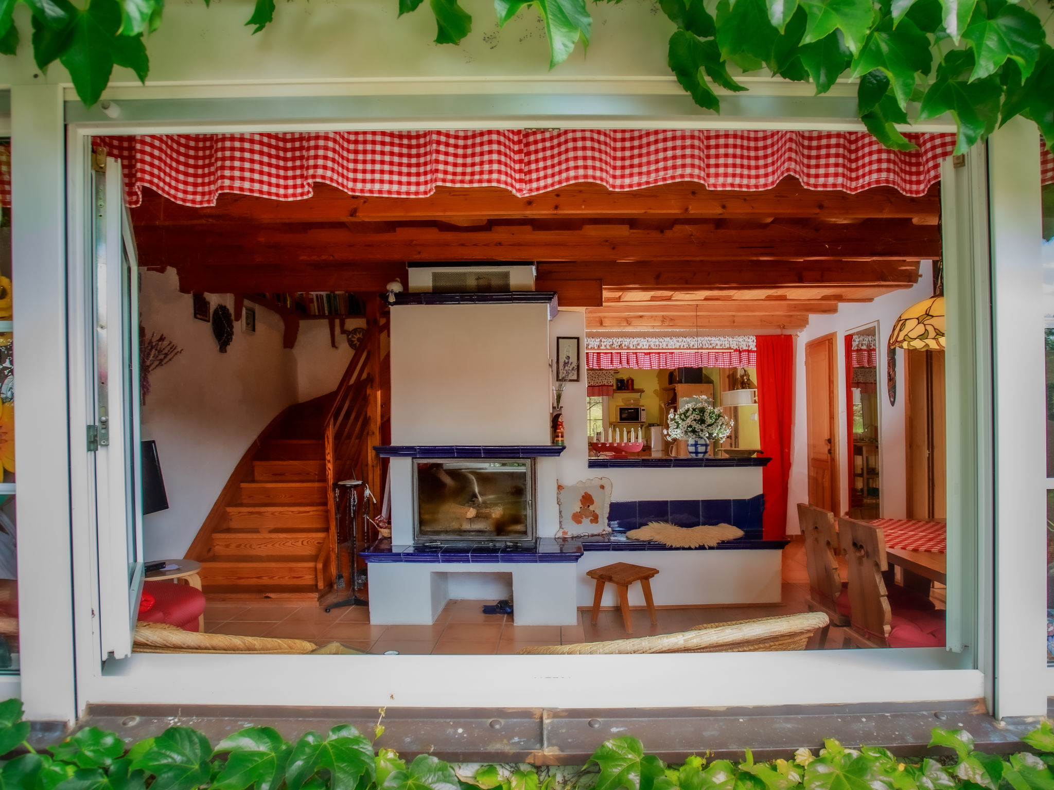 2-Zimmer-Haus 75 m2 auf 2 Stockwerken. Vollständig renoviert im Jahre 2005, schön und geschmackvoll eingerichtet: Wohn-/Schlafzimmer mit 1 Doppeldiwanbett, Schwedenofen, Esstisch, Sat-TV und Radio. Offene Küche (4 Kochplatten, Backofen, Geschirrspüler, Toaster, Wasserkocher, Mikrowelle, Tiefkühler, elektrische Kaffeemaschine). Bad, sep. WC. E-Heizung, Bodenheizung. Obergeschoss: 1 abgeschrägtes Zimmer mit 1 franz. Bett (130 cm), 1 Doppelbett. Terrasse. Terrassenmöbel, Liegestühle (4), Abstellkammer. Panoramasicht auf den See. Zur Verfügung: Waschmaschine, Kinderhochstuhl, Babybett. Internet (Wireless LAN, gratis). Bitte beachten: Nichtraucher-Unterkunft. Maximal 3 kleine Haustiere/Hunde erlaubt.