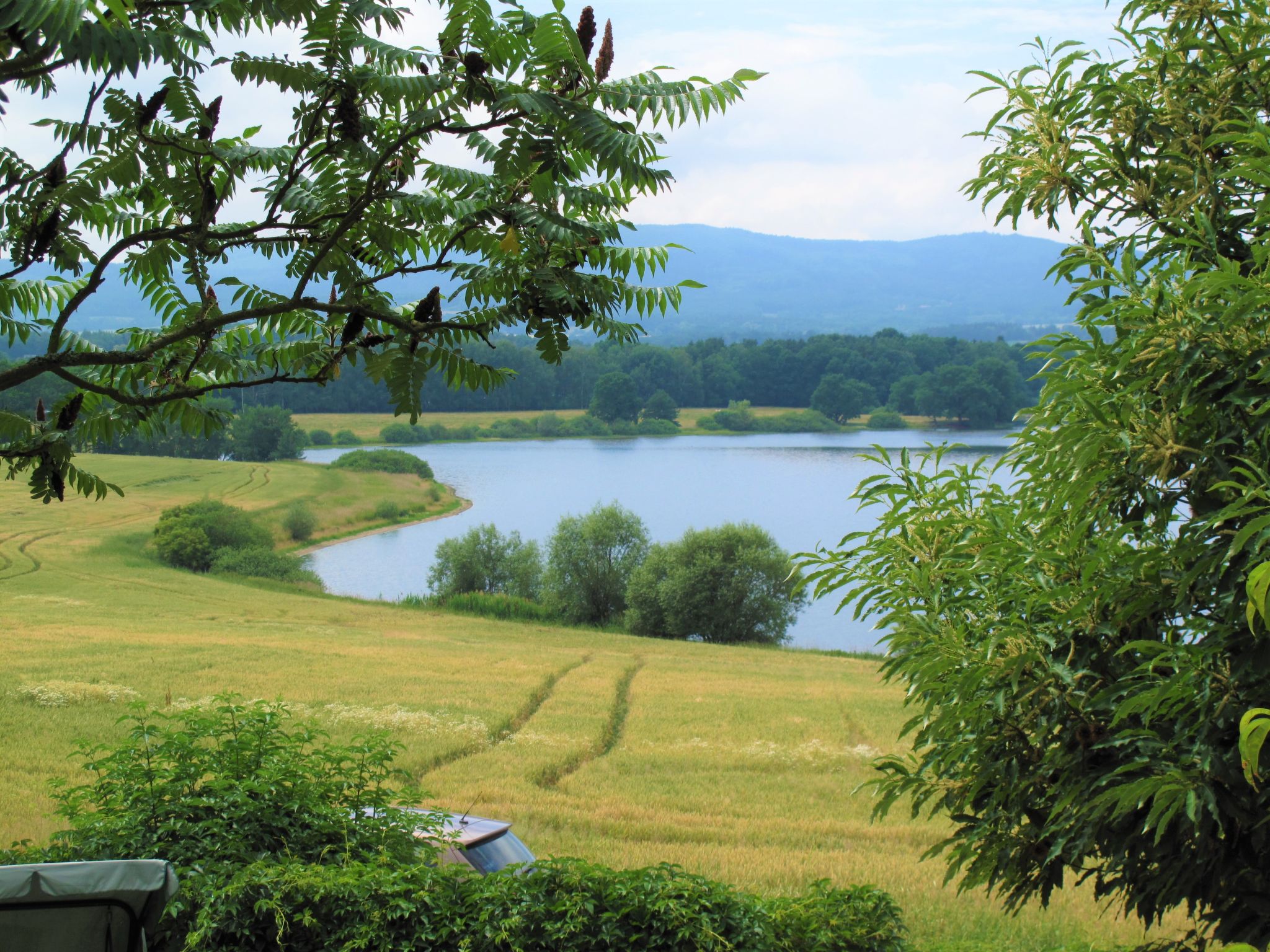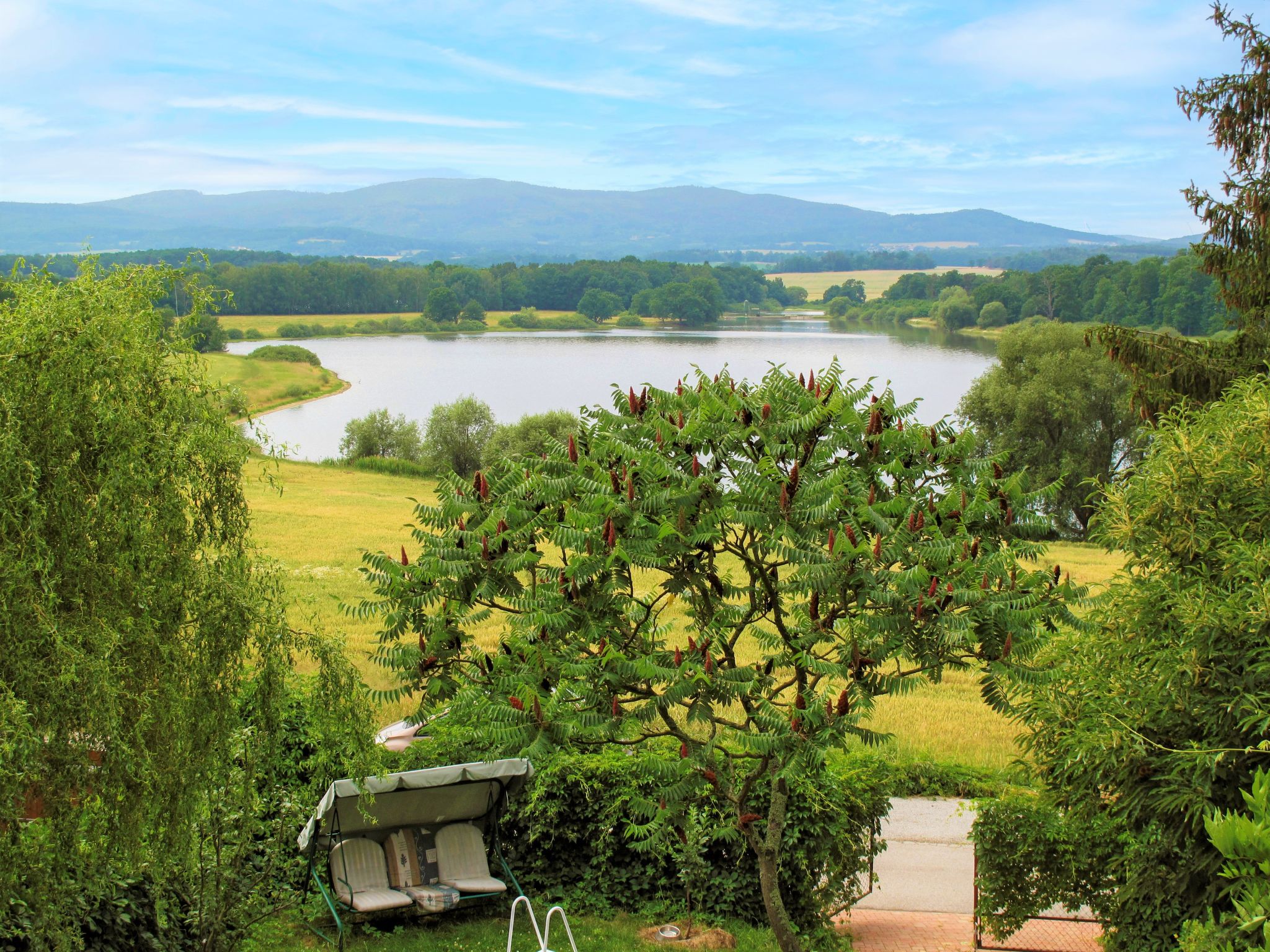 Schönes, alleinstehendes Chalet "Karasova II (DEH102)", 400 m.ü.M., umgeben von Wiesen und Feldern. 500 m vom Zentrum von Dehtáře, am Ortsrand, 6 km vom Zentrum von Holašovice, 15 km vom Zentrum von Hluboká nad Vltavou, ruhige, sonnige Lage, 150 m vom See. Zur Alleinbenutzung: Grundstück 450 m2 (eingezäunt), Garten Rasen und Bäumen, Aufstellpool (3,5 m Durchmesser, 90 cm tief, 16.05.-19.09.). Terrasse, Gartenmöbel. Im Hause: Waschmaschine, Fahrräder vorhanden (extra). Zur Verfügung: Boot. 1 km lange holprige, schmale Zufahrt. Parkplatz auf dem Grundstück. Einkaufsgeschäft 2 km, Supermarkt 15 km, Restaurant 2 km, Biergarten 500 m, Bushaltestelle "Dehtáře" 500 m, Bahnstation "Netolice" 11 km, Freibad 15 km, Hallenbad 15 km, Badesee "Dehtáře" 150 m. Golfplatz (18 Loch) 15 km, Reitstall 2 km, Wanderwege ab Haus, Radweg 10 m. Nahe gelegene Sehenswürdigkeiten: UNESCO Holašovice 6 km, Hluboká nad Vltavou 15 km, České Budějovice 15 km, Dívčí kámen, lanovka na rozhlednu Kleť 18 km, krokodýlí ZOO Protivín 30 km, Český Krumlov 36 km. Bekannte Seen in der Umgebung sind gut erreichbar: Dehtáře 150 m.