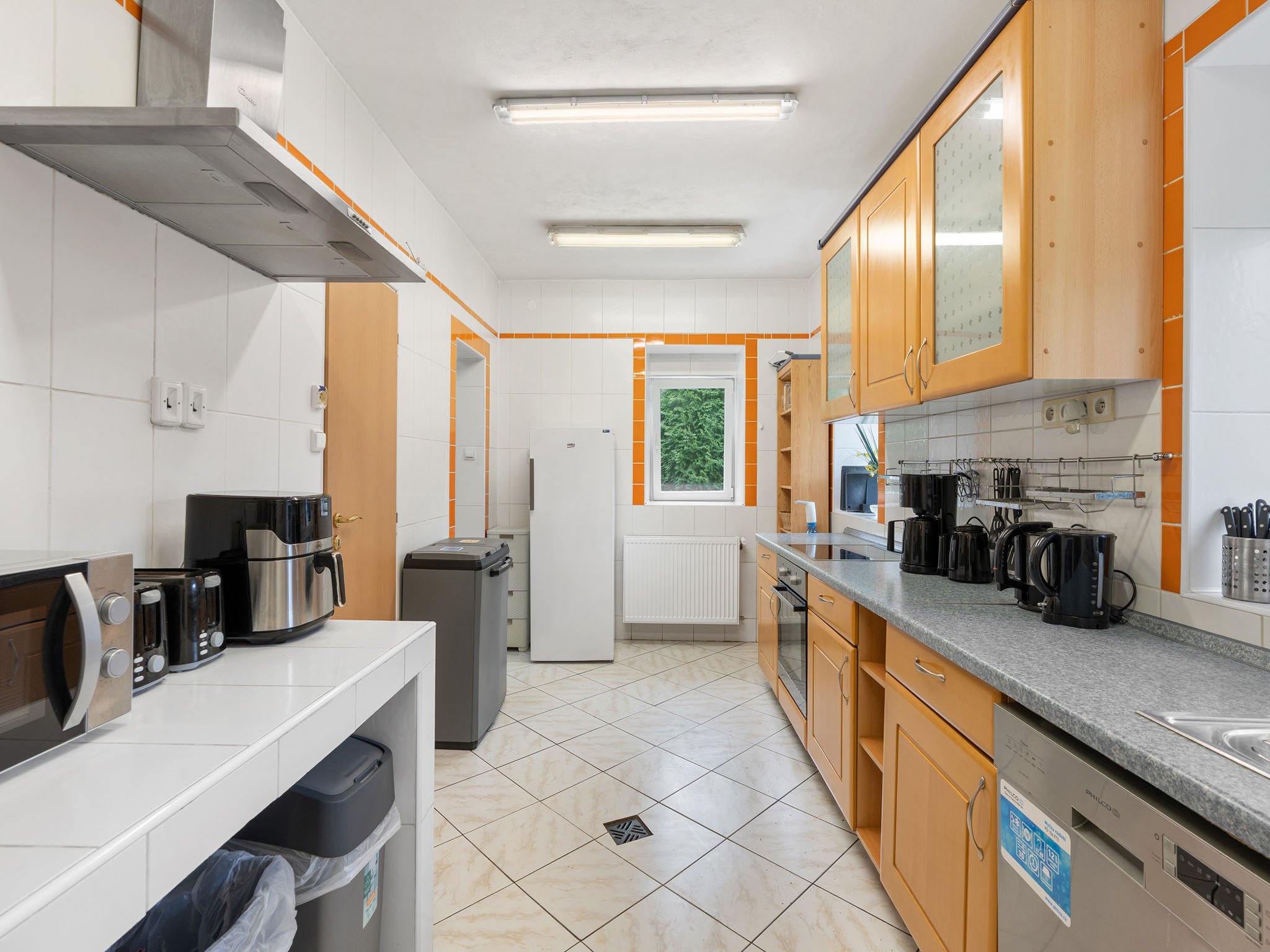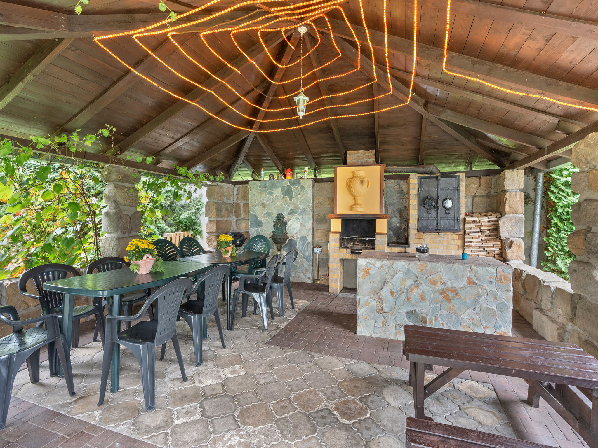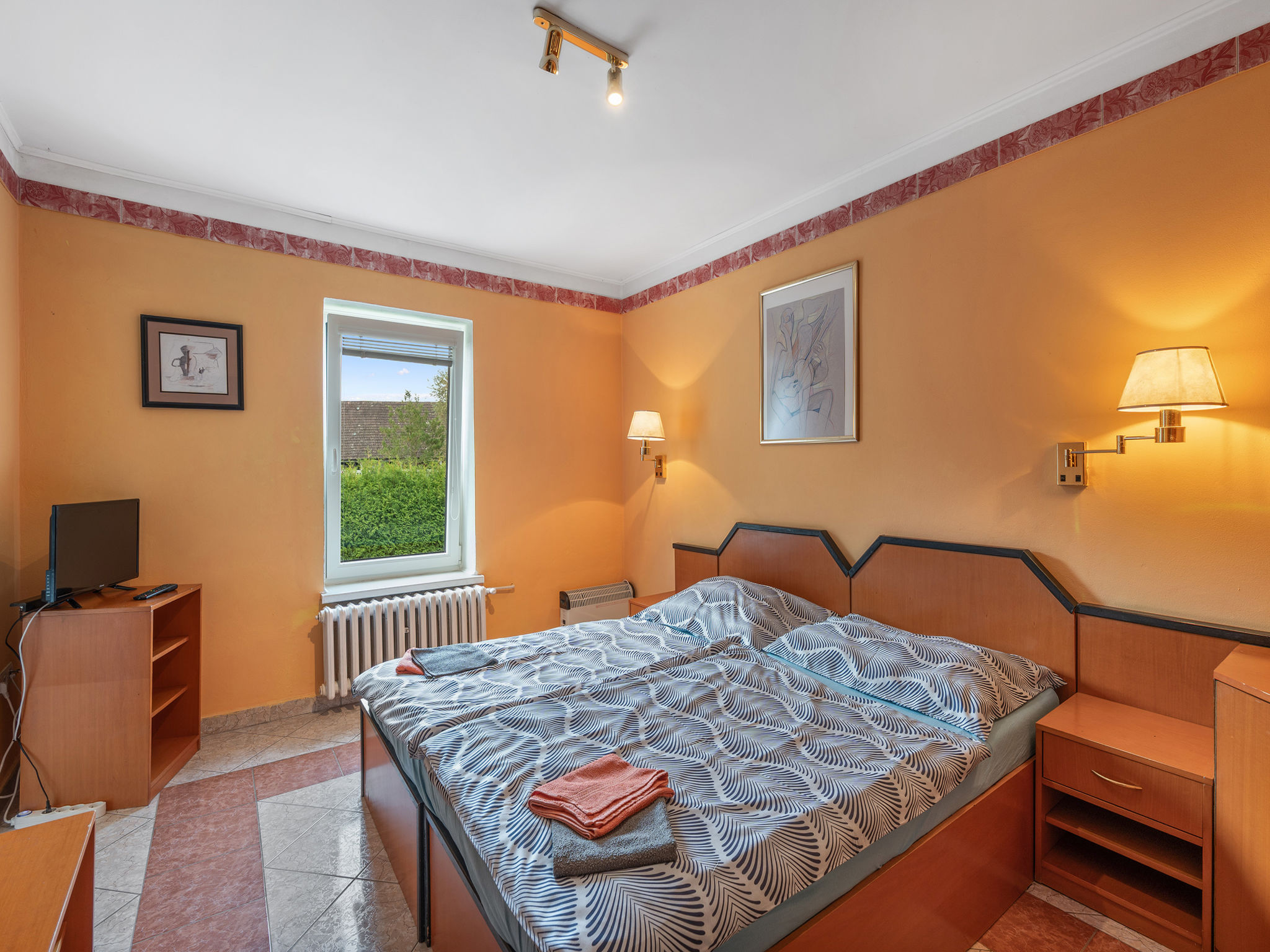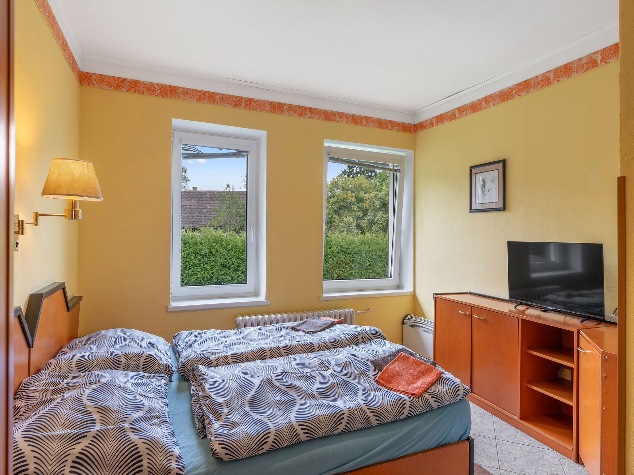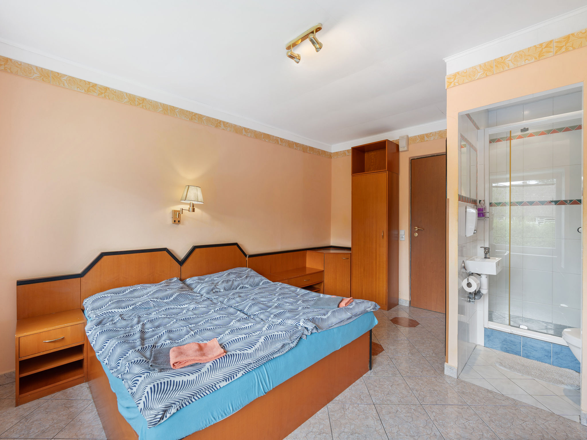8-Zimmer-Haus 335 m2 auf 2 Stockwerken. Geräumig, komfortabel eingerichtet: Wohn-/Esszimmer mit Schwedenofen und Sat-TV (Flachbildschirm), Kachelofen. Kleiner Salon mit Schwedenofen. Grosse Küche (Backofen, Geschirrspüler, 4 Glaskeramikherd Platten, Toaster, Wasserkocher, Mikrowelle, Tiefkühler, Grill, Dampfgarer) mit sep. WC. 2 sep. WC's, Doppelwaschbecken. Obergeschoss: 3 Doppelzimmer, jedes Zimmer mit 1 franz. Bett, Dusche/WC, TV und Heizofen. Wohn-/Schlafzimmer mit 2 Betten, Dusche/WC und TV. Kleines Wohnzimmer mit Dusche/WC. 2. Obergeschoss: (Wendeltreppe) abgeschrägte kleine Galerie mit 2 Doppelbetten. Zur Verfügung: Internet (Wireless LAN, gratis). 2 Haustiere/Hunde erlaubt.