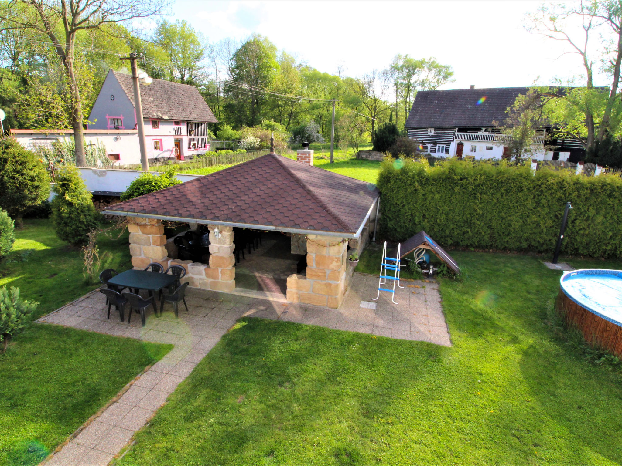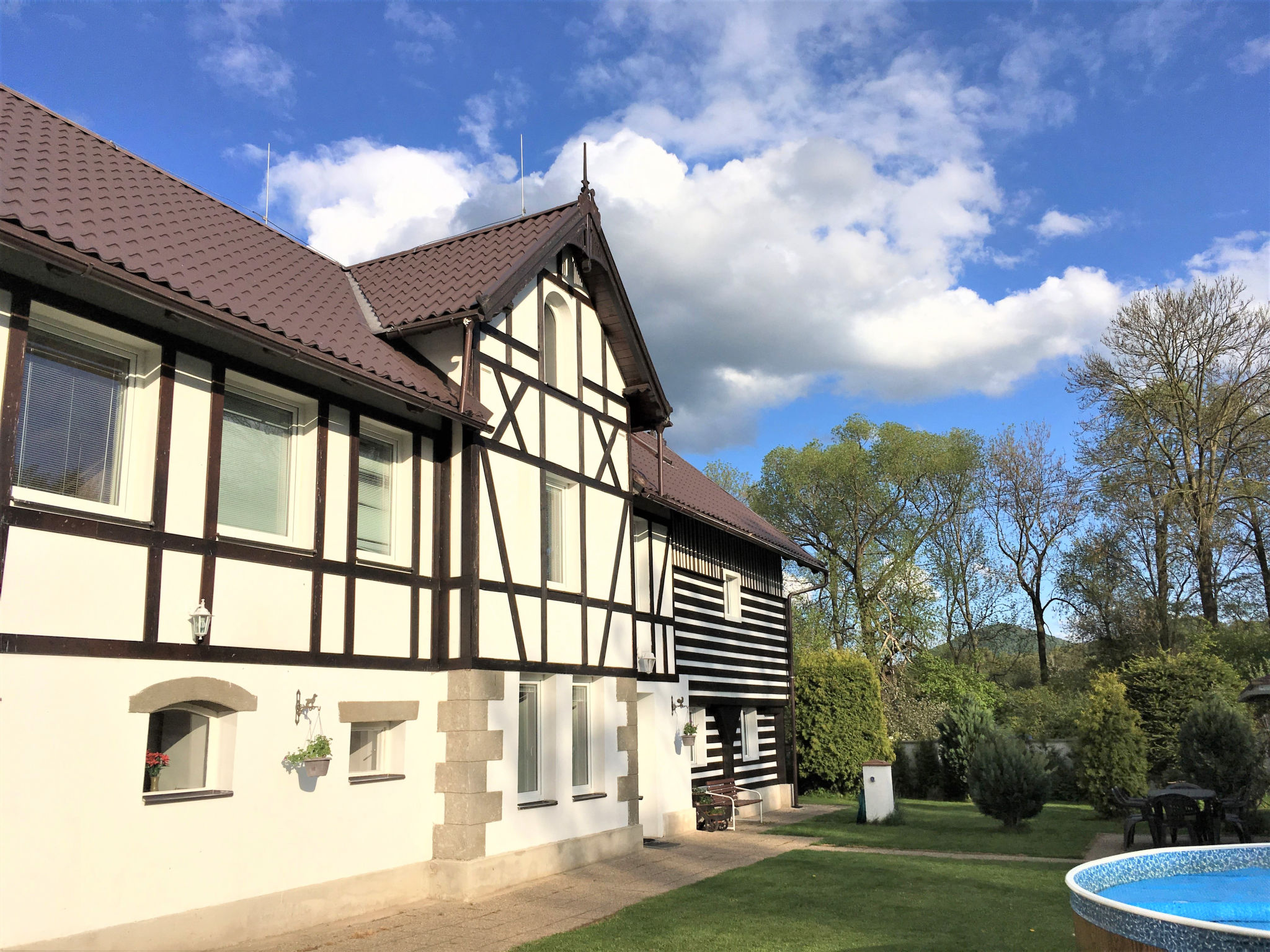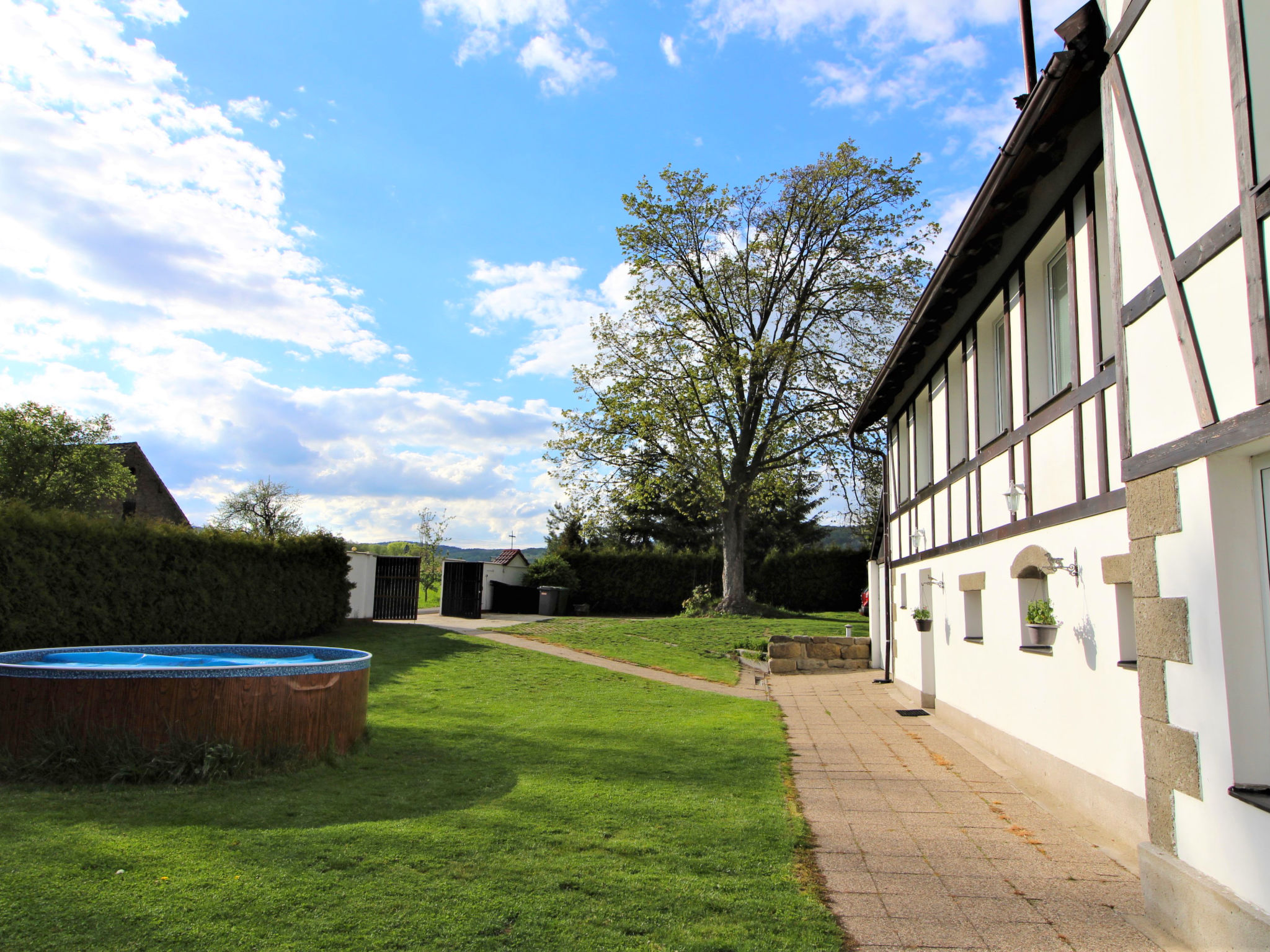 Grosses, kinderfreundliches Bauernhaus "Sezímky" im Jahre 2012. Im Ortsteil Sezímky, ruhige, sonnige Lage, 700 m vom Waldrand, im Grünen. Zur Alleinbenutzung: Grundstück 800 m2 (eingezäunt) mit Rasen, Liegewiese (eingezäunt), Schwimmbad rund (3,6 m Durchmesser, 01.05.-30.09.). Aussendusche, Pergola (30 m2), Gartenmöbel, Grill, Grillhaus, Poolpflege durch den Besitzer/Gärtner. Im Hause: Wireless LAN, Einstellraum für Fahrräder, Skiraum, Zentralheizung, Alarmanlage, Wäscherei, Waschmaschine. Parkplatz (für 4 Autos) auf dem Grundstück. Einkaufsgeschäft 2 km, Lebensmittelgeschäft 2 km, Supermarkt 15 km, Bushaltestelle "Kravaře - Sezímky" 350 m, Hallenbad 15 km, Badesee 3 km. Nahe gelegene Sehenswürdigkeiten: jízda v kočáru a koňském spřežení, ranč, zámek Zahrádky, údolí Peklo 9 km, Česká Lípa 17 km, Staré Splavy, Doksy 19 km, skanzen Zubrnice 20 km. Bekannte Seen in der Umgebung sind gut erreichbar: Máchovo jezero 19 km. Wandergebiete: Kokořínsko, Máchův kraj 8 km. Bitte beachten: geeignet für Familien. Geeignet für Events.