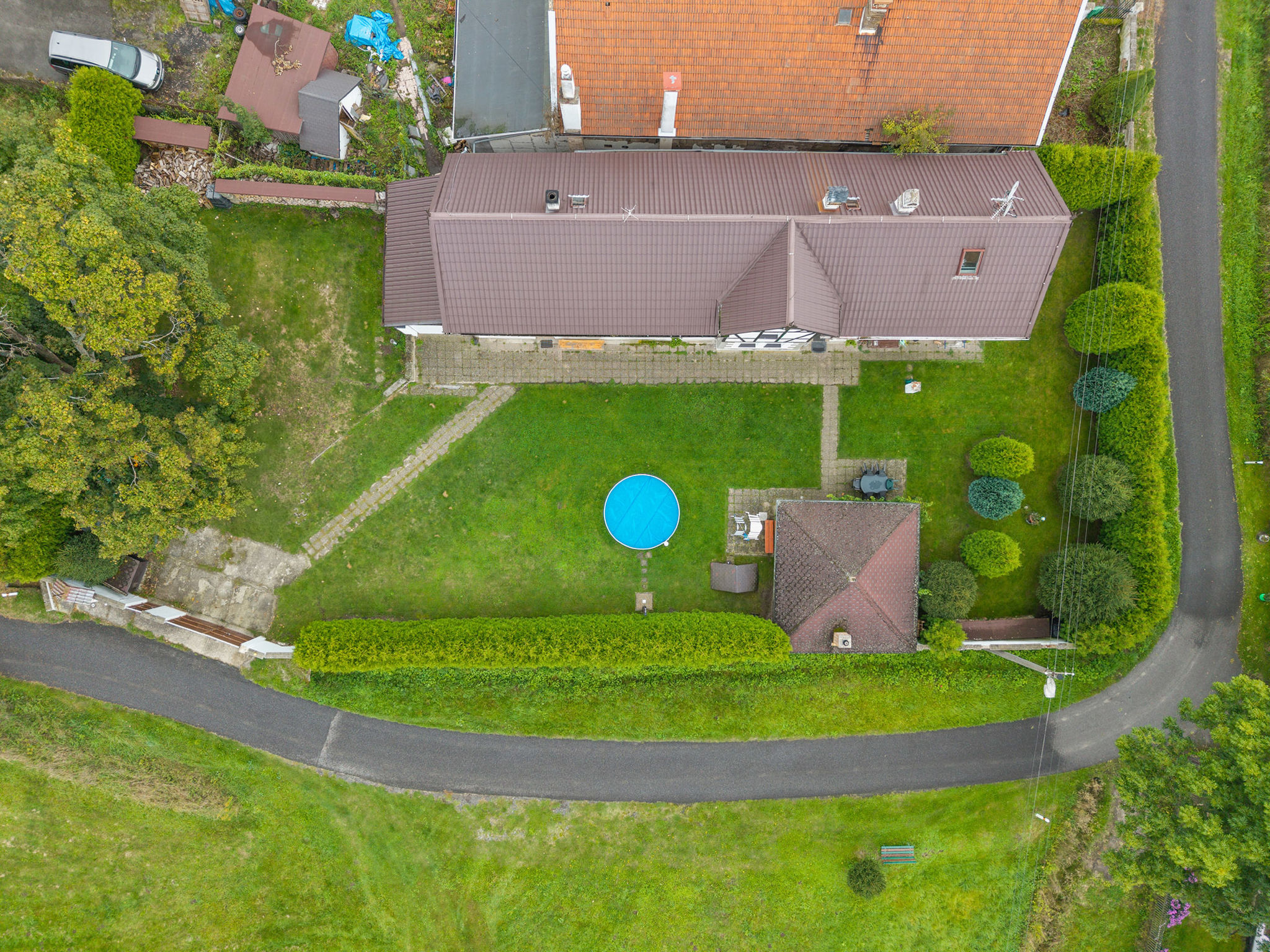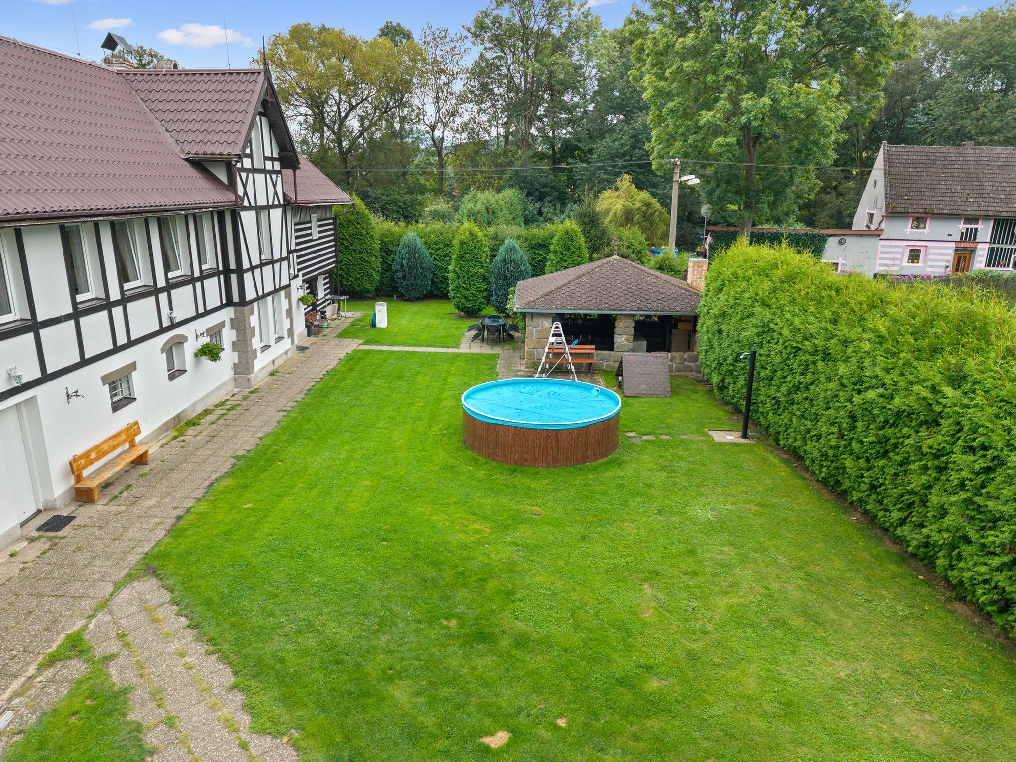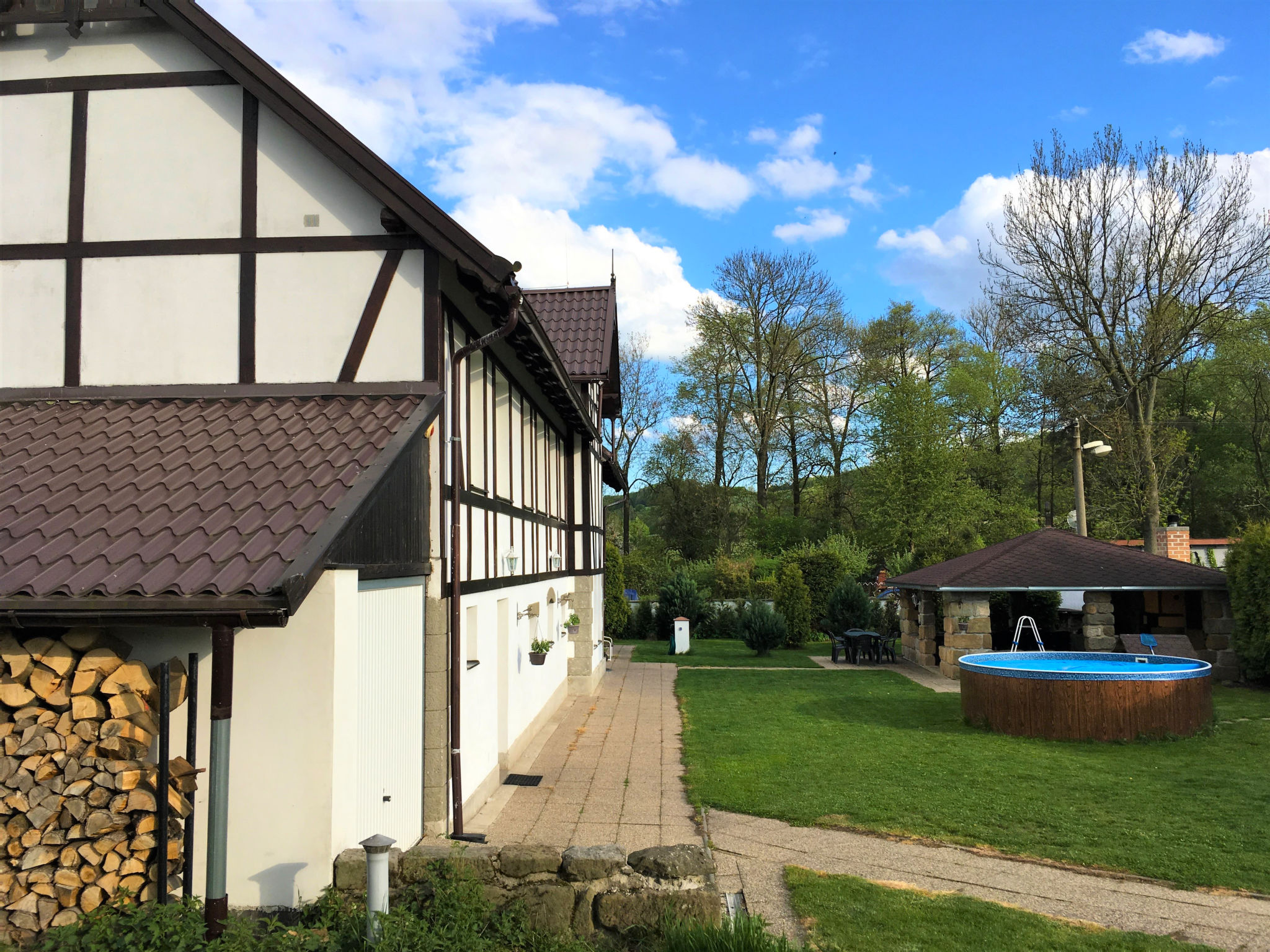 Grosses, kinderfreundliches Bauernhaus "Sezímky" im Jahre 2012. Im Ortsteil Sezímky, ruhige, sonnige Lage, 700 m vom Waldrand, im Grünen. Zur Alleinbenutzung: Grundstück 800 m2 (eingezäunt) mit Rasen, Liegewiese (eingezäunt), Schwimmbad rund (3,6 m Durchmesser, 01.05.-30.09.). Aussendusche, Pergola (30 m2), Gartenmöbel, Grill, Grillhaus, Poolpflege durch den Besitzer/Gärtner. Im Hause: Wireless LAN, Einstellraum für Fahrräder, Skiraum, Zentralheizung, Alarmanlage, Wäscherei, Waschmaschine. Parkplatz (für 4 Autos) auf dem Grundstück. Einkaufsgeschäft 2 km, Lebensmittelgeschäft 2 km, Supermarkt 15 km, Bushaltestelle "Kravaře - Sezímky" 350 m, Hallenbad 15 km, Badesee 3 km. Nahe gelegene Sehenswürdigkeiten: jízda v kočáru a koňském spřežení, ranč, zámek Zahrádky, údolí Peklo 9 km, Česká Lípa 17 km, Staré Splavy, Doksy 19 km, skanzen Zubrnice 20 km. Bekannte Seen in der Umgebung sind gut erreichbar: Máchovo jezero 19 km. Wandergebiete: Kokořínsko, Máchův kraj 8 km. Bitte beachten: geeignet für Familien. Geeignet für Events.