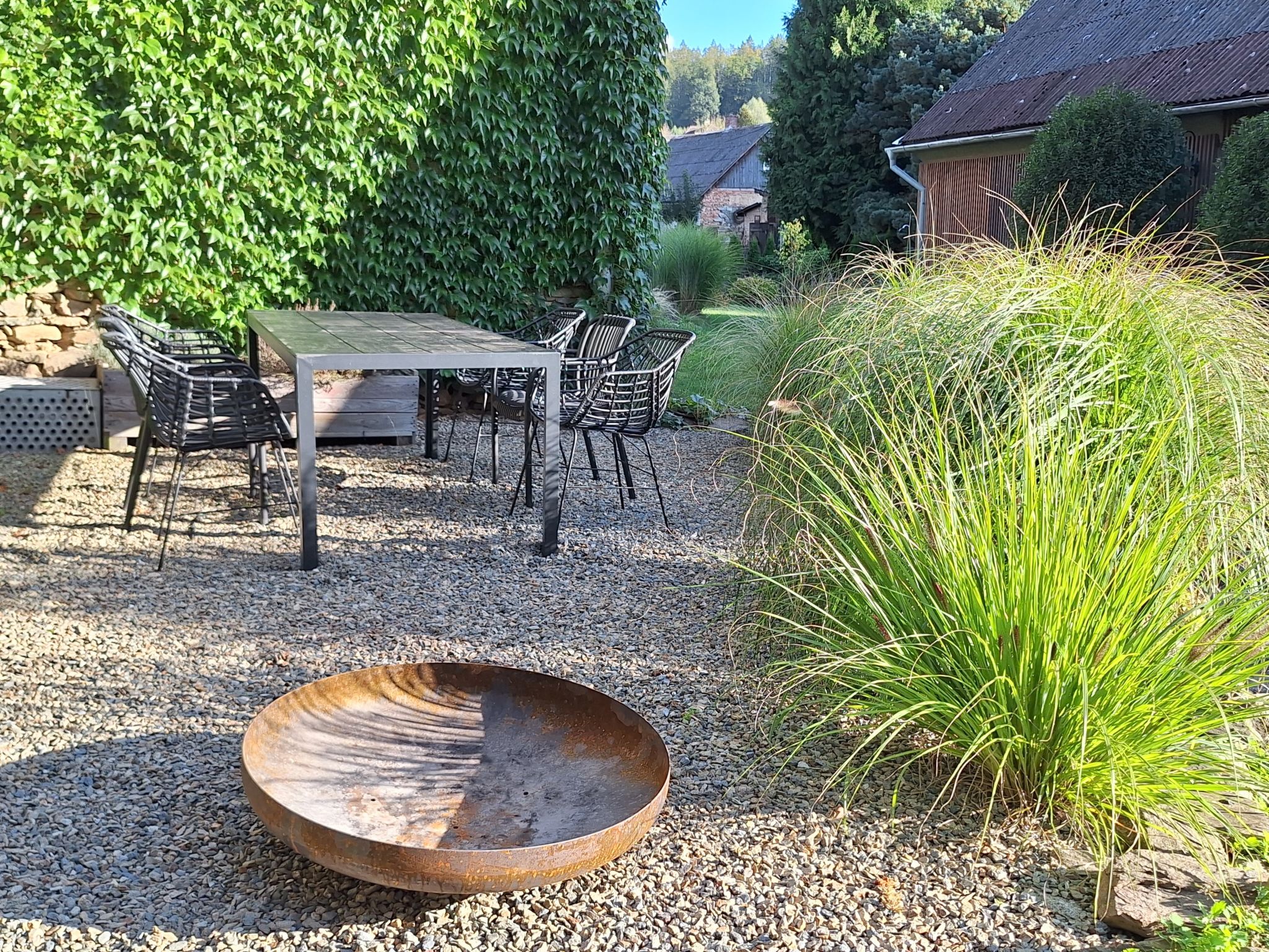 "Brníčko", 4-Zimmer-Haus 160 m2. Modern und gemütlich eingerichtet: Wohn-/Esszimmer mit 1 Diwanbett und Radio. Ausgang zum Garten. 3 Zimmer, jedes Zimmer mit 1 franz. Bett (140 cm). Offene Küche (Backofen, Geschirrspüler, 4 Glaskeramikherd Platten, Wasserkocher, Tiefkühler, elektrische Kaffeemaschine) mit Esstisch, Schwedenofen. Dusche/WC, sep. WC. E-Heizung, Holzheizung, Boiler (120 Liter). Terrasse 60 m2. Terrassenmöbel. Schöne Sicht auf die Landschaft. Zur Verfügung: Waschmaschine, Wäschetrockner, Holz (extra). Internet (Wireless LAN, gratis). Bitte beachten: Nichtraucher-Haus.