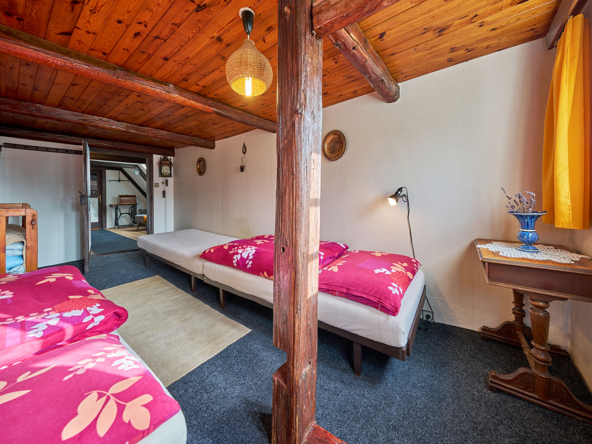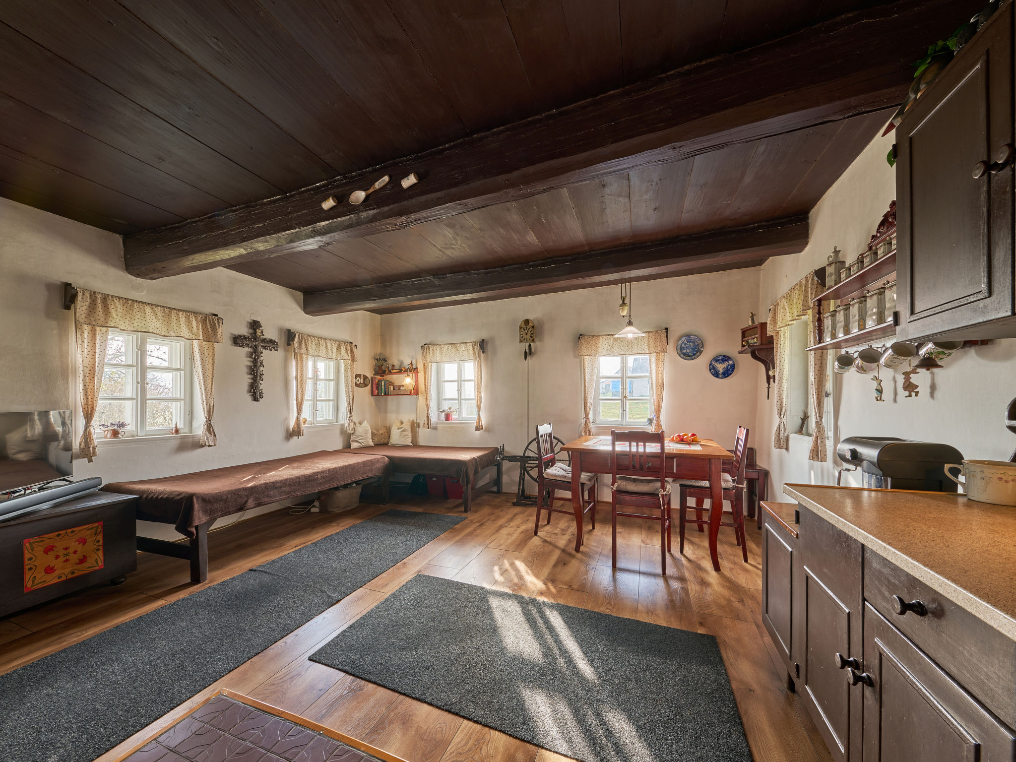 "Zdoňov", 3-Zimmer-Haus 80 m2 auf 2 Stockwerken. Komfortabel und gemütlich eingerichtet: Eingang mit offenem Kamin. Wohnzimmer mit Schwedenofen und Sat-TV (Flachbildschirm). Ausgang zum Garten. Küche (2 Glaskeramikherd Platten, Wasserkocher, Mikrowelle, Tiefkühler) mit Esstisch. Bad, sep. WC. Boiler (80 Liter). Dachgeschoss: 1 Zimmer mit 1 Doppelbett. 1 Zimmer mit 3 Betten. E-Heizung, Holzheizung. Schöne Sicht auf die Landschaft. 2 Haustiere/Hunde erlaubt.