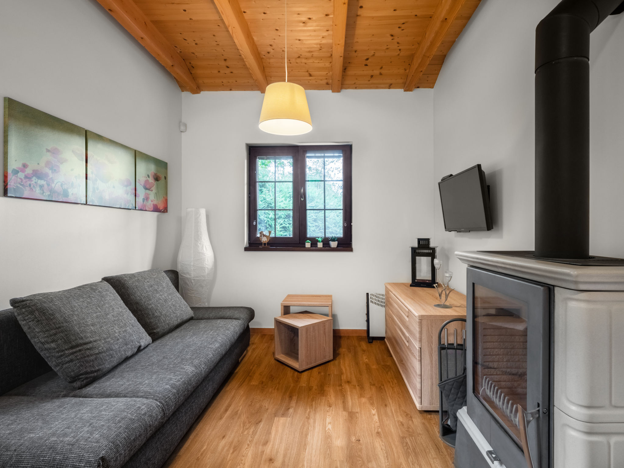 "Bečov nad Teplou 1", 2-Zimmer-Chalet 36 m2. Hell, gemütlich eingerichtet: Wohnzimmer mit 1 Doppeldiwanbett, Schwedenofen und Sat-TV. 1 Zimmer mit 1 Doppelbett. Kochnische (2 Kochplatten, Mikrowelle, elektrische Kaffeemaschine) mit Esstisch. Dusche/WC. E-Heizung, Holzheizung, Bodenheizung. Terrasse. Terrassenmöbel, Gartengrill, Sitzplatz. Zur Verfügung: Internet (Wireless LAN, gratis). Bitte beachten: Nichtraucher-Haus. Das Sofa im Wohnzimmer ist ein ausziehbares Schlafsofa für 2 Personen.