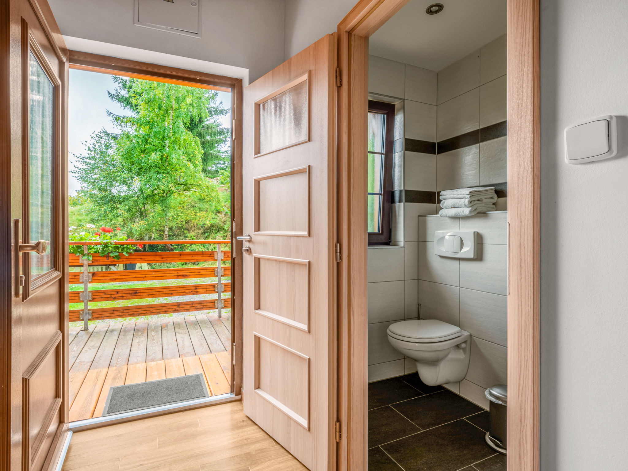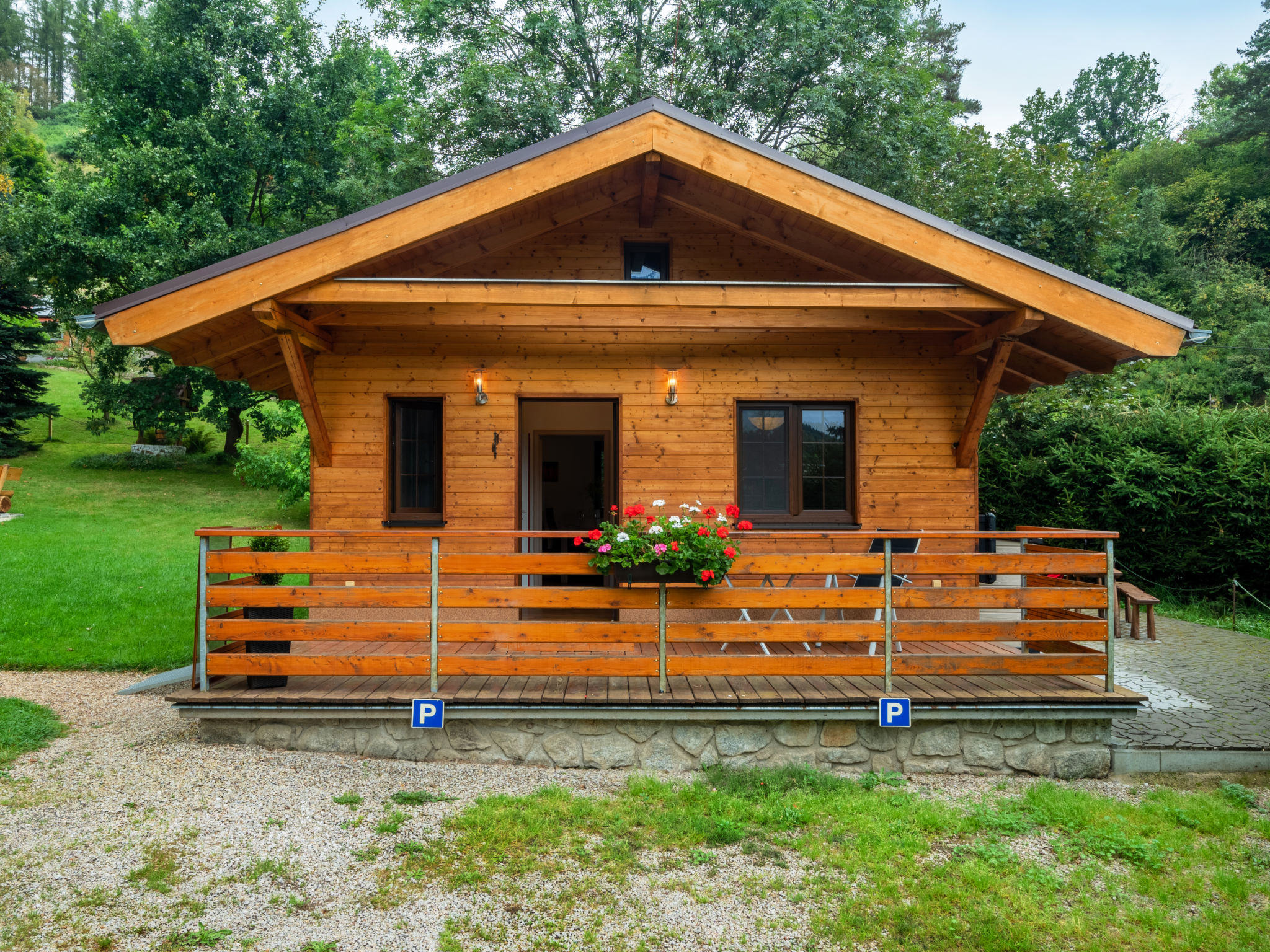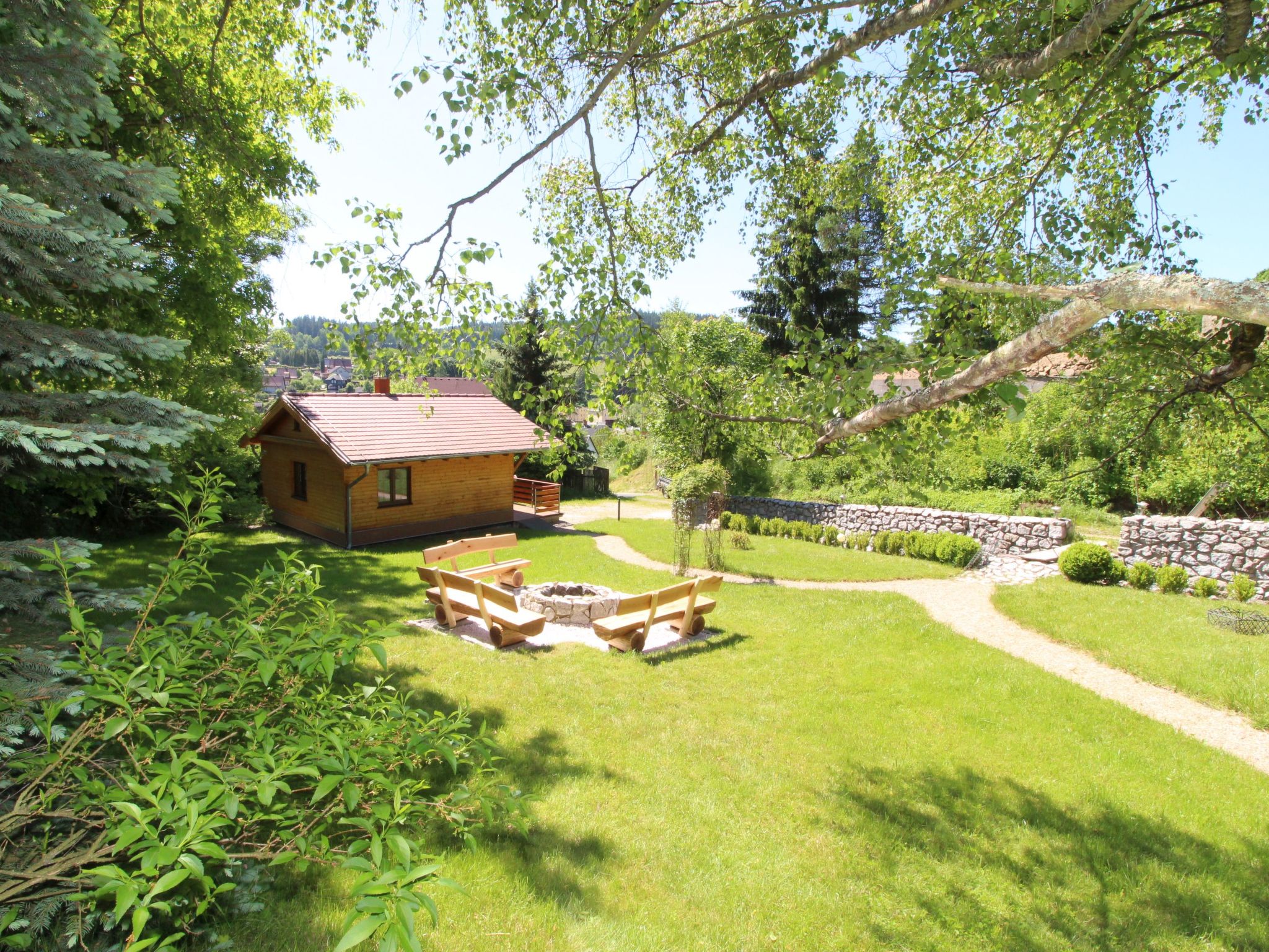 Ideal zum Entspannen und Ausruhen, alleinstehendes, komfortables Chalet, Baujahr 2016. 2 Häuser im Ferienresort. Am Ortsrand Bečov nad Teplou, ruhige, erhöhte Lage, direkt am Bach, im Grünen. Zur Mitbenutzung: Grundstück (eingezäunt) mit Rasen. Zur Alleinbenutzung: Grundstück 300 m2. Terrasse, Gartenmöbel, Grill, Feuerstelle, Parkplatz (für 2 Autos) auf dem Grundstück. Einkaufsgeschäft 1 km, Restaurant 400 m, Freibad 15 km, Hallenbad 20 km. Wanderwege ab Haus, Radweg 10 m, Skilift 20 km, Langlaufloipe 18 km. Nahe gelegene Sehenswürdigkeiten: Hrad a zámek Bečov nad Teplou 900 m, Bečovská Botanická Zahrada 700 m, Hrad Loket 17 km, Klášter Teplá 18 km, Zámek Kynžvart 23 km, Skiareál Mariánky 22 km, Klínovec 50 km. Wandergebiete: Karlovy Vary 20 km, Mariánské Lázně 20 km, Františkovy Lázně 45 km. Der Besitzer akzeptiert keine Jugendgruppen. Bitte beachten: Ferienwohnung Ref. CZ3644.2.1 befindet sich auf dem gleichen Grundstück.