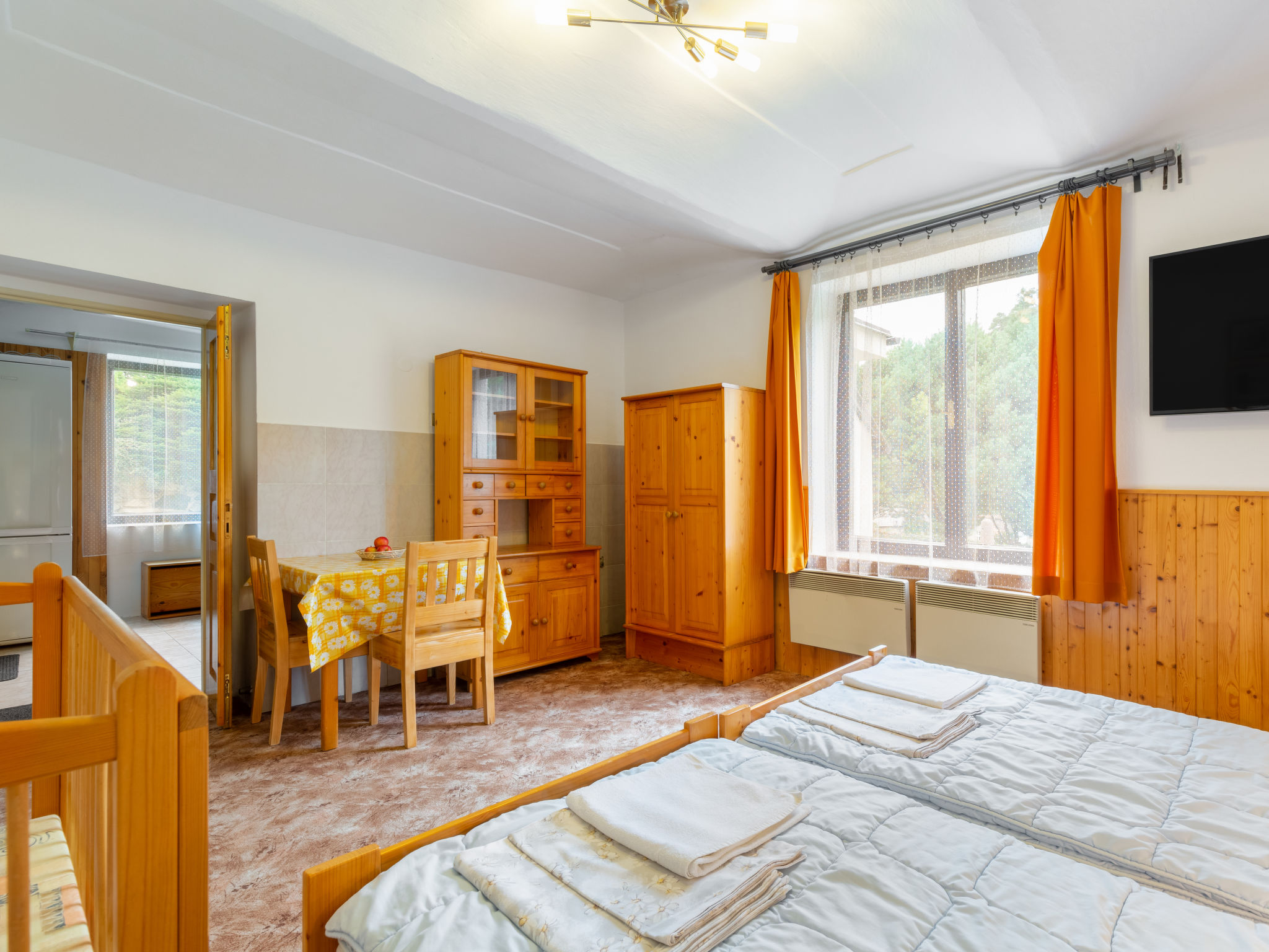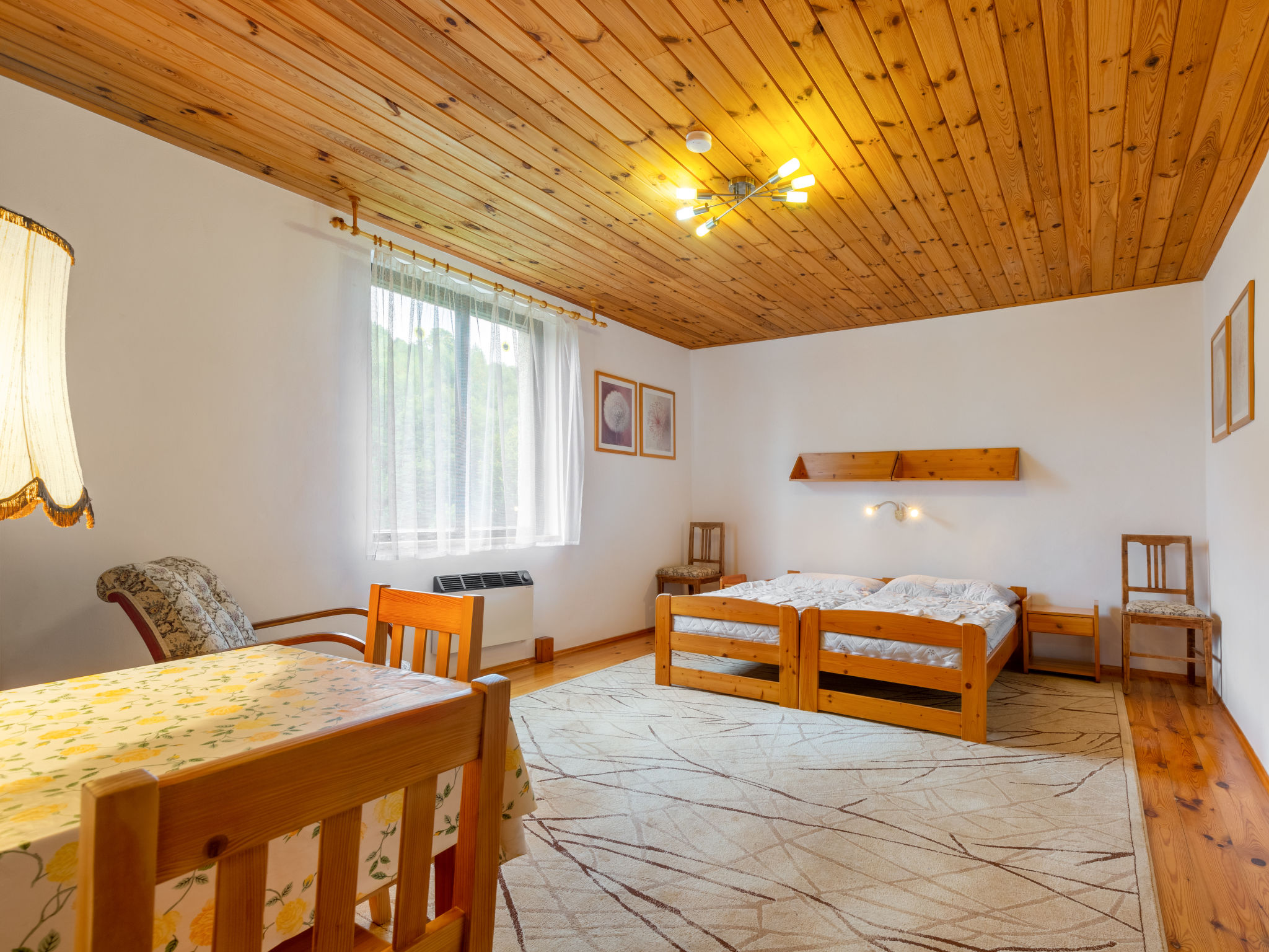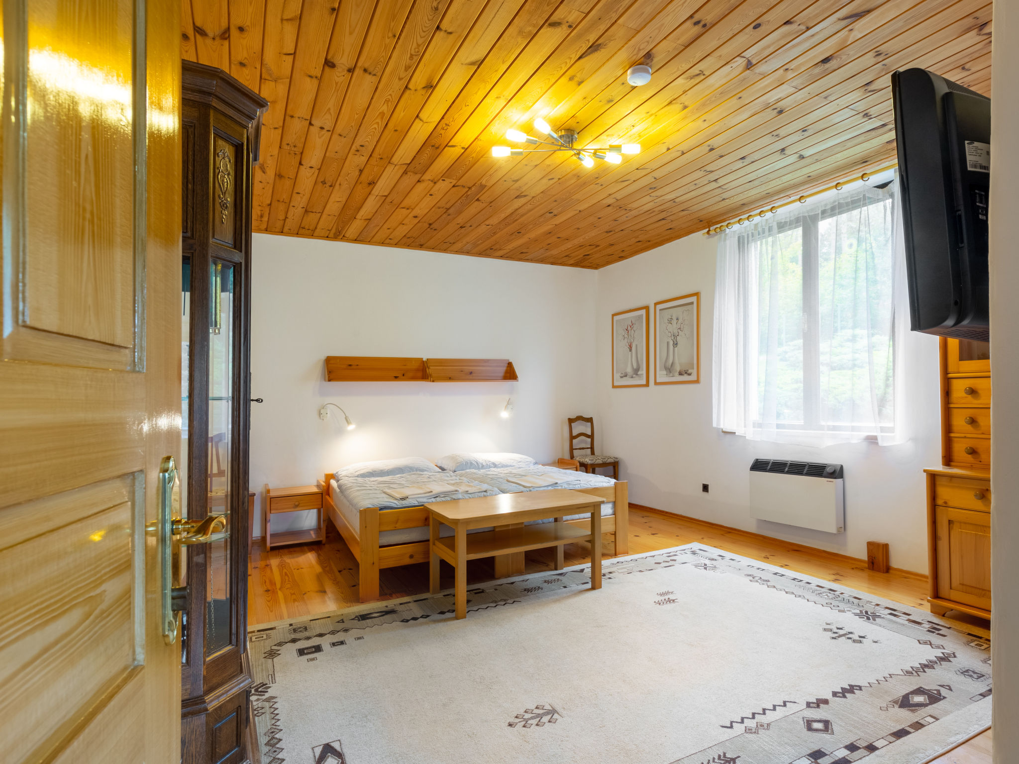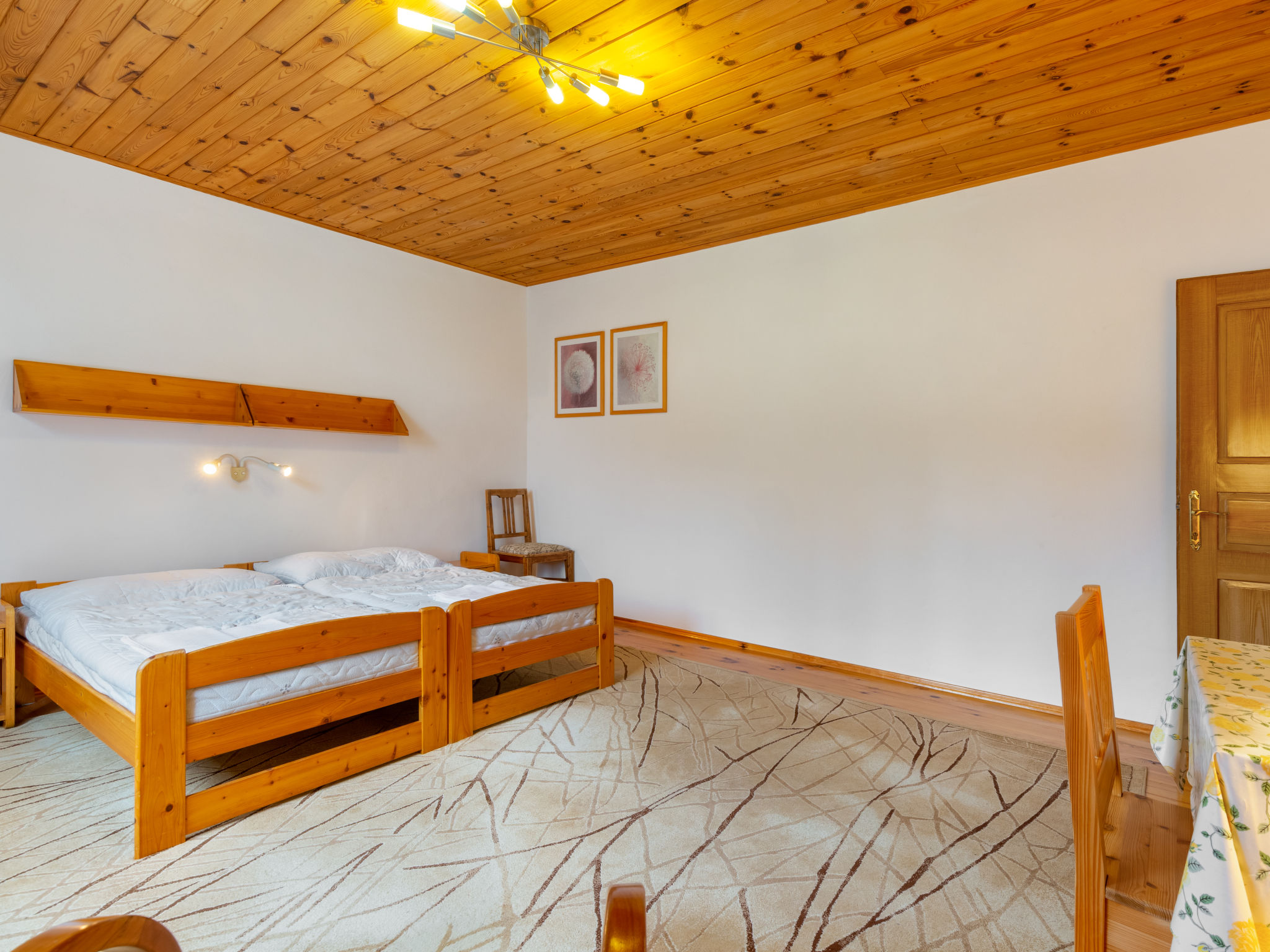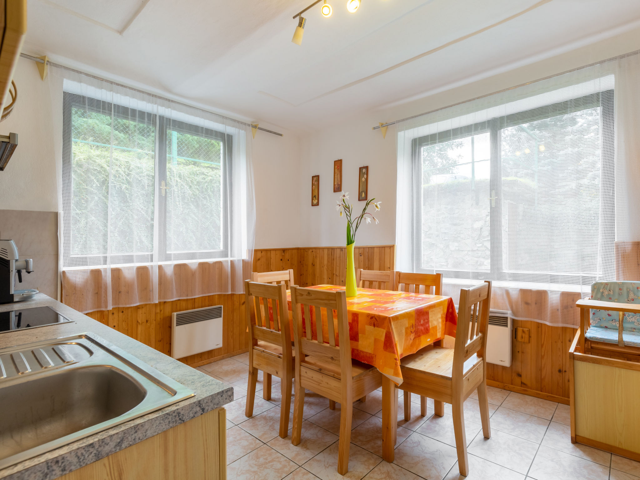 "Malovidy", 8-Zimmer-Haus 280 m2 auf 2 Stockwerken. Komfortabel und modern eingerichtet: Wohnzimmer mit Schwedenofen und Sat-TV (Flachbildschirm), Video, Radio und DVD. Ausgang zur Terrasse, zum Schwimmbad. 2 Zimmer, jedes Zimmer mit 1 Doppelbett. Küche (Backofen, Geschirrspüler, 4 Glaskeramikherd Platten, Mikrowelle, Tiefkühler, Grill) mit Esstisch und Essecke. 2 Bäder/WC, Sauna. Obergeschoss: 4 Zimmer, jedes Zimmer mit 1 Doppelbett und Sat-TV (Flachbildschirm). Spielzimmer. 2 Bäder/WC. E-Heizung, Holzheizung. Terrasse 40 m2. Terrassenmöbel. Schöne Sicht auf das Tal und die Landschaft. Zur Verfügung: Internet (Wireless LAN, gratis). Bitte beachten: geeignet für Familien. Nichtraucher-Haus.
