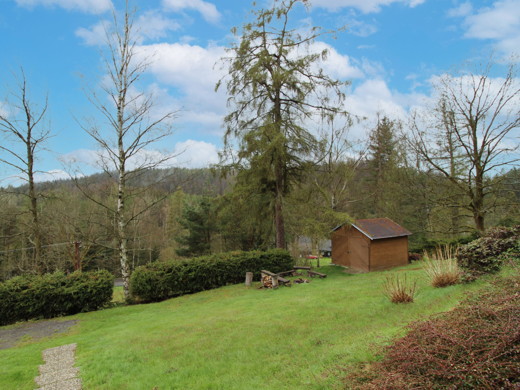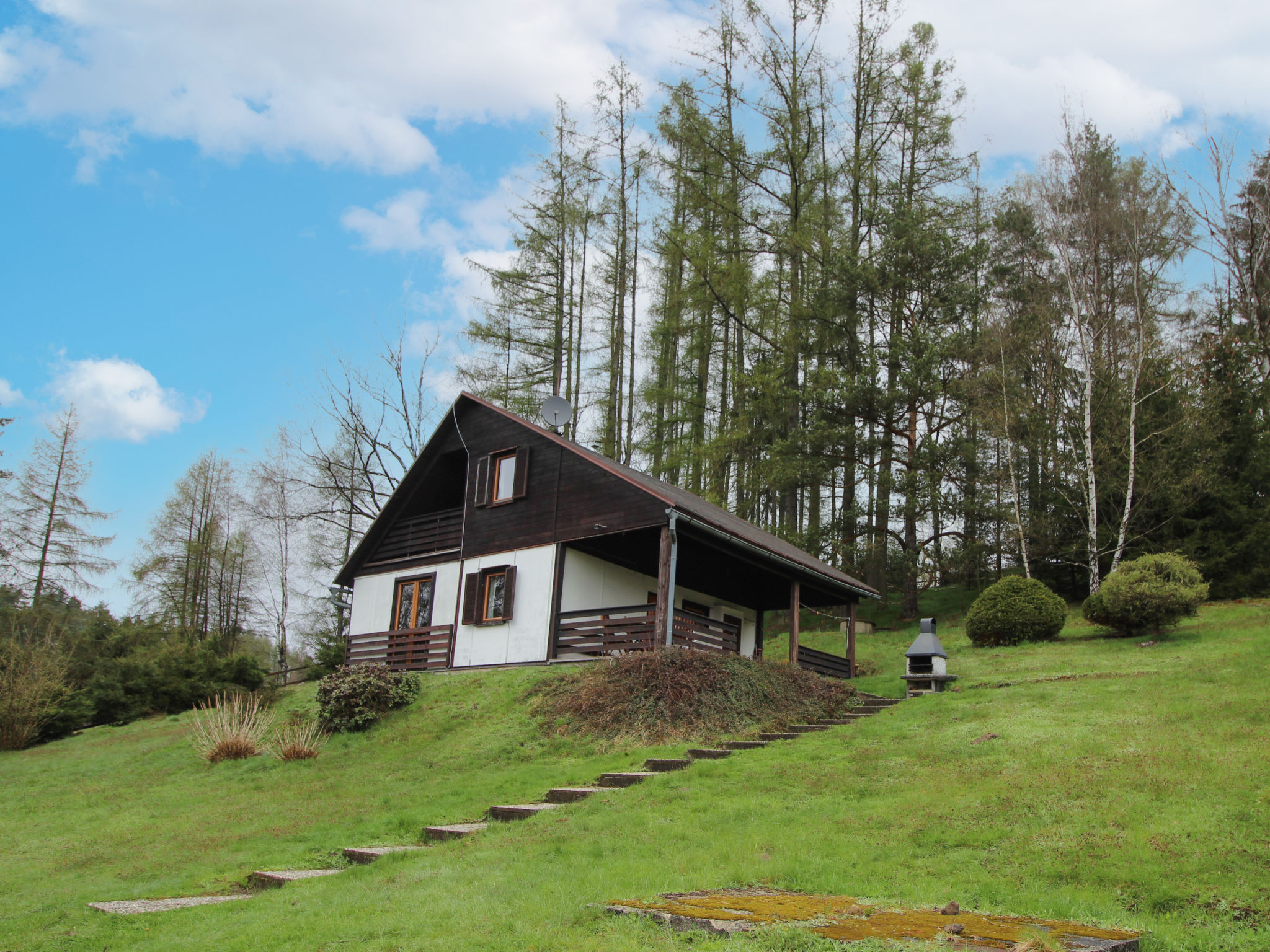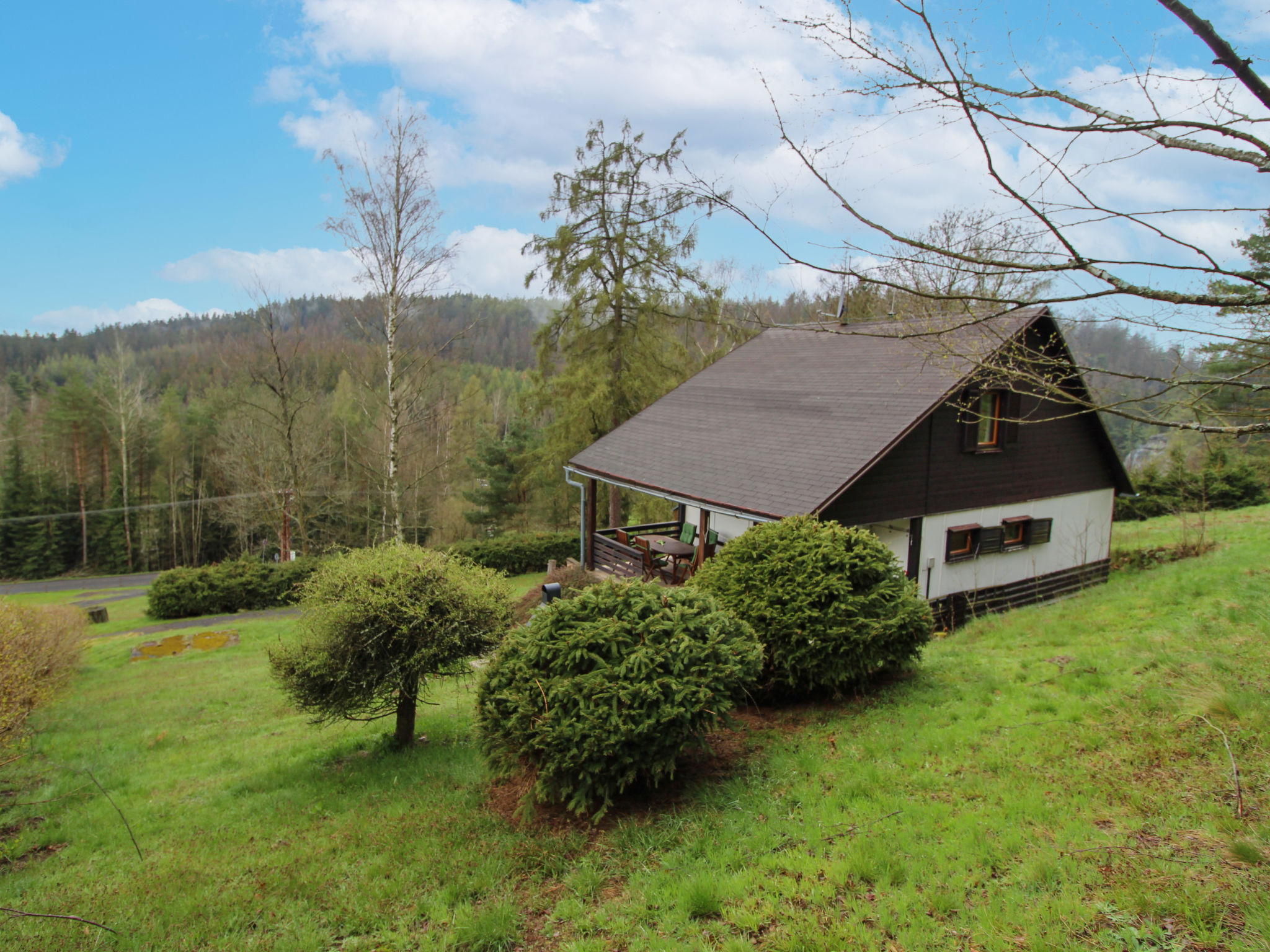 Kyjov 4 km von Krásná Lípa: Dieses Ferienhaus befindet sich im Nationalpark Böhmische Schweiz, in einer ruhigen Gegend in der Nähe von Wald, Felsformationen und einem Damm. Gemütliches, alleinstehendes Landhaus "Kyjov u Krásné Lípy", auf 2 Stockwerken, Baujahr 1986, renoviert im Jahre 2014. Ruhige, erhöhte Lage auf einem Hügel, 100 m vom See, im Grünen. Zur Mitbenutzung: Grundstück 12'000 m2, Wiese. Zur Alleinbenutzung: Terrasse, Grill, Feuerstelle. Im Hause: Wireless LAN, Waschmaschine. Parkplatz (für 2 Autos) auf dem Grundstück. Lebensmittelgeschäft 4 km, Restaurant 500 m, Strandbad 100 m. Wanderwege ab Haus, Radweg 10 m. Nahe gelegene Sehenswürdigkeiten: Kyjovské údolí 500 m, Rozhledna Vlčí Hora 4 km, Jetřichovické stěny 9 km, Pravčická brána 20 km, Soutěsky Hřensko 25 km. Bekannte Seen in der Umgebung sind gut erreichbar: Kyjovská přehrada 100 m.