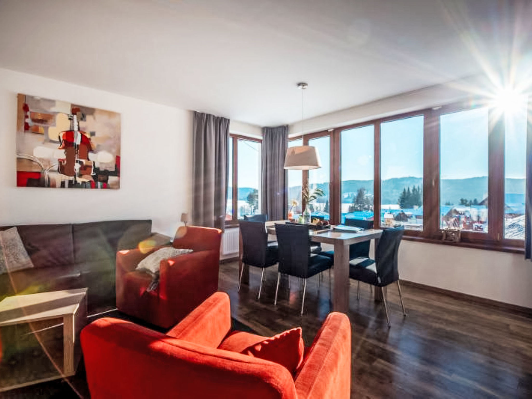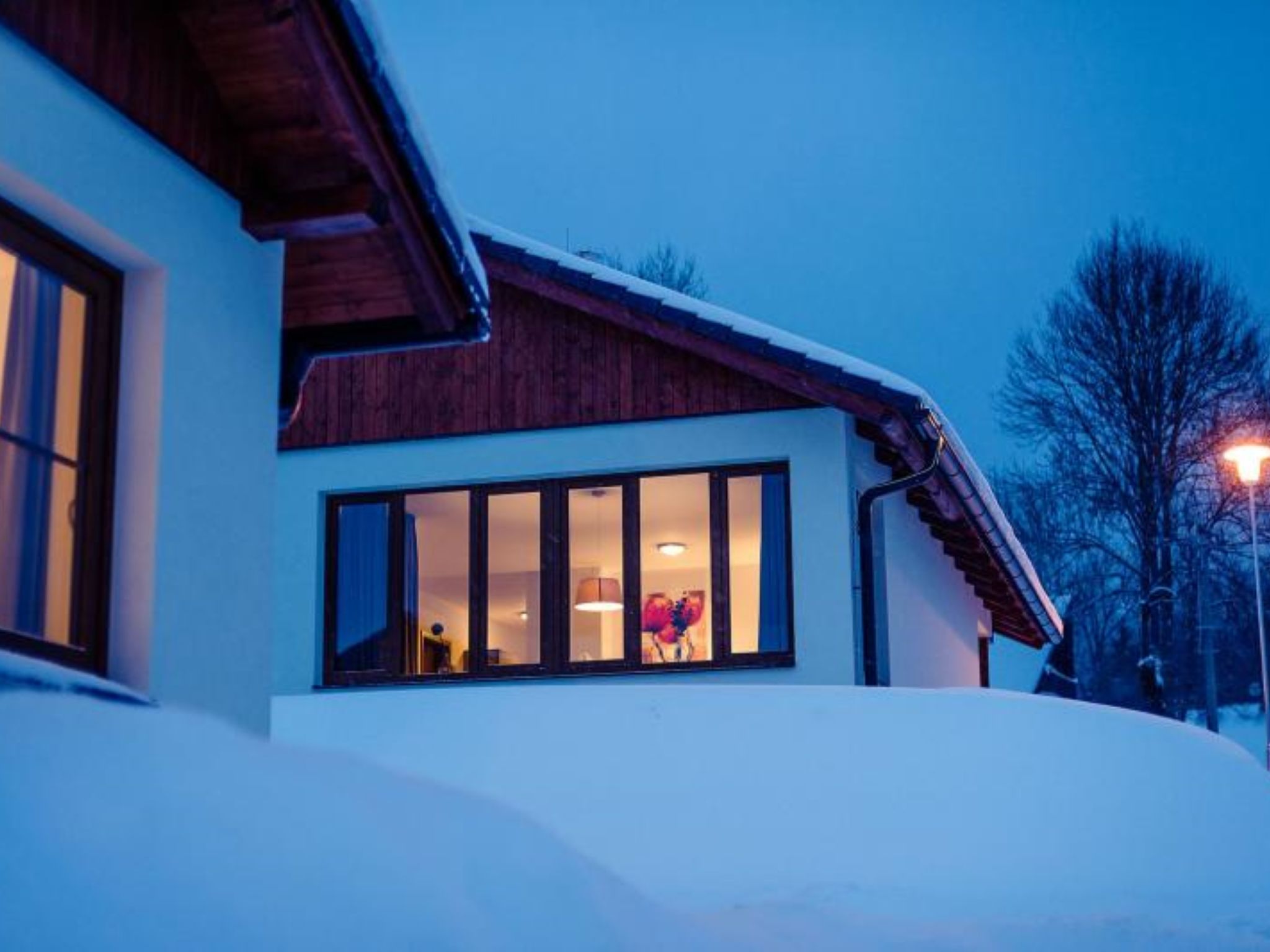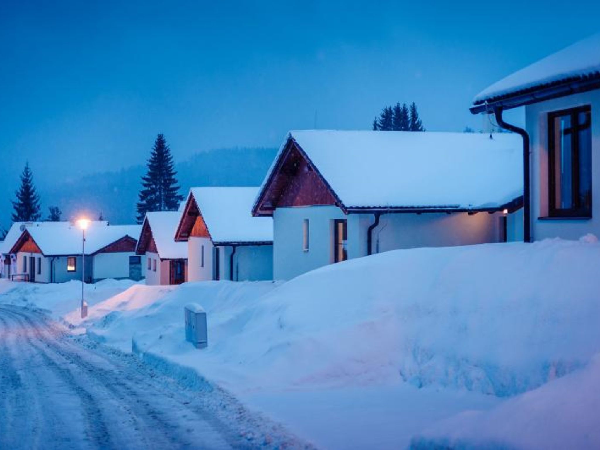 Kinderfreundliches, modernes Feriendorf "Residence Lipno". 40 Häuser im Ferienresort. Am Ortsrand, 1.5 km vom Zentrum von Lipno nad Vltavou, sonnige, erhöhte Lage, 250 m vom See, 2 km vom Skigebiet. Zur Mitbenutzung: Grundstück. Kinderspielplatz (Rutschbahn, Schaukel). Zur Alleinbenutzung: Garten. Terrasse, Gartenmöbel. In der Anlage: Empfang, Einstellraum für Fahrräder, Waschmaschine, Wäschetrockner (zur Mitbenutzung, extra). Parkplatz beim Haus. Lebensmittelgeschäft 1.2 km, Restaurant 200 m, Grasstrand 250 m, Hallenbad 2 km. Sporthafen 1.5 km, Wanderwege ab Haus 10 m, Radweg 200 m, Sessellift 2 km, Skisportanlagen 2 km, Skibushaltestelle 200 m, Skischule 2 km. Nahe gelegene Sehenswürdigkeiten: Aquaworld Lipno 2 km, Hopsárium 2 km, Bobová dráha 2.5 km, Stezka korunami stromů 3.5 km, Království Lesa 3.5 km. Bekannte Skigebiete sind gut erreichbar: Skiareál Lipno 2 km. Alle Häuser/Wohnungen sind individuell eingerichtet. Marina Lipno (1,5 km) mit Yachthafen und Indoor-Wasserwelt (nicht in Betrieb vom 1.11.-30.11.). Golfplatz und Sessellift zum Skizentrum Kramolin 1 km (5 Skipisten, Snowboardpark, 50 km Langlaufloipen). Yacht-, Ski- und Fahrradverleih.