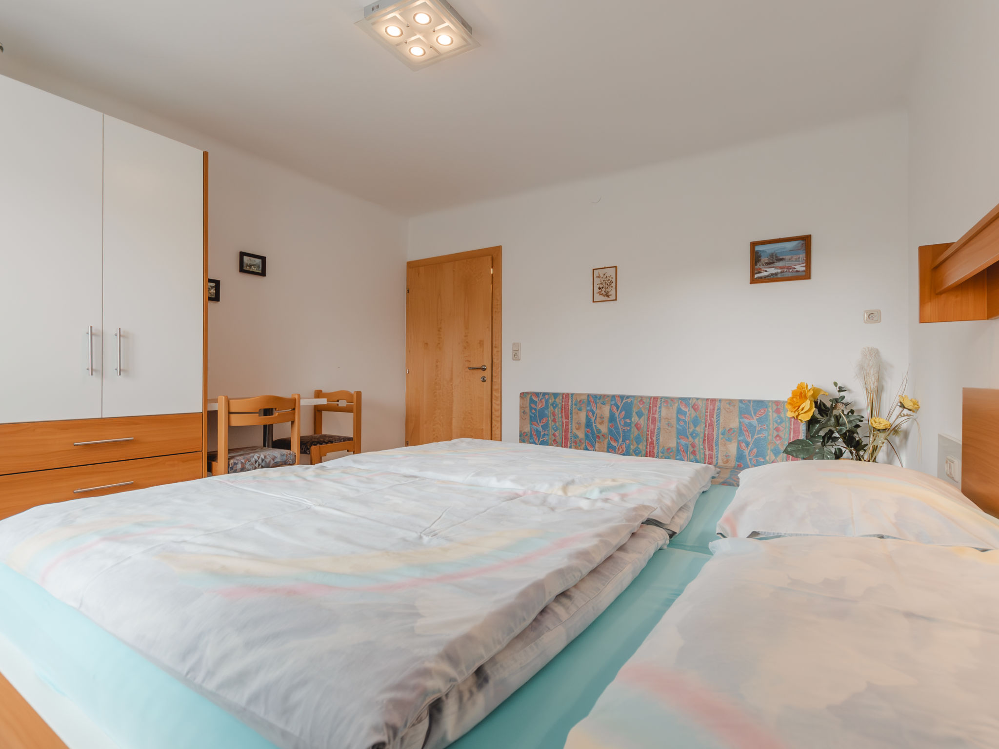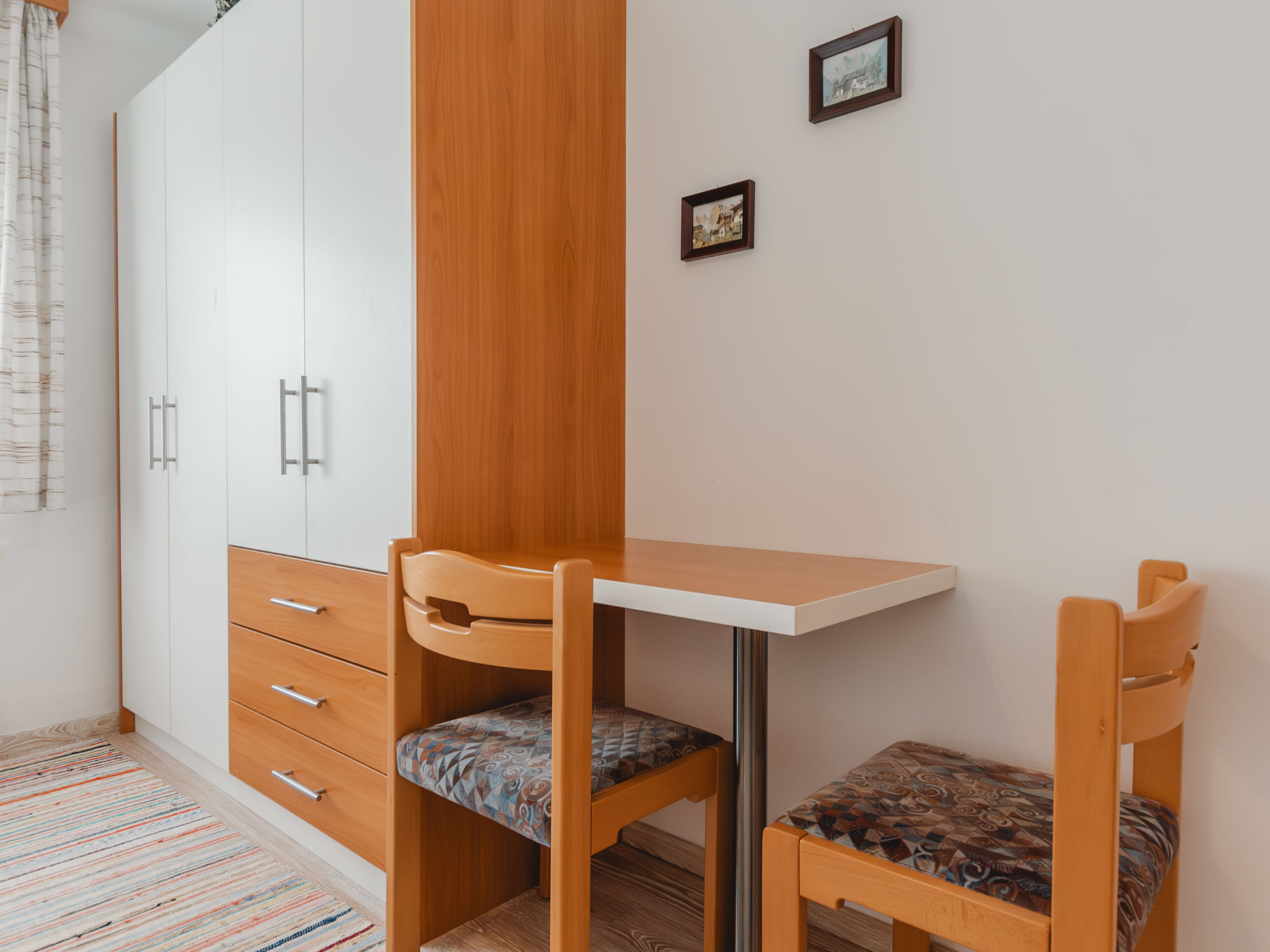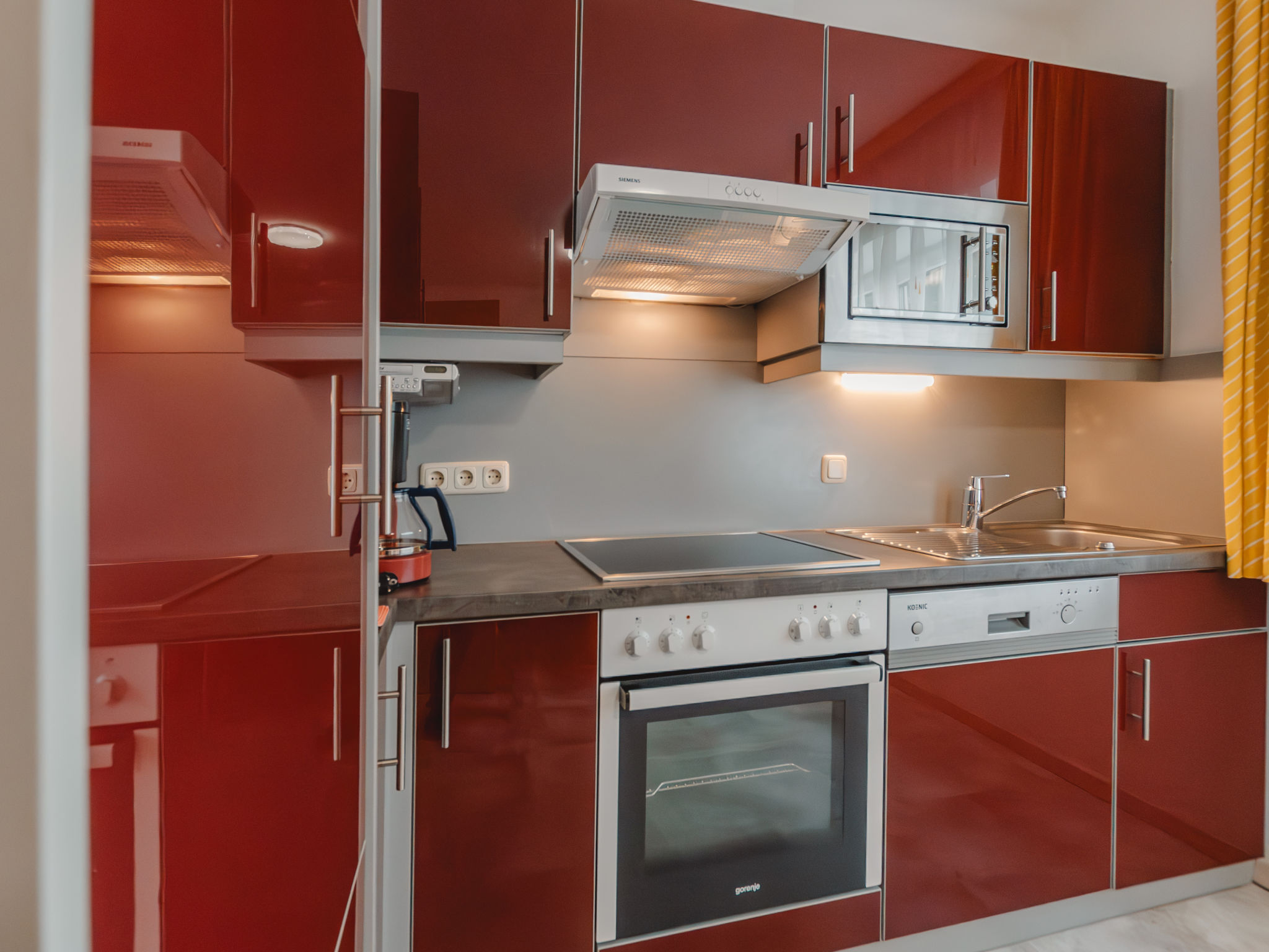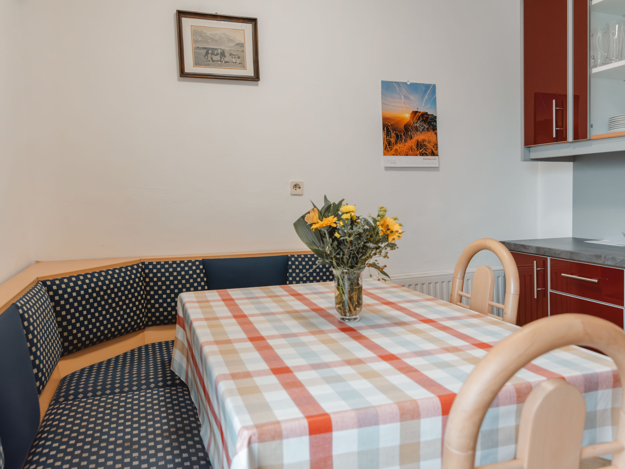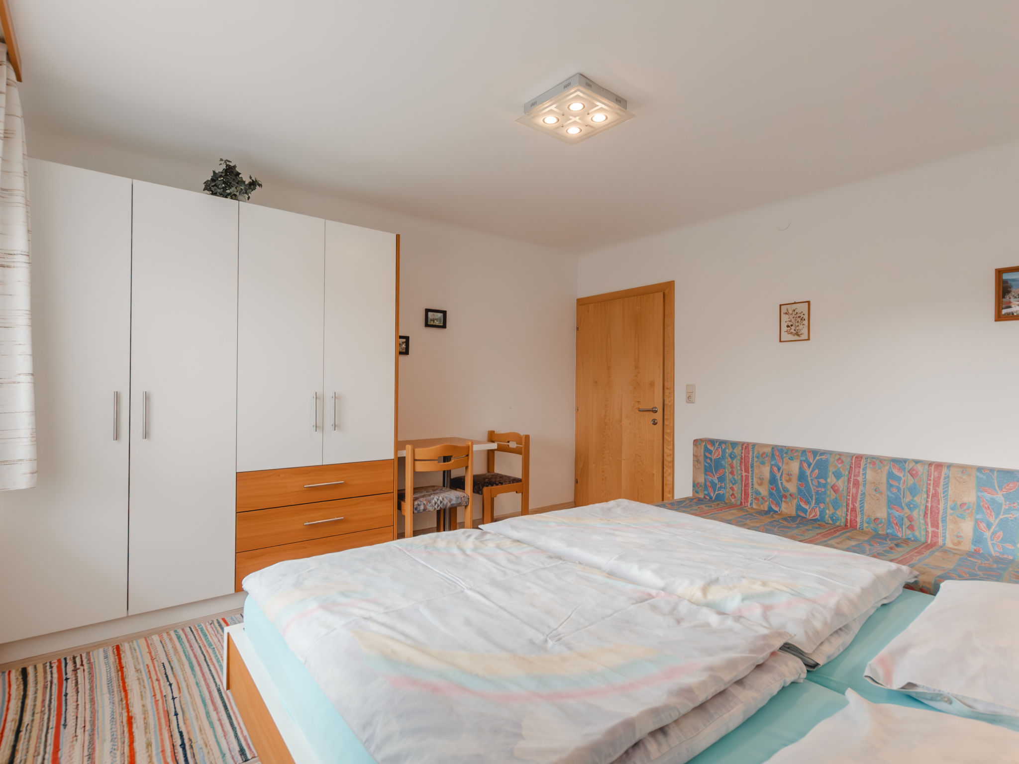 3-Zimmer-Wohnung, Erdgeschoss, ca. 50 m². Wohnküche (4 Ceranfelder, Backofen, Mikrowelle, Geschirrspüler, Kühlschrank, Kaffeemaschine) mit Essplatz (Eckbank). 2 Doppelzimmer. Dusche. Sep.WC. 50628-000115-2020