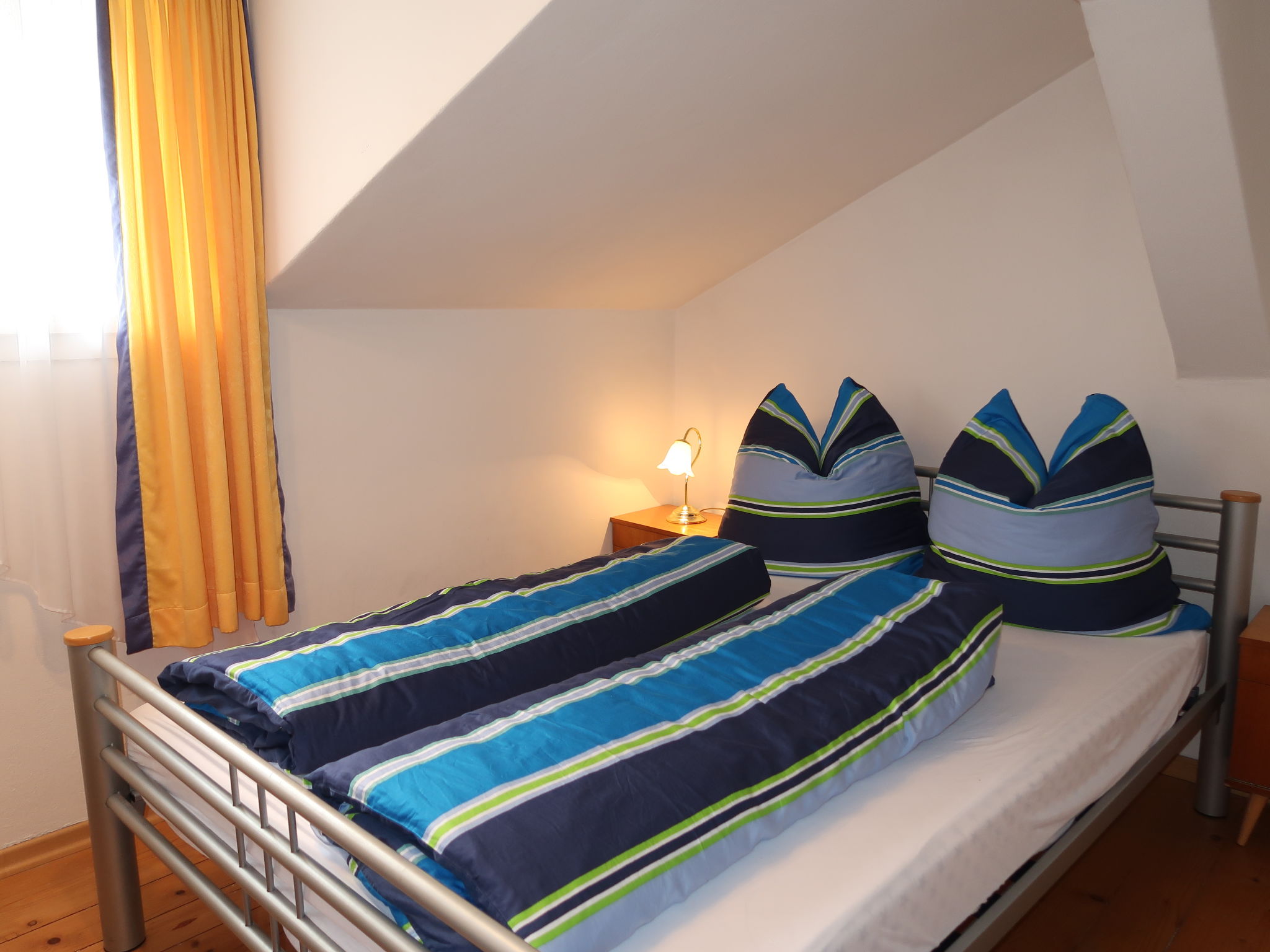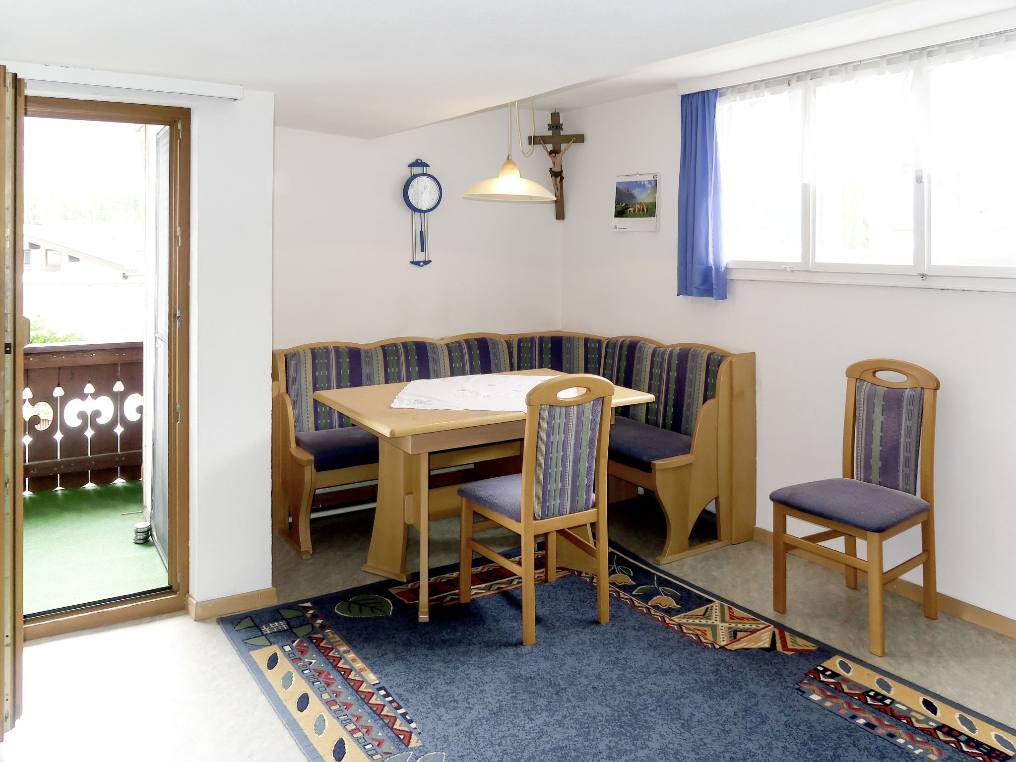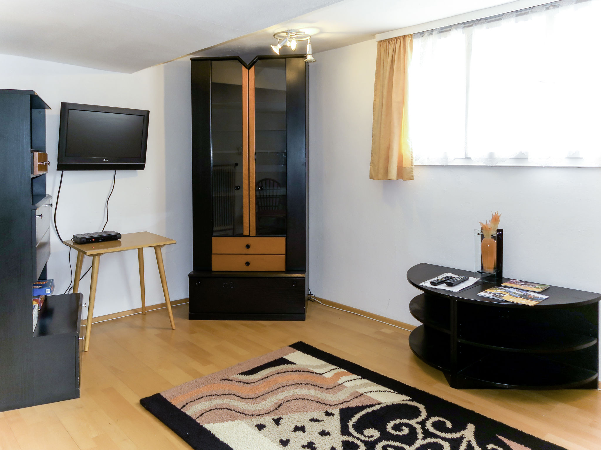 "Huber (GIT110)", 4-Zimmer-Wohnung 60 m2 im 2. Stock. Einfach eingerichtet: Wohnzimmer, Deckenhöhe 195 cm, niedrige Türrahmen, Höhe 175 cm mit Sat-TV. Ausgang zum Balkon. 1 abgeschrägtes Zimmer mit 1 franz. Bett. 1 Doppelzimmer. 1 Zimmer mit 1 Bett. Küche (Backofen, Geschirrspüler, 4 Glaskeramikherd Platten, Toaster, Wasserkocher, elektrische Kaffeemaschine) mit Essecke. Ausgang zum Balkon. Dusche/WC. Ölheizung. Holzböden. Balkon. Balkonmöbel, Abstellkammer. Zur Verfügung: Internet (Wireless LAN, gratis). Parkplatz (1 Auto). 1 Haustier/Hund erlaubt.