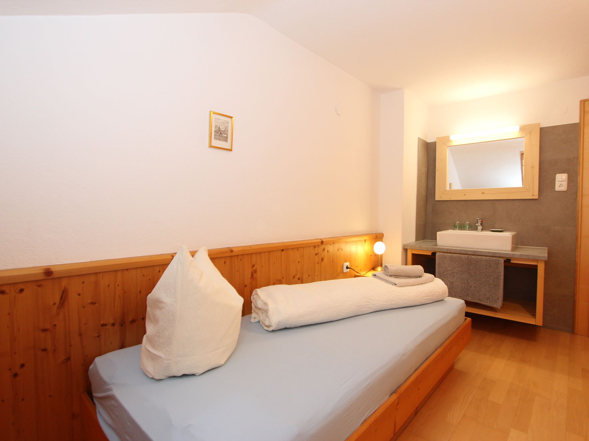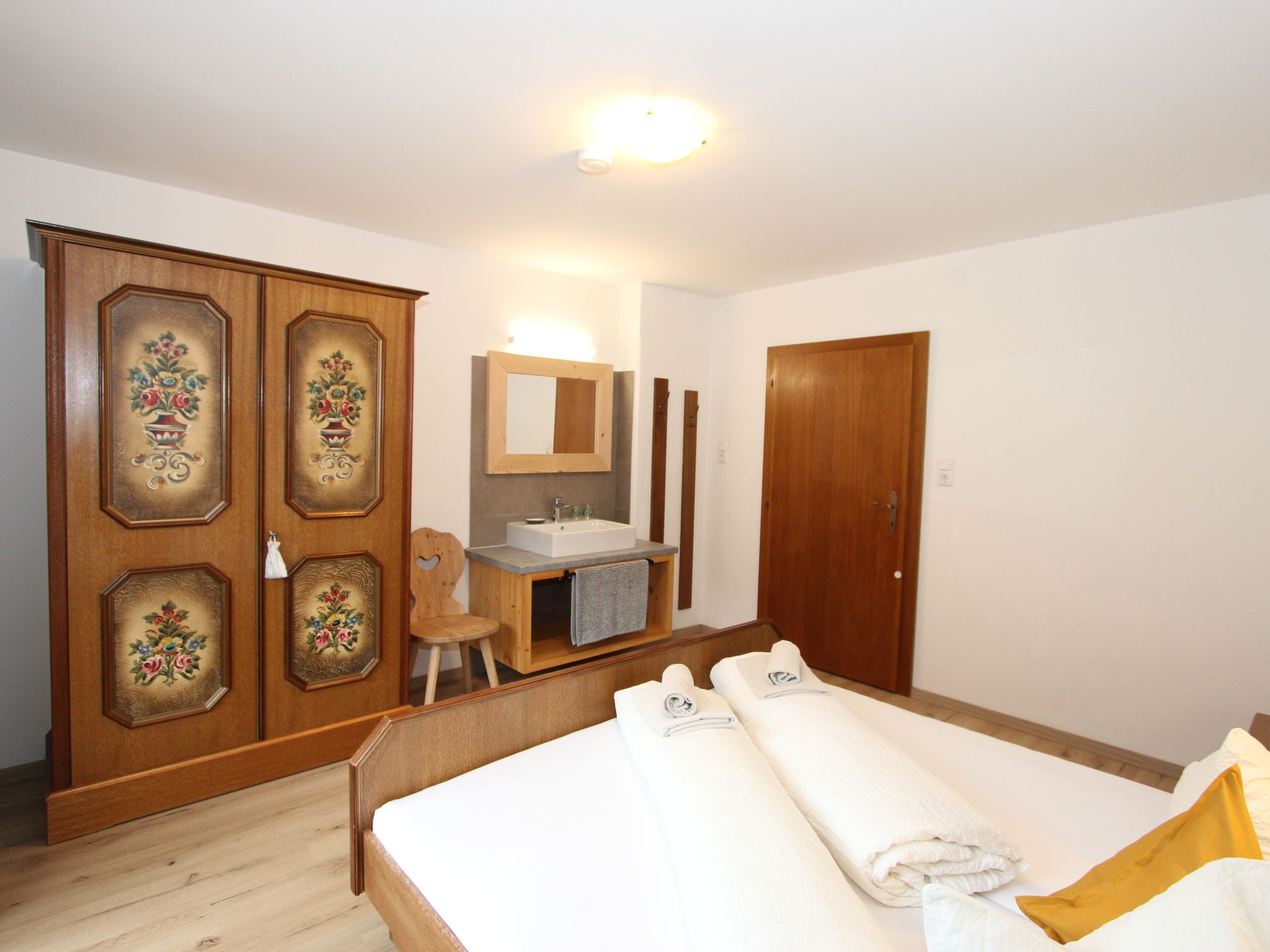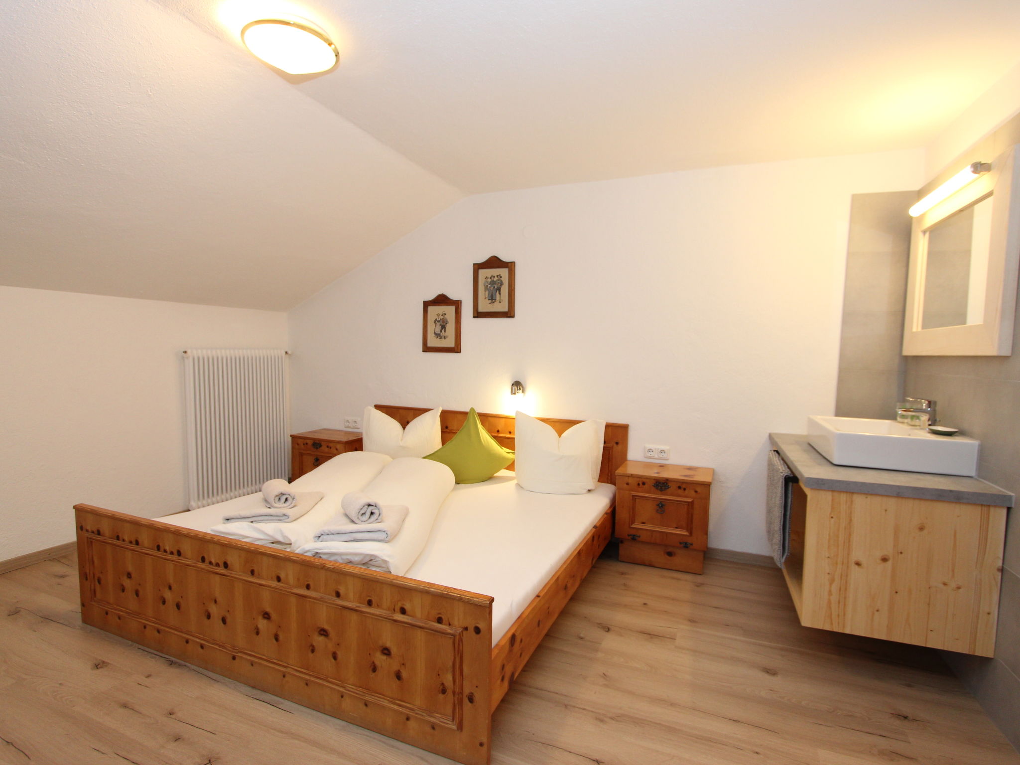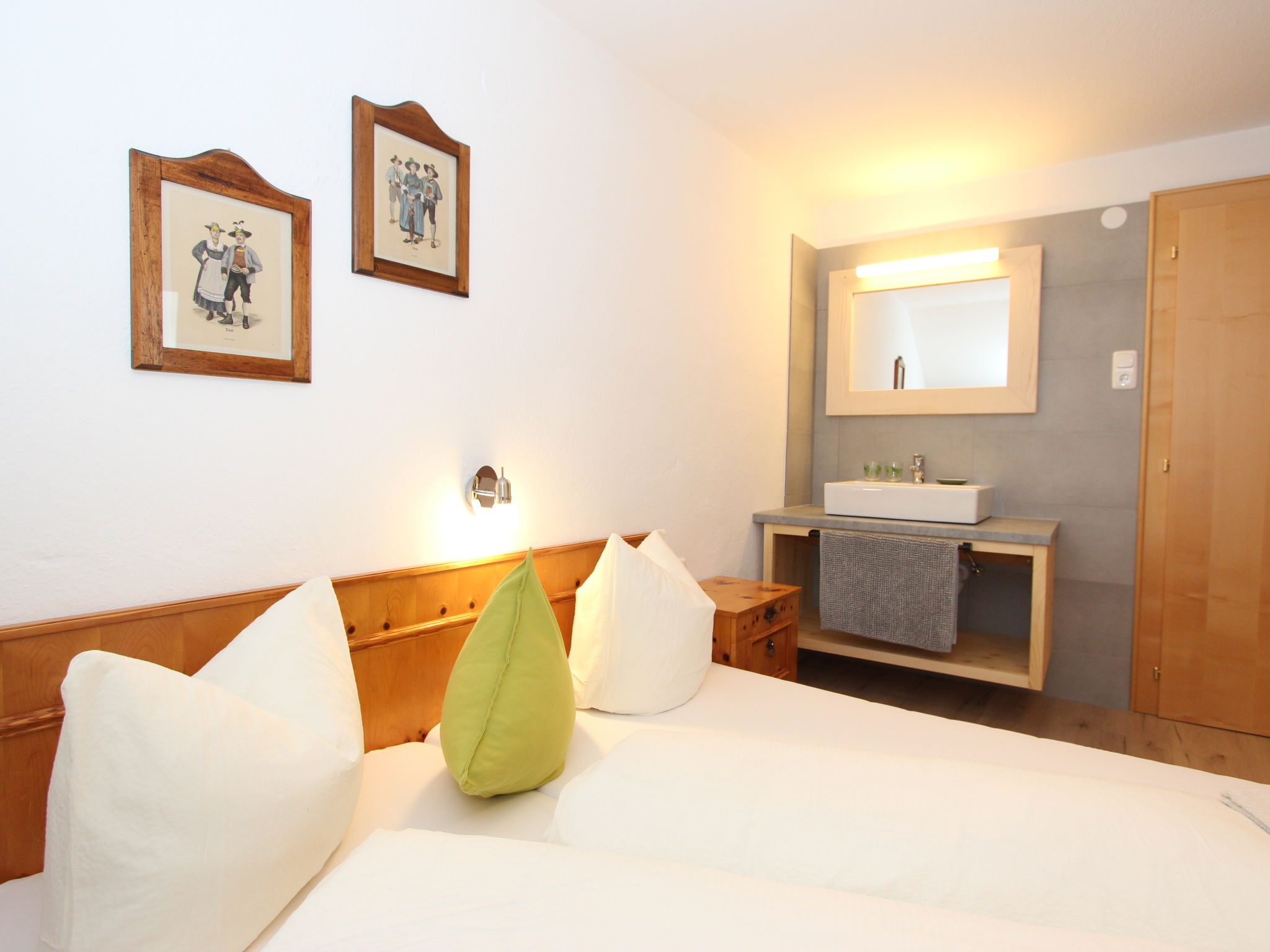 11-Zimmer-Haus 300 m2 auf 3 Stockwerken. Geräumig, teilweise renoviert im Jahre 2019, gemütlich eingerichtet: Eingang. Wohnzimmer. Esszimmer. Wohnzimmer mit Sat-TV (Flachbildschirm). Küche (Backofen, Geschirrspüler, 4 Glaskeramikherd Platten, Mikrowelle) mit Esstisch. Dusche, sep. WC. Obergeschoss: 4 Doppelzimmer, jedes Zimmer mit Waschbecken. Ausgang zum Balkon. Dusche, sep. WC. 2. Obergeschoss: 2 Doppelzimmer, jedes Zimmer mit Waschbecken. Ausgang zum Balkon. 1 Doppelzimmer mit Waschbecken. 1 abgeschrägtes grosses Zimmer mit 1 Bett, 1 franz. Bett und Waschbecken. Dusche, sep. WC. Das Wohnzimmer ist eine Bauernstube. 2 grosse Balkone, Terrasse. Terrassenmöbel, Gartengrill, Liegestühle. Schöne Sicht auf die Berge und die Landschaft. Zur Verfügung: Internet (Wireless LAN). Bitte beachten: geeignet für Familien. Nichtraucher-Haus.