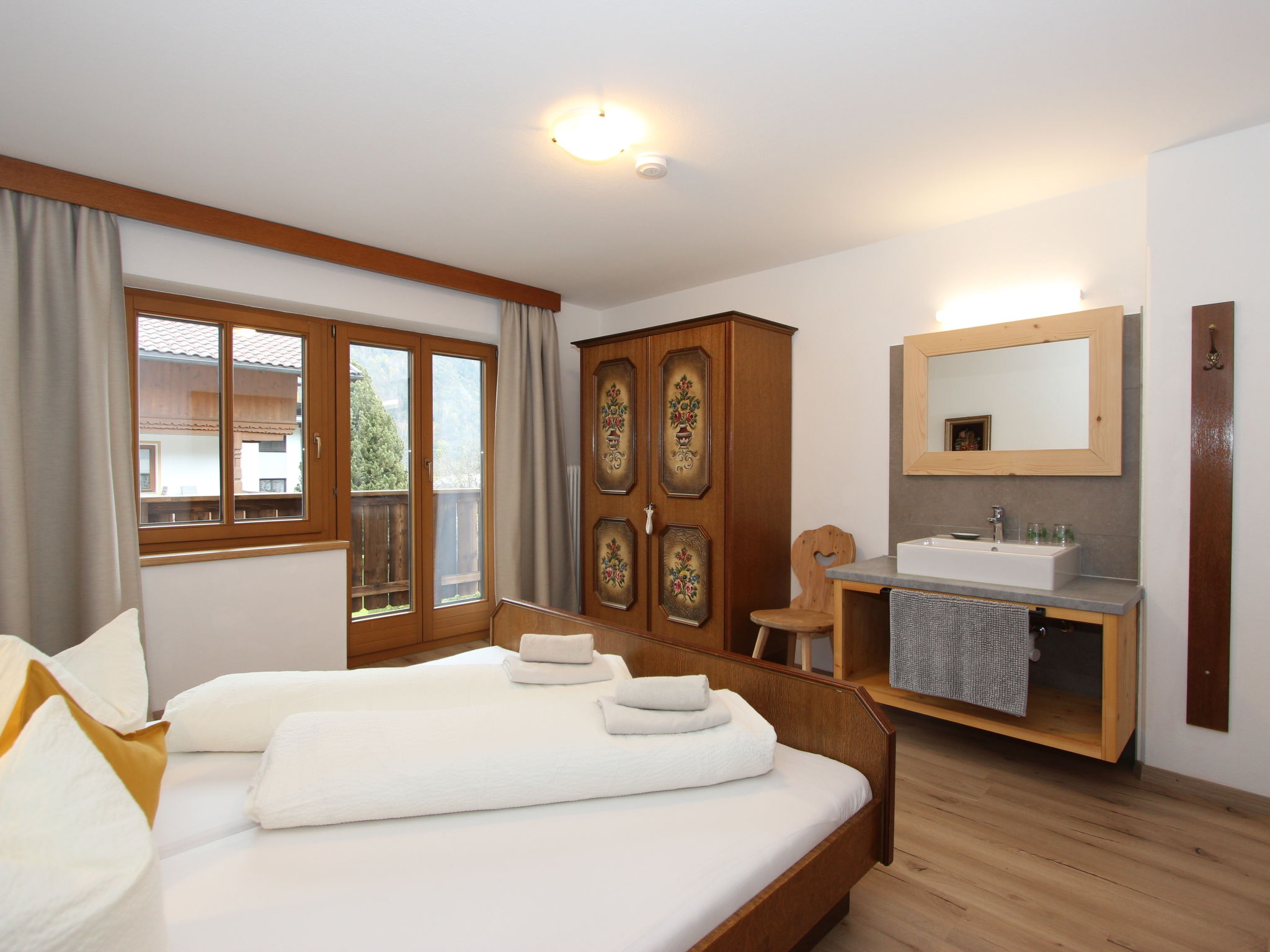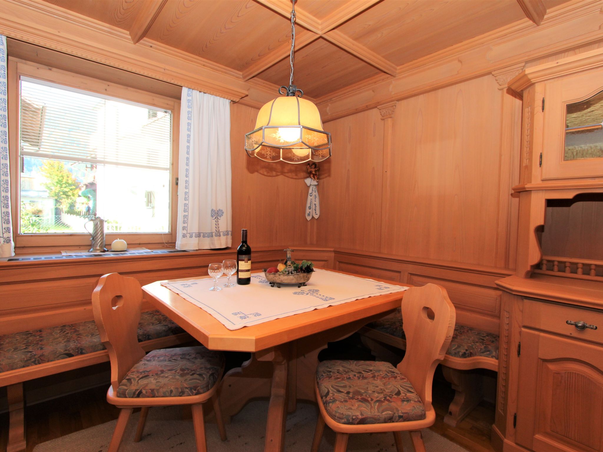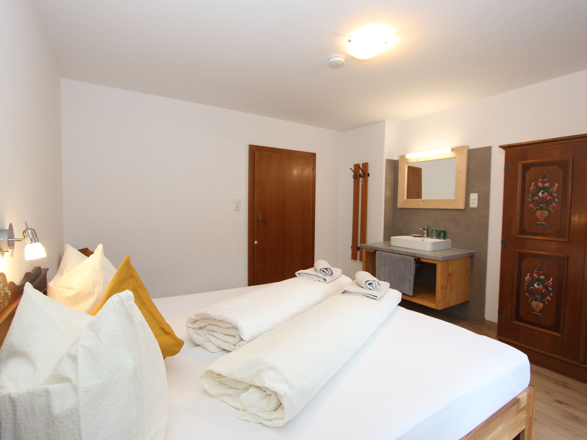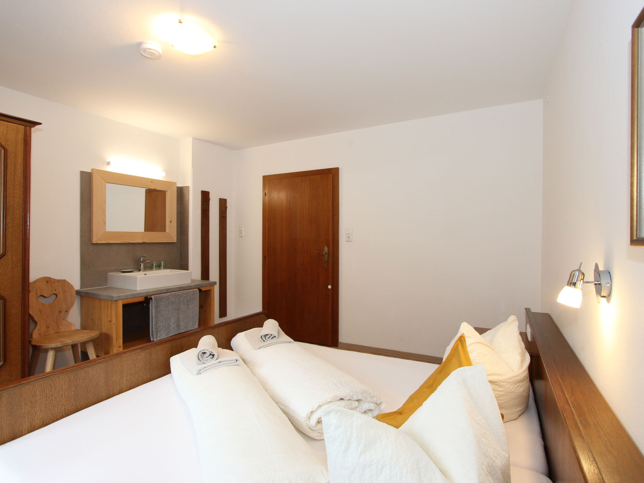 11-Zimmer-Haus 300 m2 auf 3 Stockwerken. Geräumig, teilweise renoviert im Jahre 2019, gemütlich eingerichtet: Eingang. Wohnzimmer. Esszimmer. Wohnzimmer mit Sat-TV (Flachbildschirm). Küche (Backofen, Geschirrspüler, 4 Glaskeramikherd Platten, Mikrowelle) mit Esstisch. Dusche, sep. WC. Obergeschoss: 4 Doppelzimmer, jedes Zimmer mit Waschbecken. Ausgang zum Balkon. Dusche, sep. WC. 2. Obergeschoss: 2 Doppelzimmer, jedes Zimmer mit Waschbecken. Ausgang zum Balkon. 1 Doppelzimmer mit Waschbecken. 1 abgeschrägtes grosses Zimmer mit 1 Bett, 1 franz. Bett und Waschbecken. Dusche, sep. WC. Das Wohnzimmer ist eine Bauernstube. 2 grosse Balkone, Terrasse. Terrassenmöbel, Gartengrill, Liegestühle. Schöne Sicht auf die Berge und die Landschaft. Zur Verfügung: Internet (Wireless LAN). Bitte beachten: geeignet für Familien. Nichtraucher-Haus.