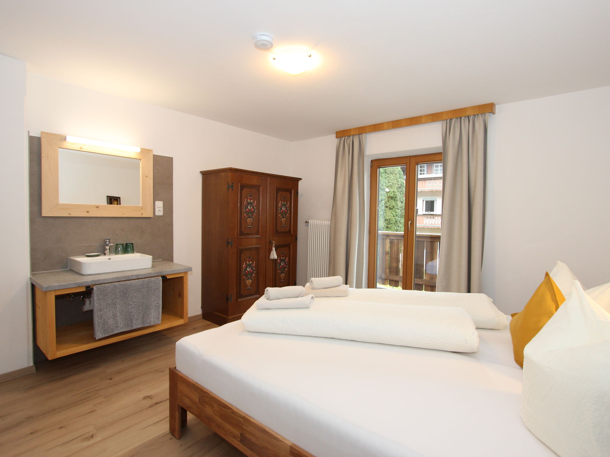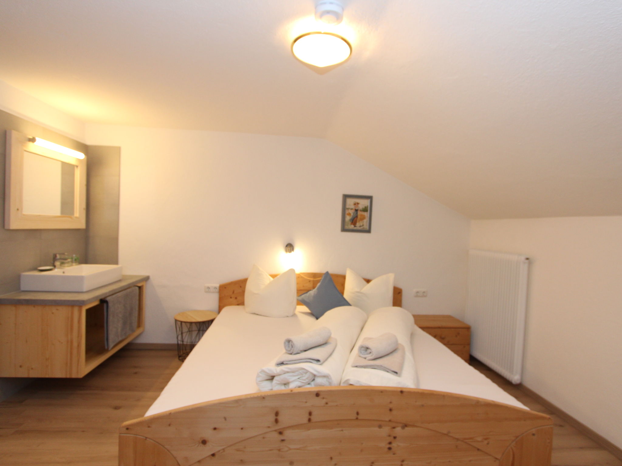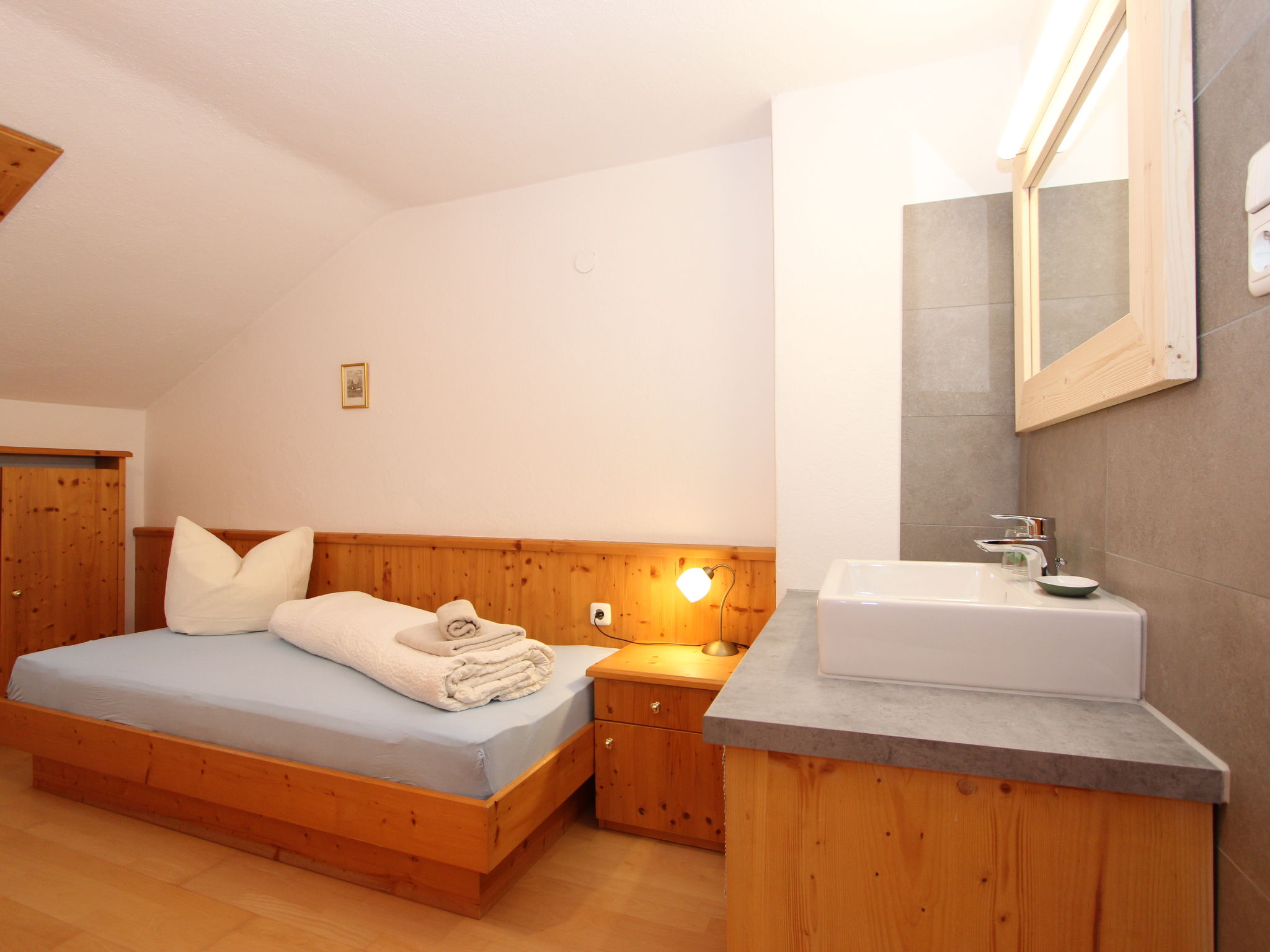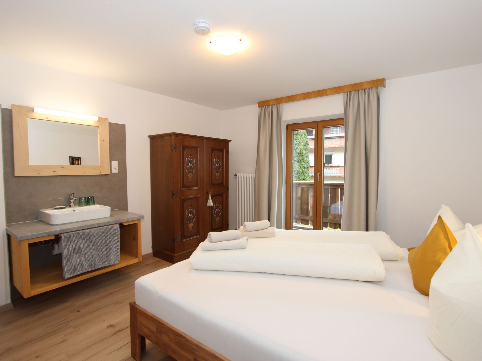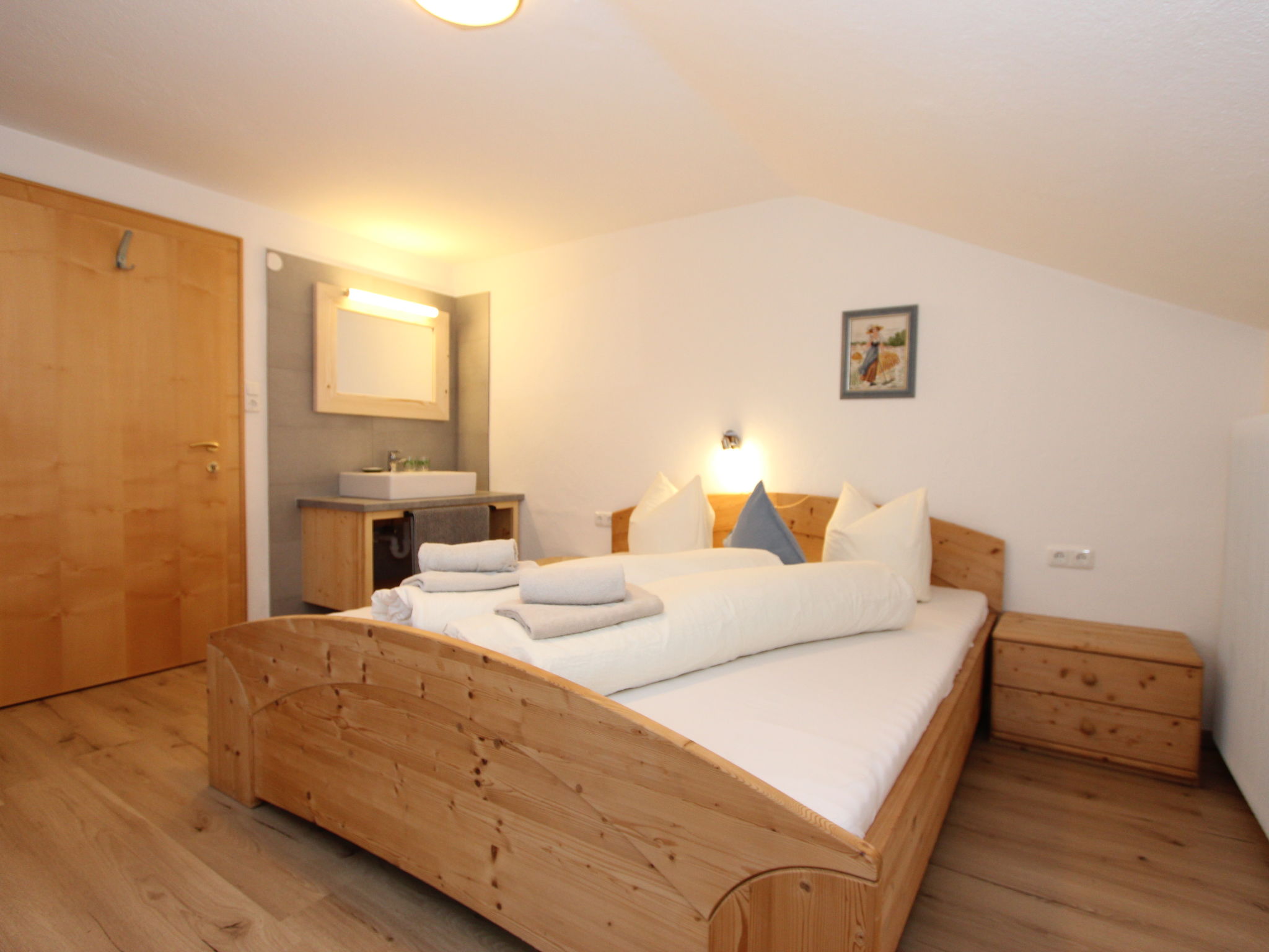 11-Zimmer-Haus 300 m2 auf 3 Stockwerken. Geräumig, teilweise renoviert im Jahre 2019, gemütlich eingerichtet: Eingang. Wohnzimmer. Esszimmer. Wohnzimmer mit Sat-TV (Flachbildschirm). Küche (Backofen, Geschirrspüler, 4 Glaskeramikherd Platten, Mikrowelle) mit Esstisch. Dusche, sep. WC. Obergeschoss: 4 Doppelzimmer, jedes Zimmer mit Waschbecken. Ausgang zum Balkon. Dusche, sep. WC. 2. Obergeschoss: 2 Doppelzimmer, jedes Zimmer mit Waschbecken. Ausgang zum Balkon. 1 Doppelzimmer mit Waschbecken. 1 abgeschrägtes grosses Zimmer mit 1 Bett, 1 franz. Bett und Waschbecken. Dusche, sep. WC. Das Wohnzimmer ist eine Bauernstube. 2 grosse Balkone, Terrasse. Terrassenmöbel, Gartengrill, Liegestühle. Schöne Sicht auf die Berge und die Landschaft. Zur Verfügung: Internet (Wireless LAN). Bitte beachten: geeignet für Familien. Nichtraucher-Haus.