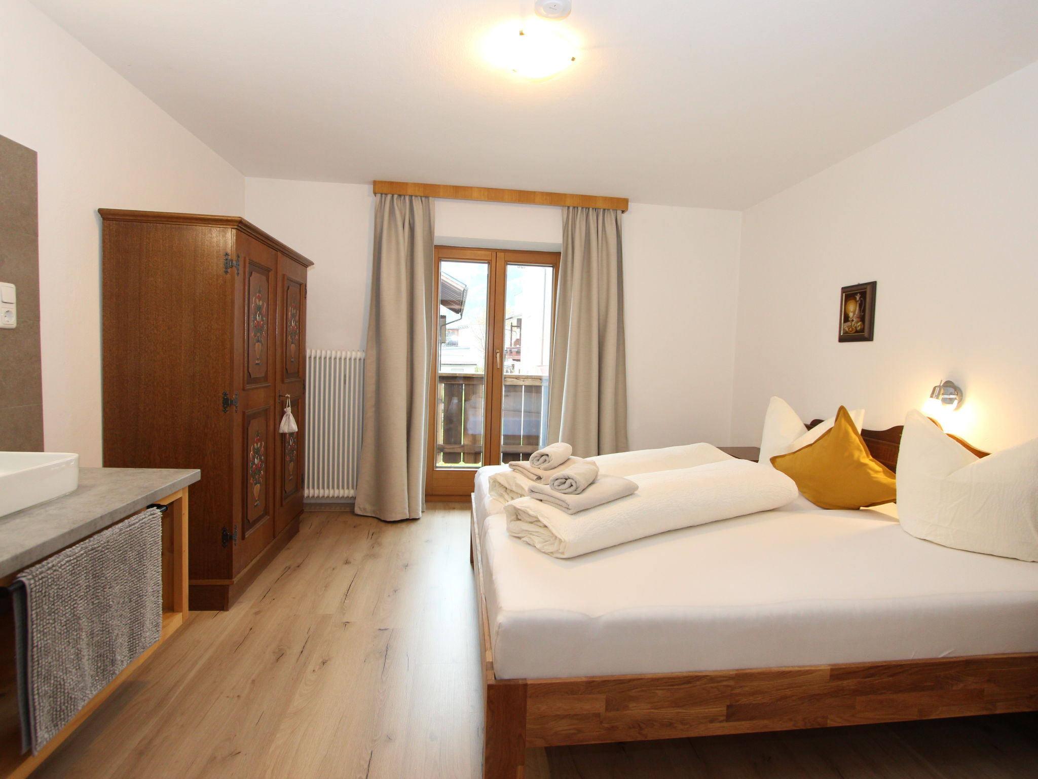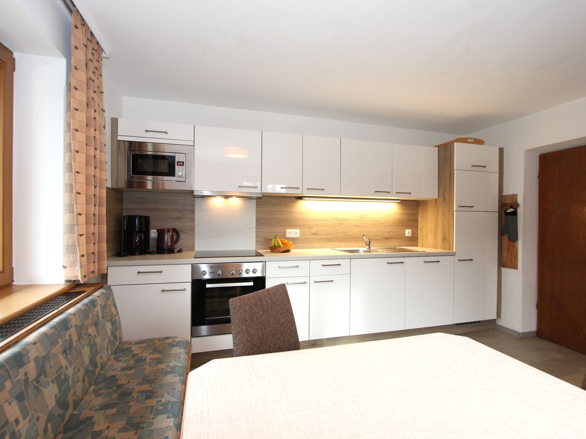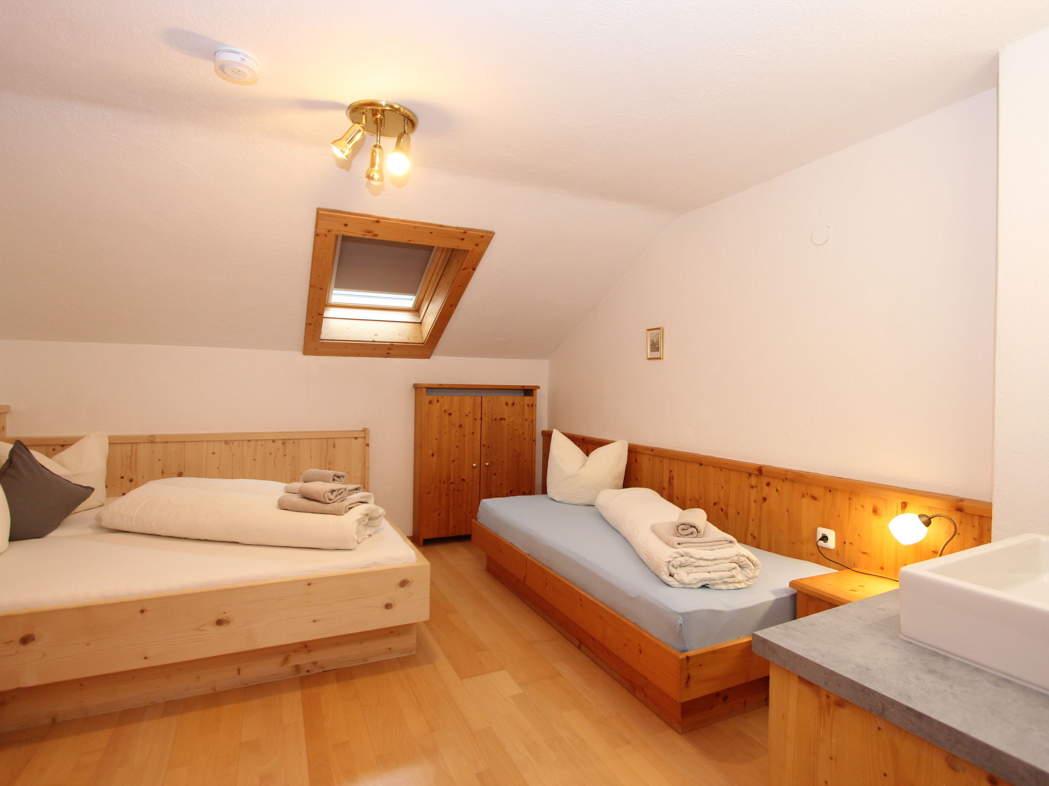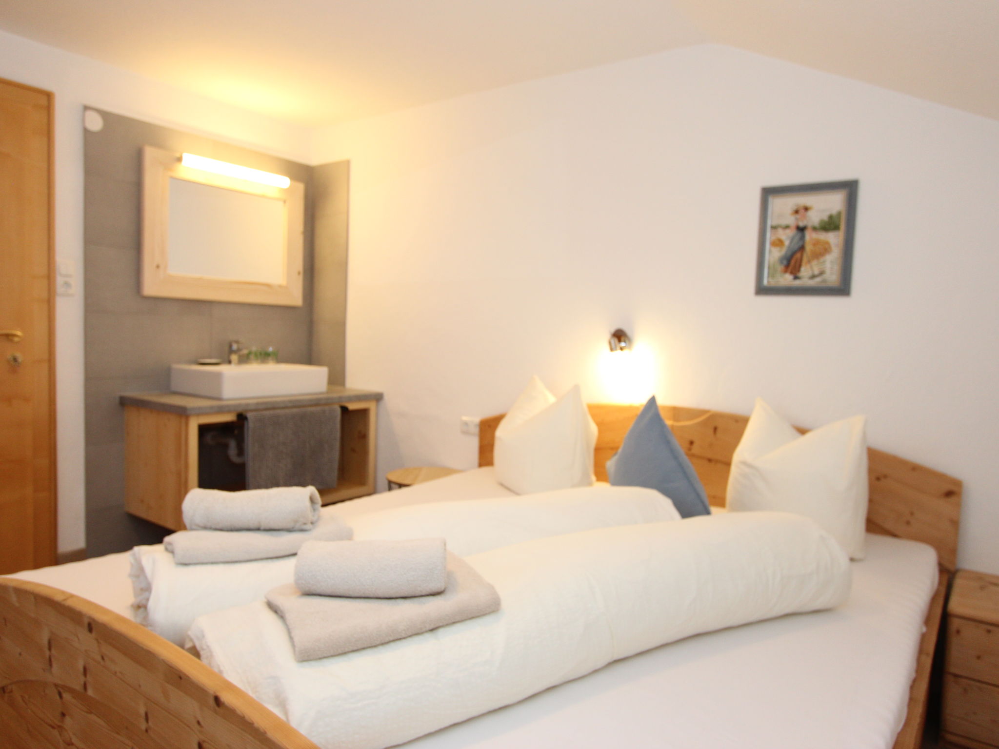 11-Zimmer-Haus 300 m2 auf 3 Stockwerken. Geräumig, teilweise renoviert im Jahre 2019, gemütlich eingerichtet: Eingang. Wohnzimmer. Esszimmer. Wohnzimmer mit Sat-TV (Flachbildschirm). Küche (Backofen, Geschirrspüler, 4 Glaskeramikherd Platten, Mikrowelle) mit Esstisch. Dusche, sep. WC. Obergeschoss: 4 Doppelzimmer, jedes Zimmer mit Waschbecken. Ausgang zum Balkon. Dusche, sep. WC. 2. Obergeschoss: 2 Doppelzimmer, jedes Zimmer mit Waschbecken. Ausgang zum Balkon. 1 Doppelzimmer mit Waschbecken. 1 abgeschrägtes grosses Zimmer mit 1 Bett, 1 franz. Bett und Waschbecken. Dusche, sep. WC. Das Wohnzimmer ist eine Bauernstube. 2 grosse Balkone, Terrasse. Terrassenmöbel, Gartengrill, Liegestühle. Schöne Sicht auf die Berge und die Landschaft. Zur Verfügung: Internet (Wireless LAN). Bitte beachten: geeignet für Familien. Nichtraucher-Haus.