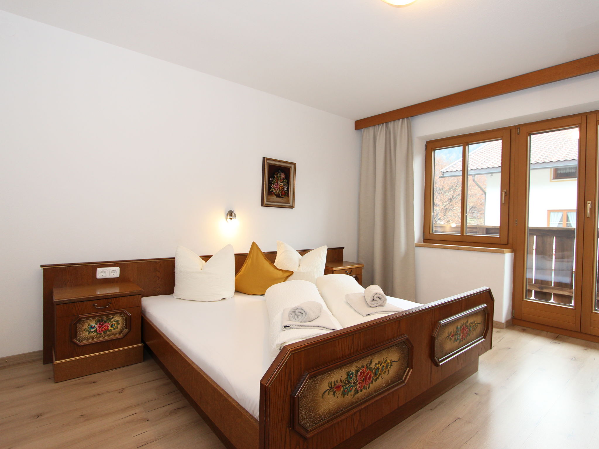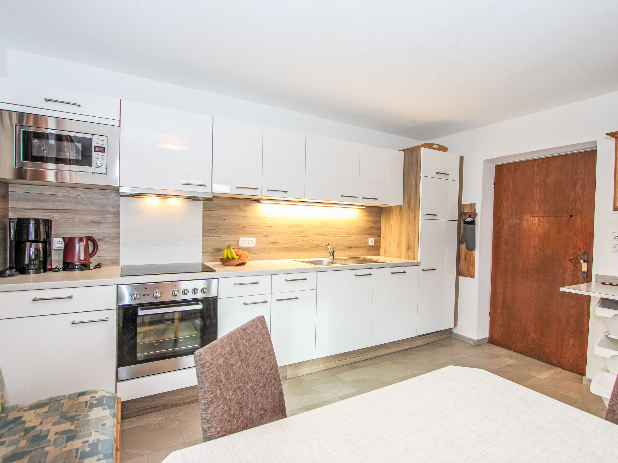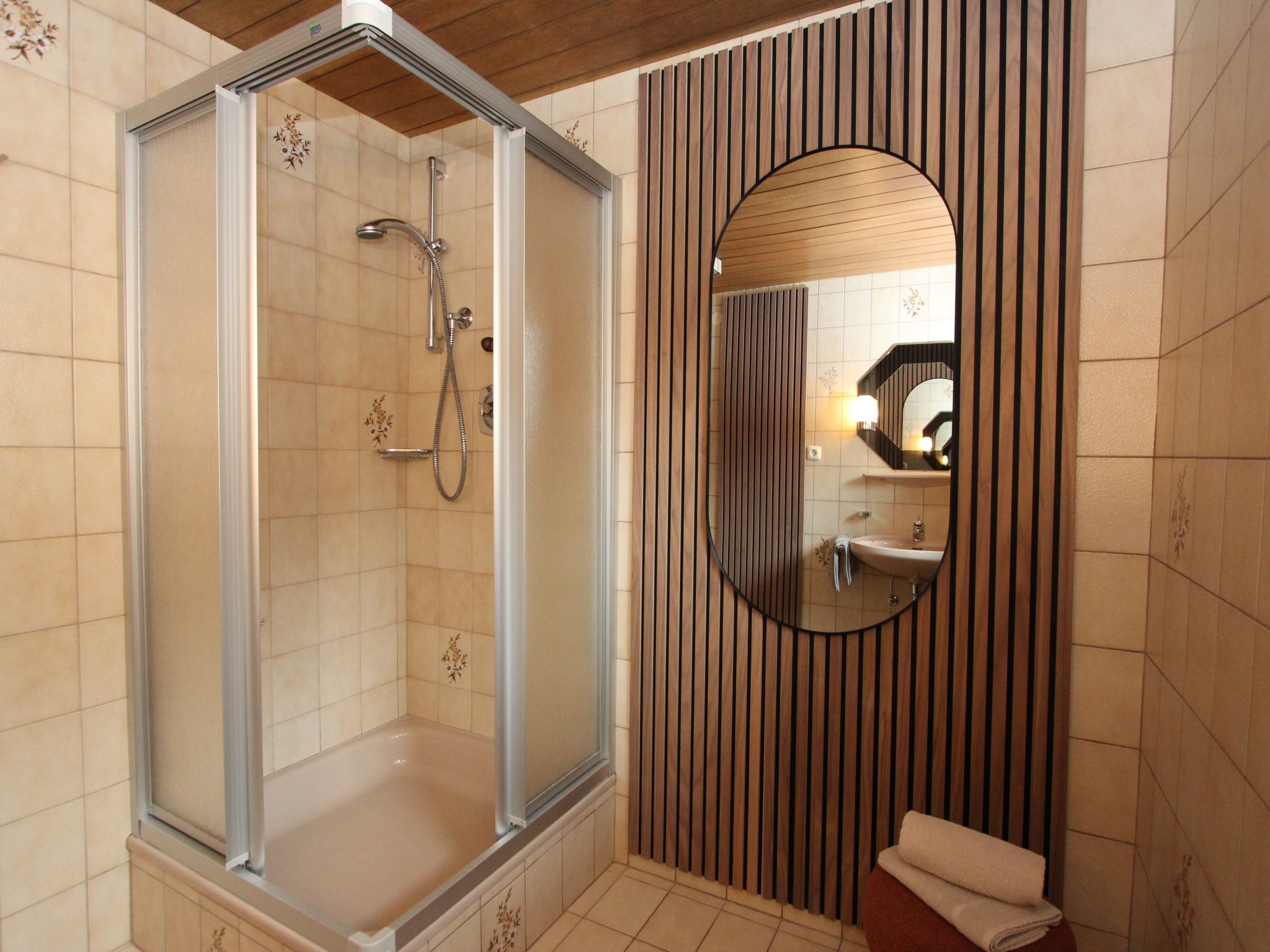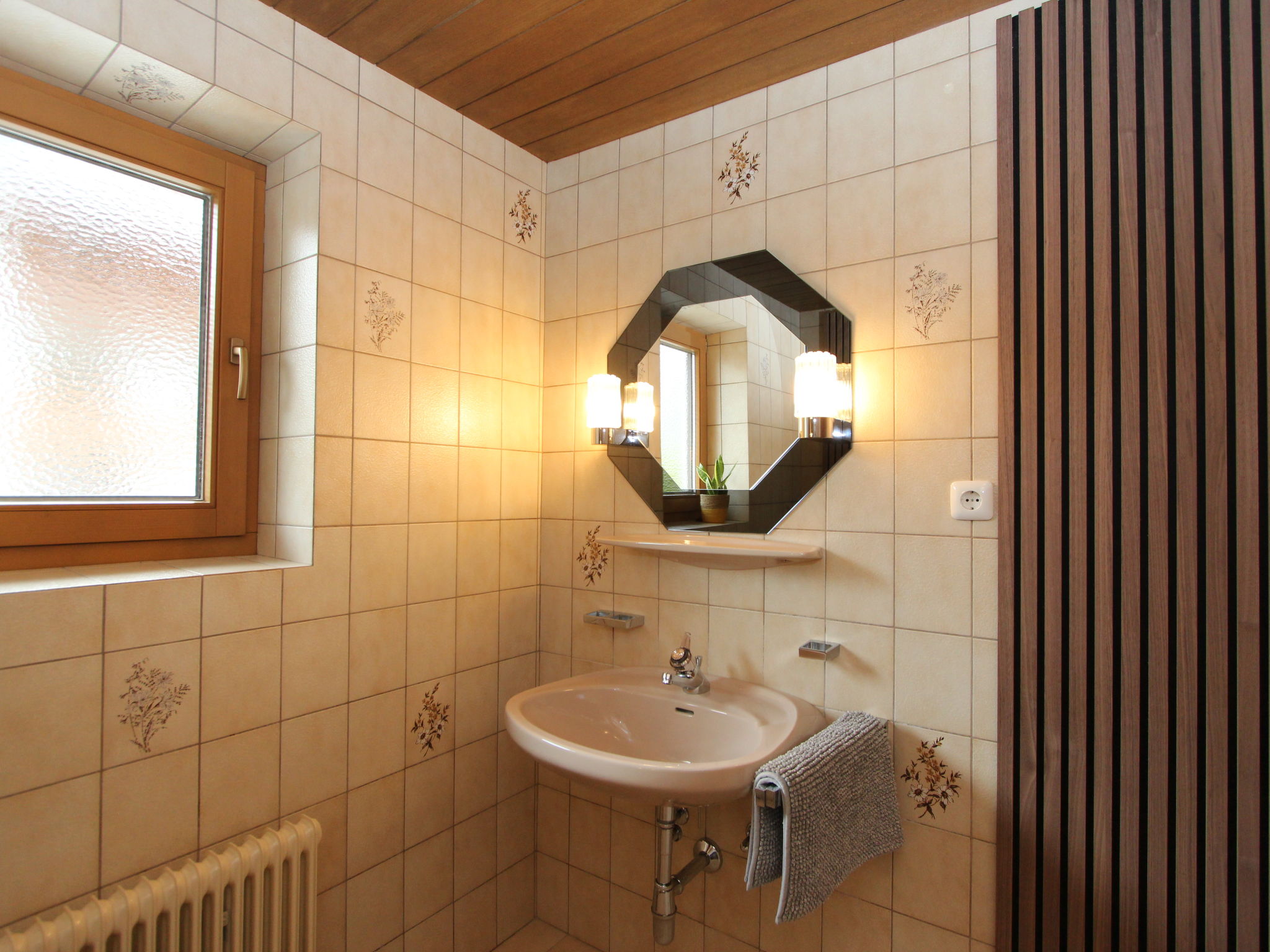 11-Zimmer-Haus 300 m2 auf 3 Stockwerken. Geräumig, teilweise renoviert im Jahre 2019, gemütlich eingerichtet: Eingang. Wohnzimmer. Esszimmer. Wohnzimmer mit Sat-TV (Flachbildschirm). Küche (Backofen, Geschirrspüler, 4 Glaskeramikherd Platten, Mikrowelle) mit Esstisch. Dusche, sep. WC. Obergeschoss: 4 Doppelzimmer, jedes Zimmer mit Waschbecken. Ausgang zum Balkon. Dusche, sep. WC. 2. Obergeschoss: 2 Doppelzimmer, jedes Zimmer mit Waschbecken. Ausgang zum Balkon. 1 Doppelzimmer mit Waschbecken. 1 abgeschrägtes grosses Zimmer mit 1 Bett, 1 franz. Bett und Waschbecken. Dusche, sep. WC. Das Wohnzimmer ist eine Bauernstube. 2 grosse Balkone, Terrasse. Terrassenmöbel, Gartengrill, Liegestühle. Schöne Sicht auf die Berge und die Landschaft. Zur Verfügung: Internet (Wireless LAN). Bitte beachten: geeignet für Familien. Nichtraucher-Haus.
