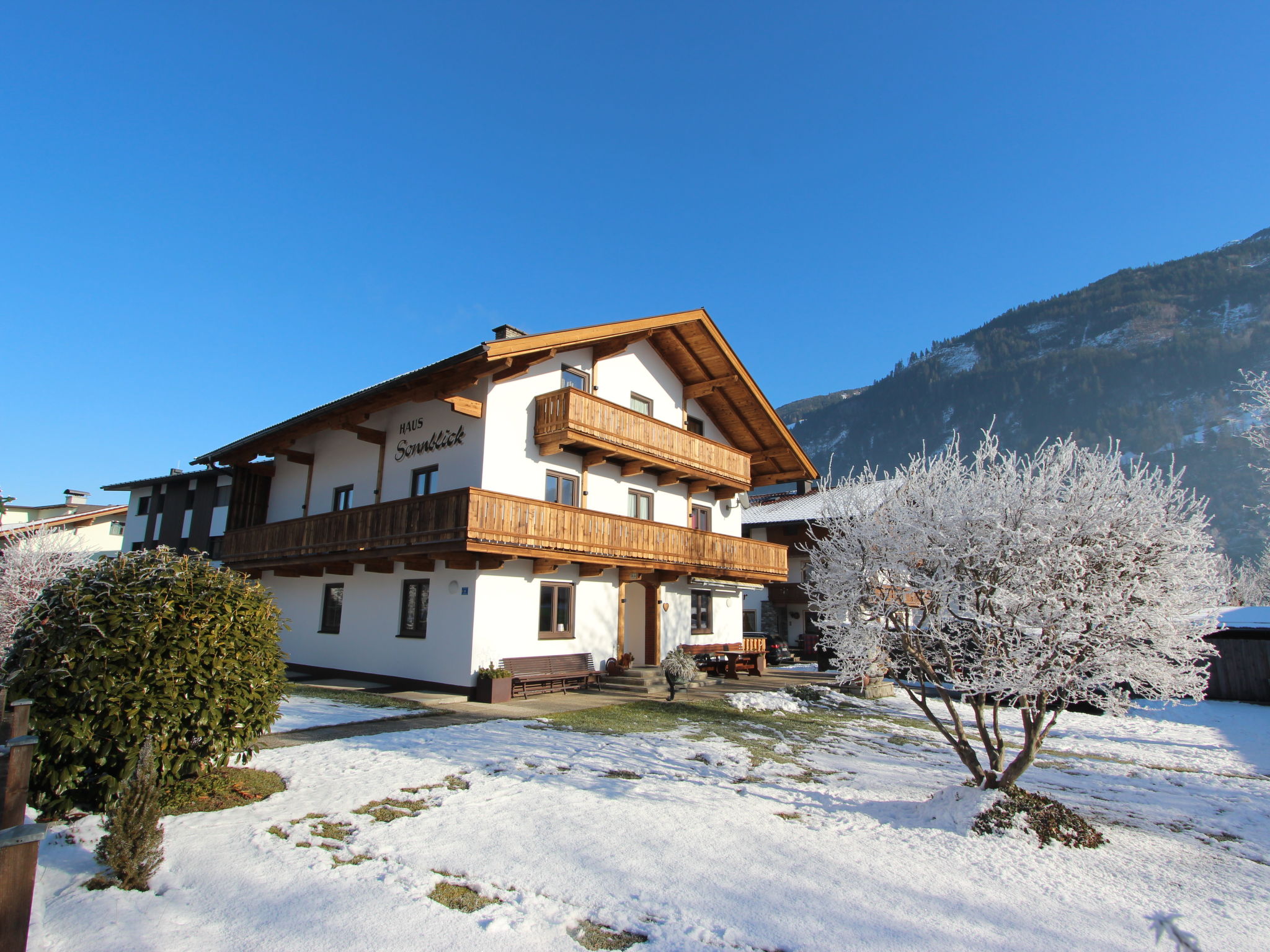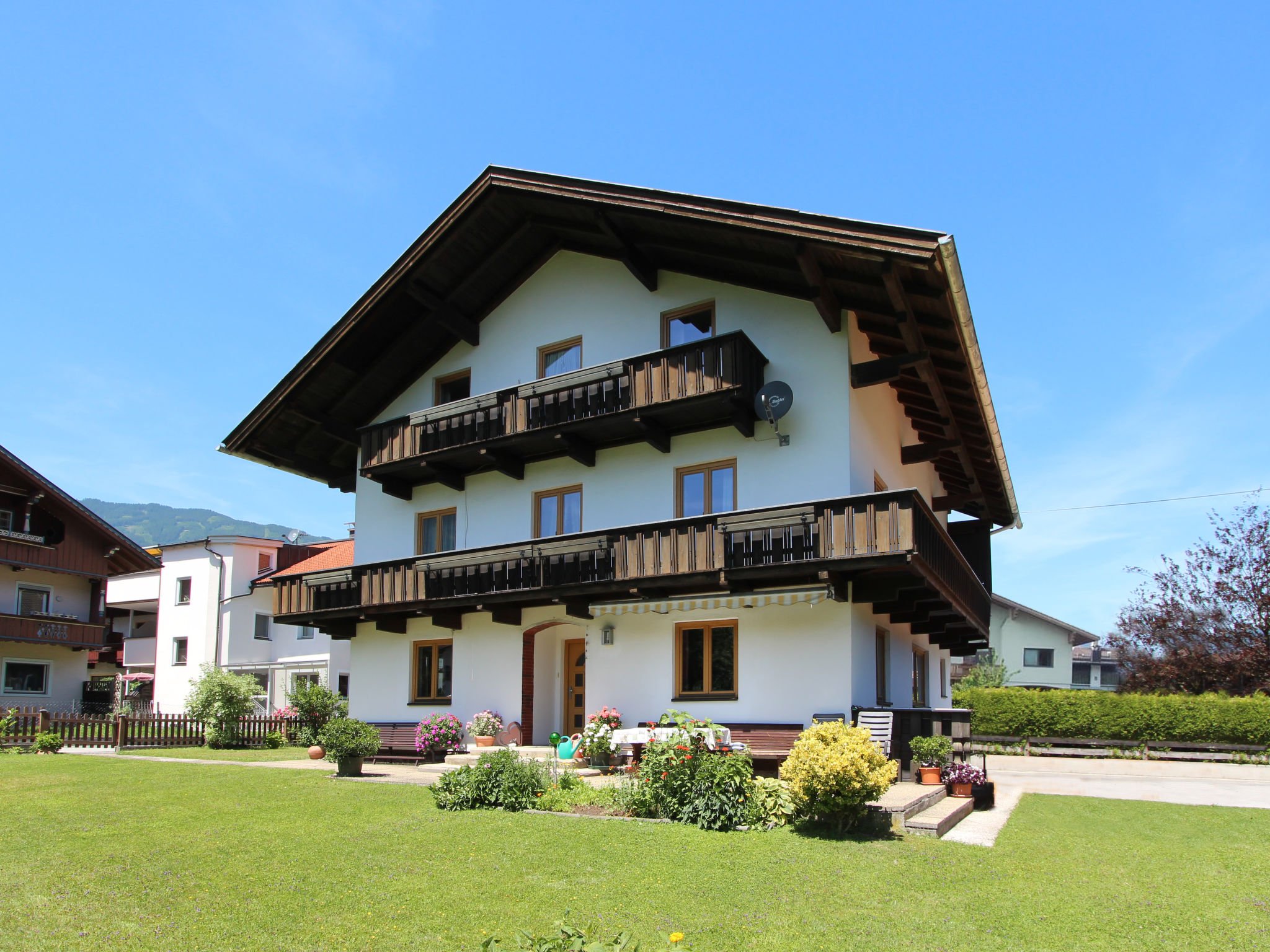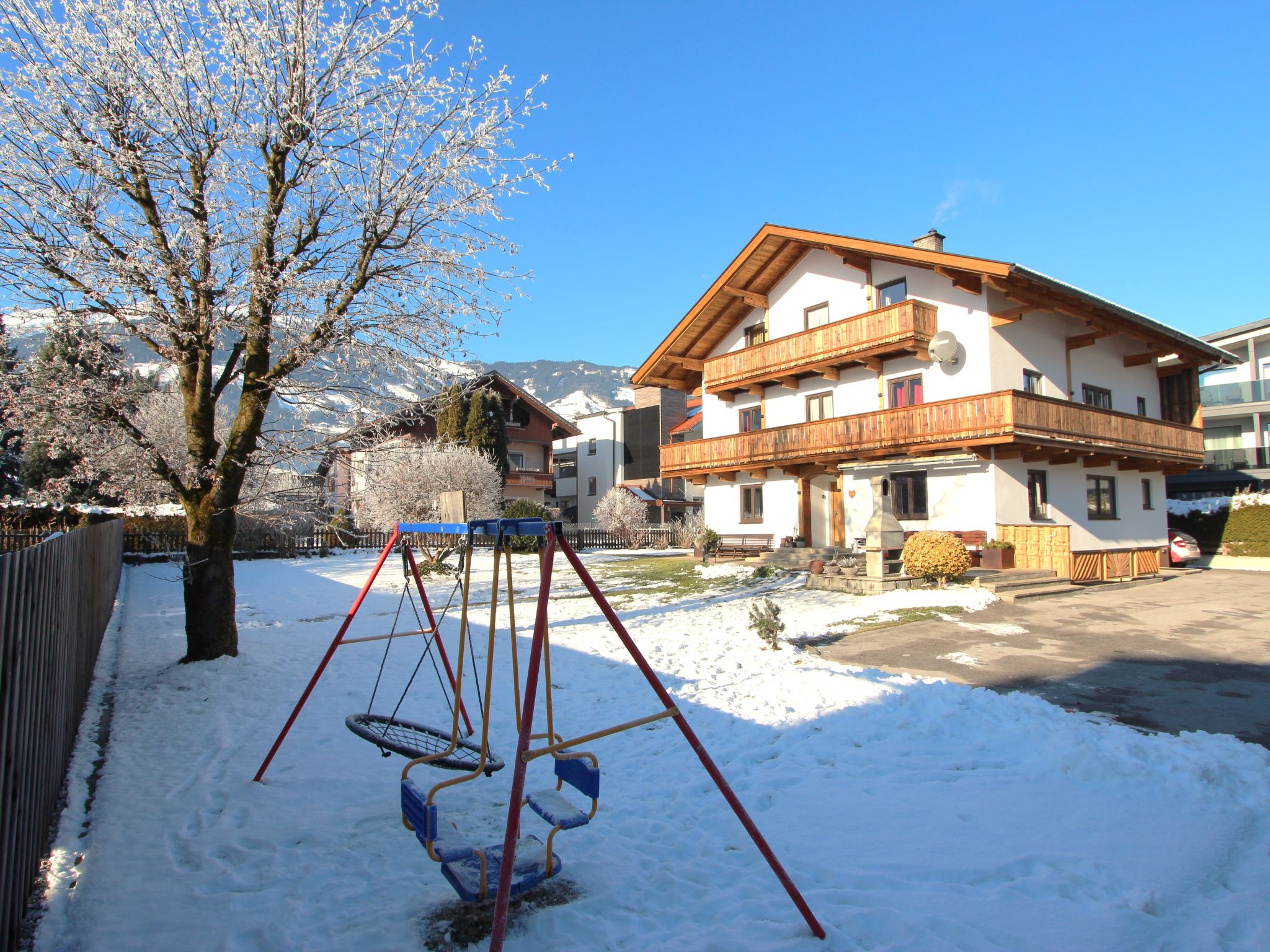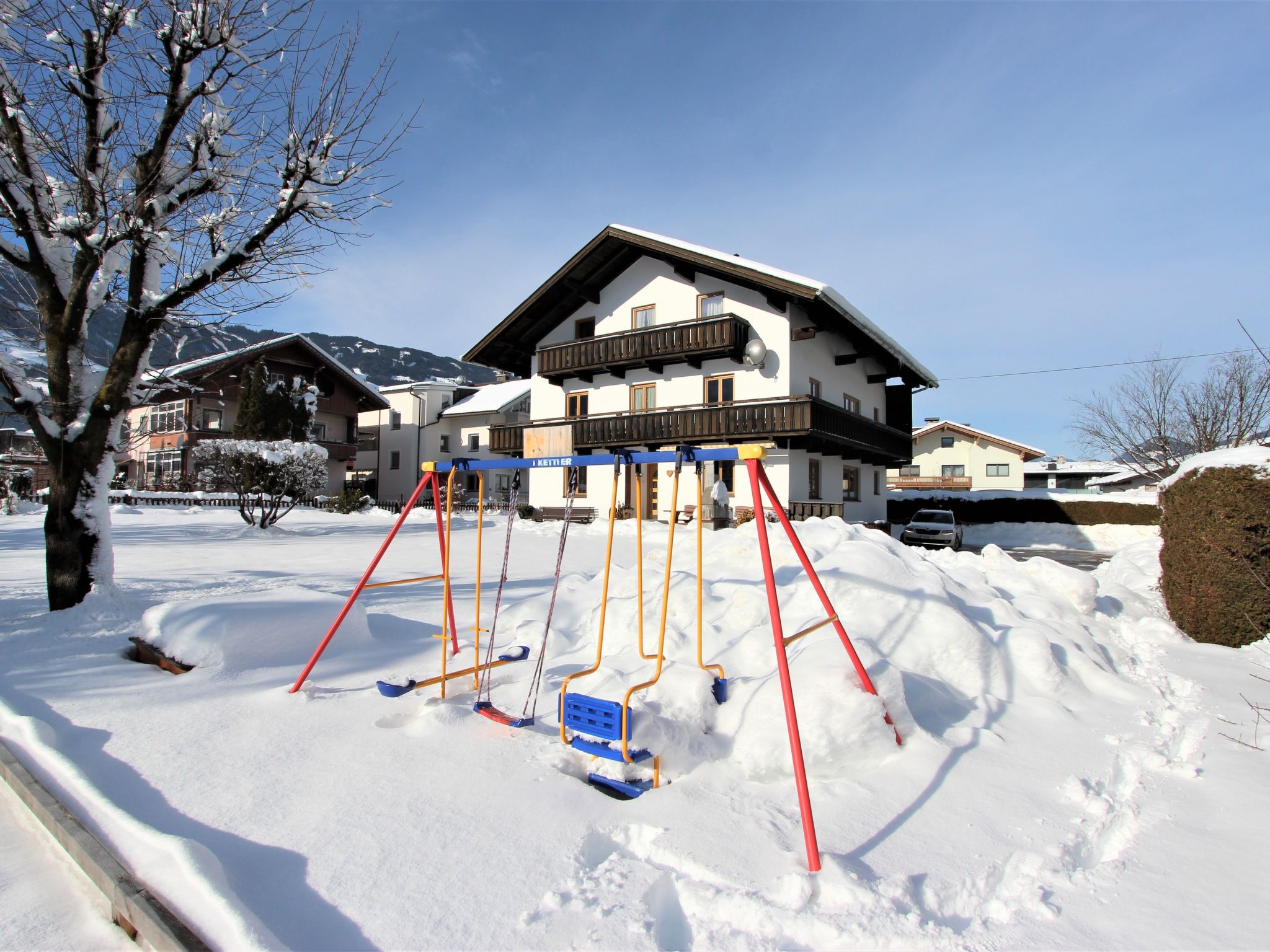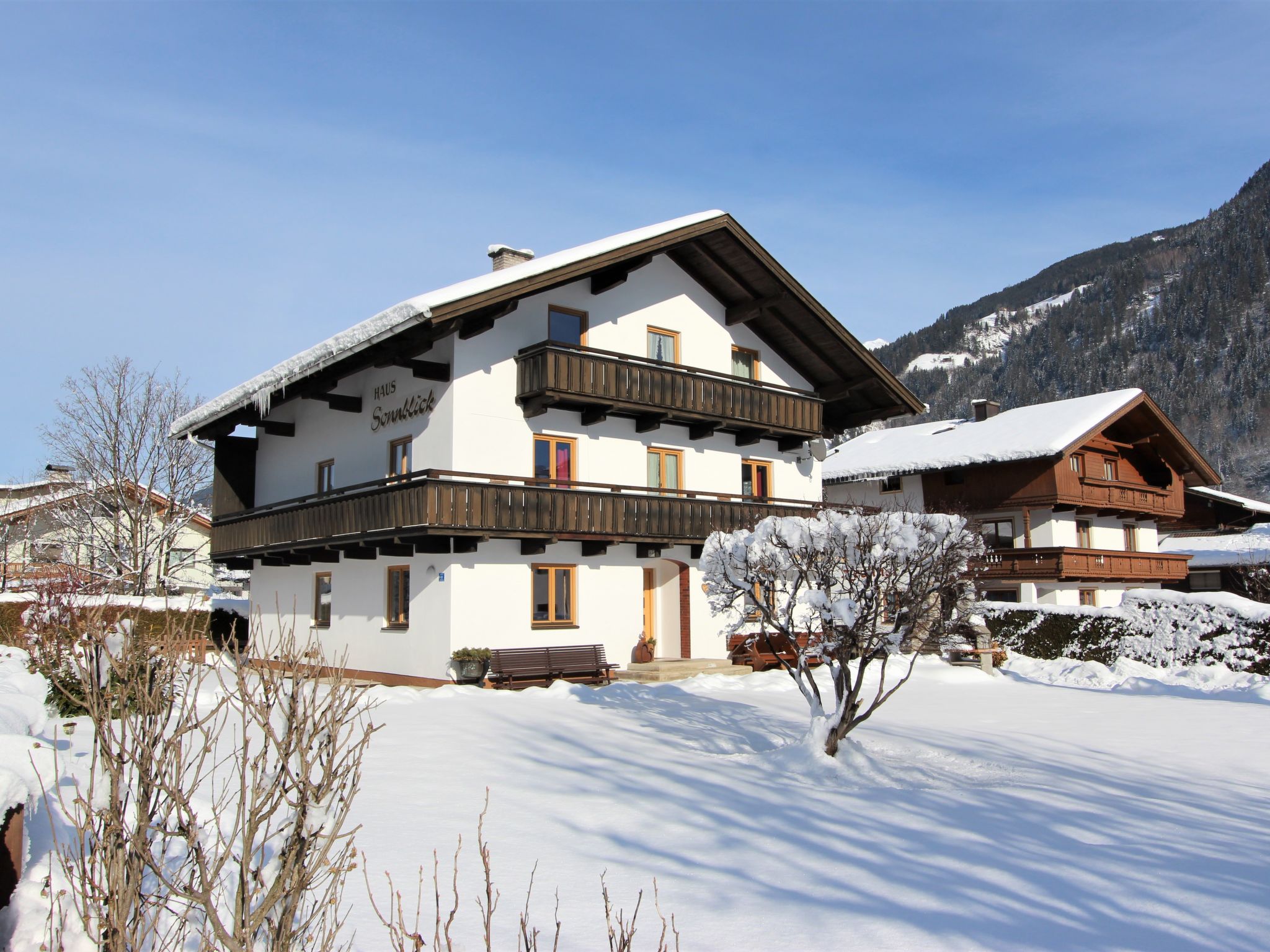 Uderns: Grosses, gemütliches Haus "Sonnblick", auf 3 Stockwerken. Im Ort Uderns, 2.5 km vom Zentrum von Fügen, 4 km vom Zentrum von Kaltenbach, zentrale, sonnige Lage in einem Wohnquartier, 3 km vom Skigebiet. Zur Alleinbenutzung: Grundstück 1'000 m2, grosser, schöner, gepflegter Garten 500 m2 mit Blumen und Bäumen, Liegewiese. Kinderspielplatz (Schaukel, Sandkasten). Im Hause: Wireless LAN, Einstellraum für Fahrräder, Skiraum, Zentralheizung, Waschmaschine. Zufahrt bis zum Haus. Parkplatz (für 6 Autos) beim Haus. Supermarkt 500 m, Restaurant 100 m, Bahnstation "Uderns" 210 m, Freibad 2 km, Hallenbad 2 km, Thermalbad "Erlebnistherme Fügen" 2 km, Badesee "Schlitterer Badesee" 7 km. Golfplatz (18 Loch) 1 km, Wanderwege ab Haus 100 m, Radweg 200 m, Gondelbahn 3 km, Skisportanlagen 3 km, Skibushaltestelle 200 m. Nahe gelegene Sehenswürdigkeiten: Theaterfestival Steudltenn 50 m. Bekannte Skigebiete sind gut erreichbar: Spieljoch 3 km, Hochzillertal-Hochfügen 4.5 km. Bitte beachten: Jugendgruppen nur auf Anfrage. Gratis Skibus. Der gratis Skibus fährt zum Skigebiet Spieljoch und Hochzillertal.