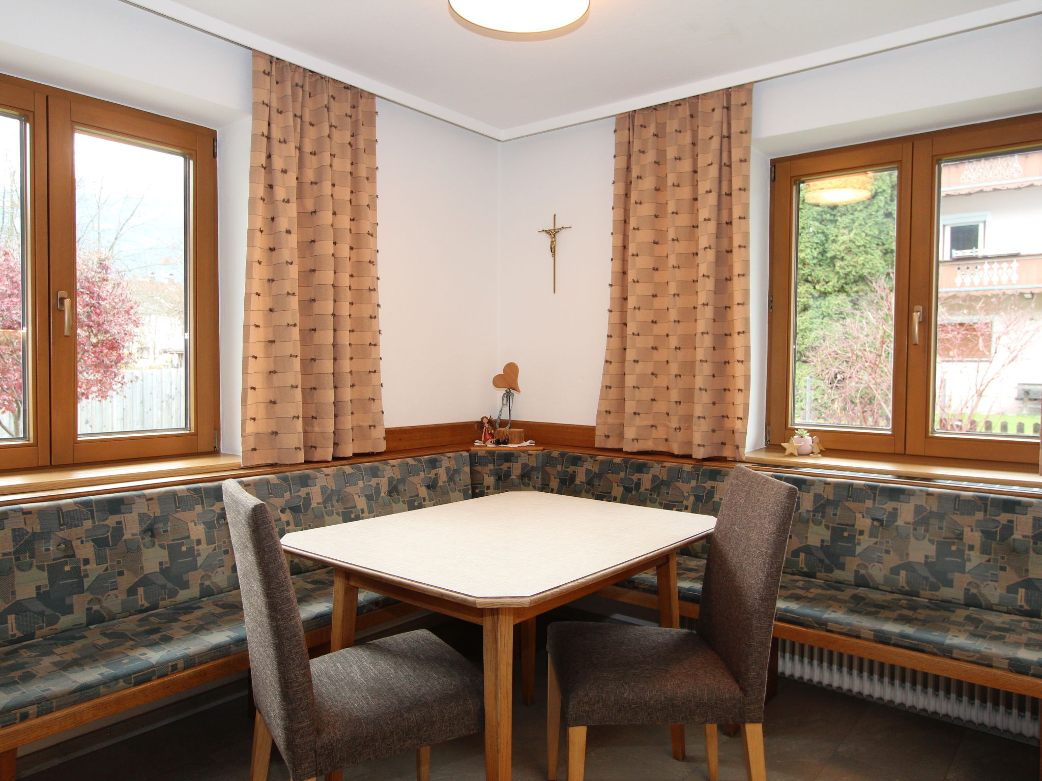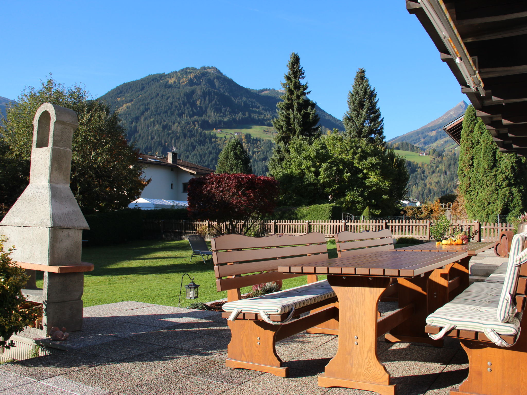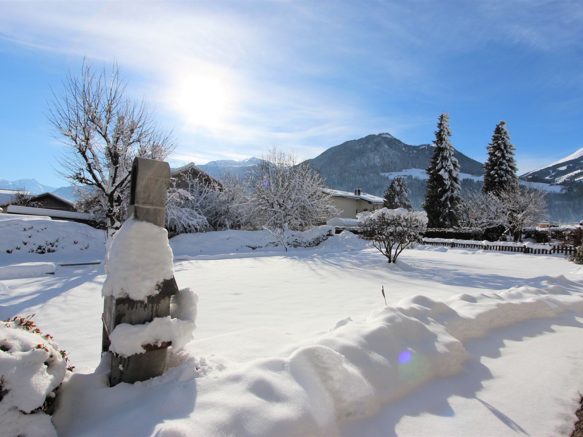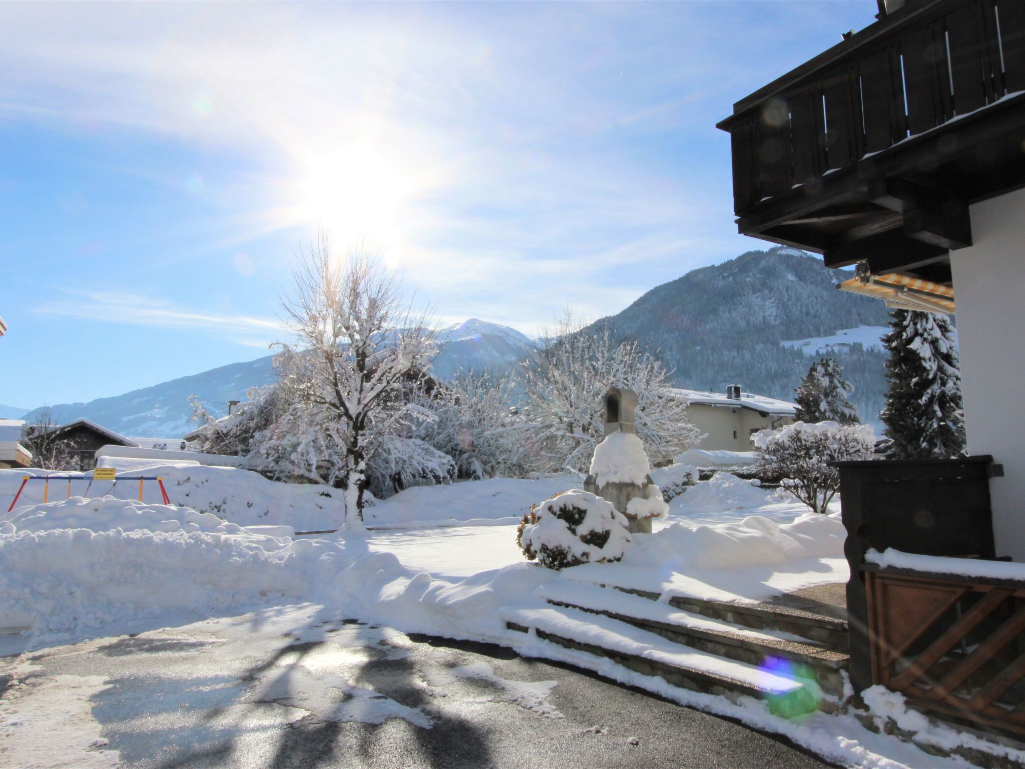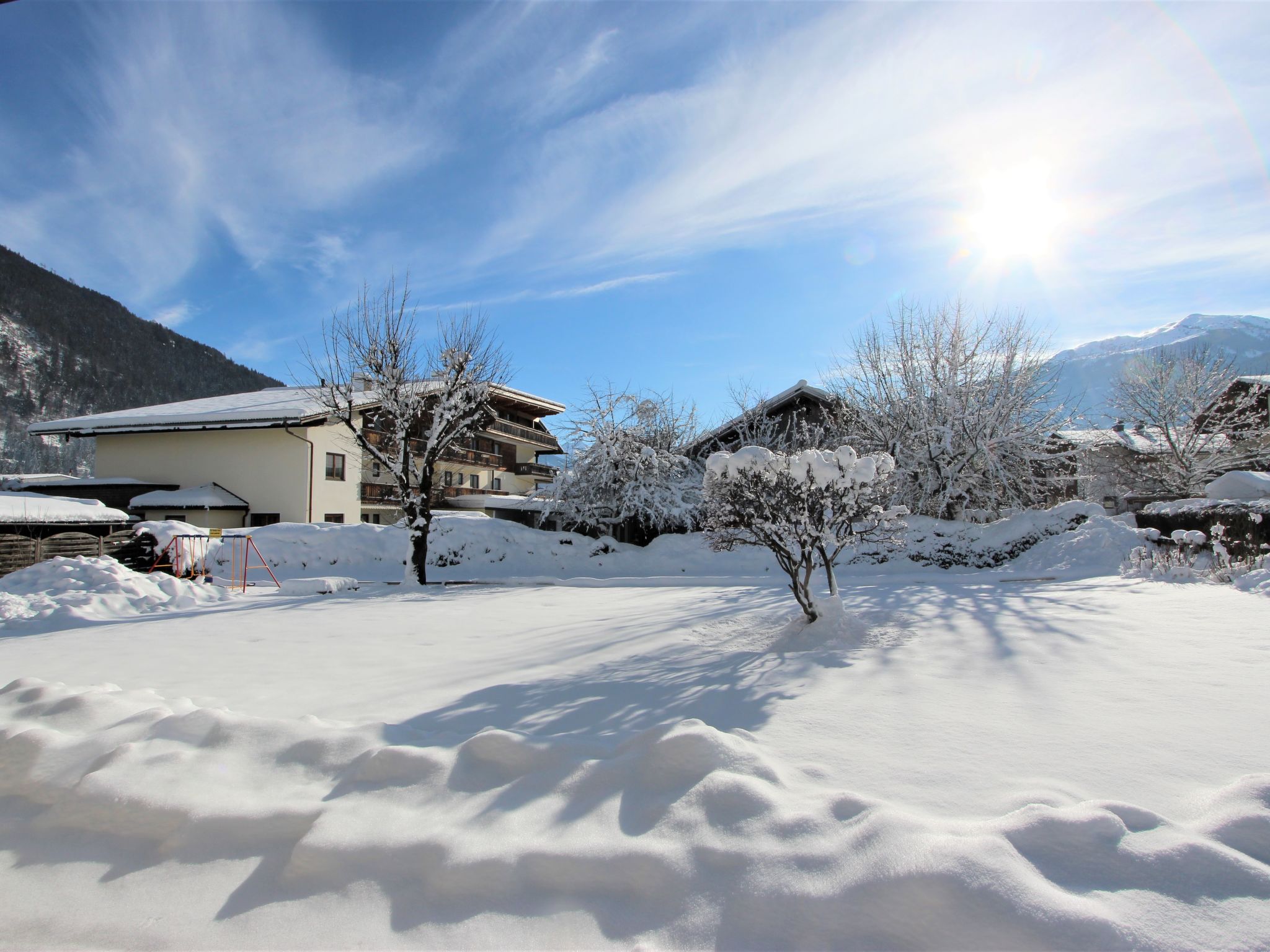 Uderns: Grosses, gemütliches Haus "Sonnblick", auf 3 Stockwerken. Im Ort Uderns, 2.5 km vom Zentrum von Fügen, 4 km vom Zentrum von Kaltenbach, zentrale, sonnige Lage in einem Wohnquartier, 3 km vom Skigebiet. Zur Alleinbenutzung: Grundstück 1'000 m2, grosser, schöner, gepflegter Garten 500 m2 mit Blumen und Bäumen, Liegewiese. Kinderspielplatz (Schaukel, Sandkasten). Im Hause: Wireless LAN, Einstellraum für Fahrräder, Skiraum, Zentralheizung, Waschmaschine. Zufahrt bis zum Haus. Parkplatz (für 6 Autos) beim Haus. Supermarkt 500 m, Restaurant 100 m, Bahnstation "Uderns" 210 m, Freibad 2 km, Hallenbad 2 km, Thermalbad "Erlebnistherme Fügen" 2 km, Badesee "Schlitterer Badesee" 7 km. Golfplatz (18 Loch) 1 km, Wanderwege ab Haus 100 m, Radweg 200 m, Gondelbahn 3 km, Skisportanlagen 3 km, Skibushaltestelle 200 m. Nahe gelegene Sehenswürdigkeiten: Theaterfestival Steudltenn 50 m. Bekannte Skigebiete sind gut erreichbar: Spieljoch 3 km, Hochzillertal-Hochfügen 4.5 km. Bitte beachten: Jugendgruppen nur auf Anfrage. Gratis Skibus. Der gratis Skibus fährt zum Skigebiet Spieljoch und Hochzillertal.