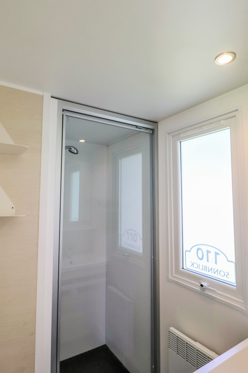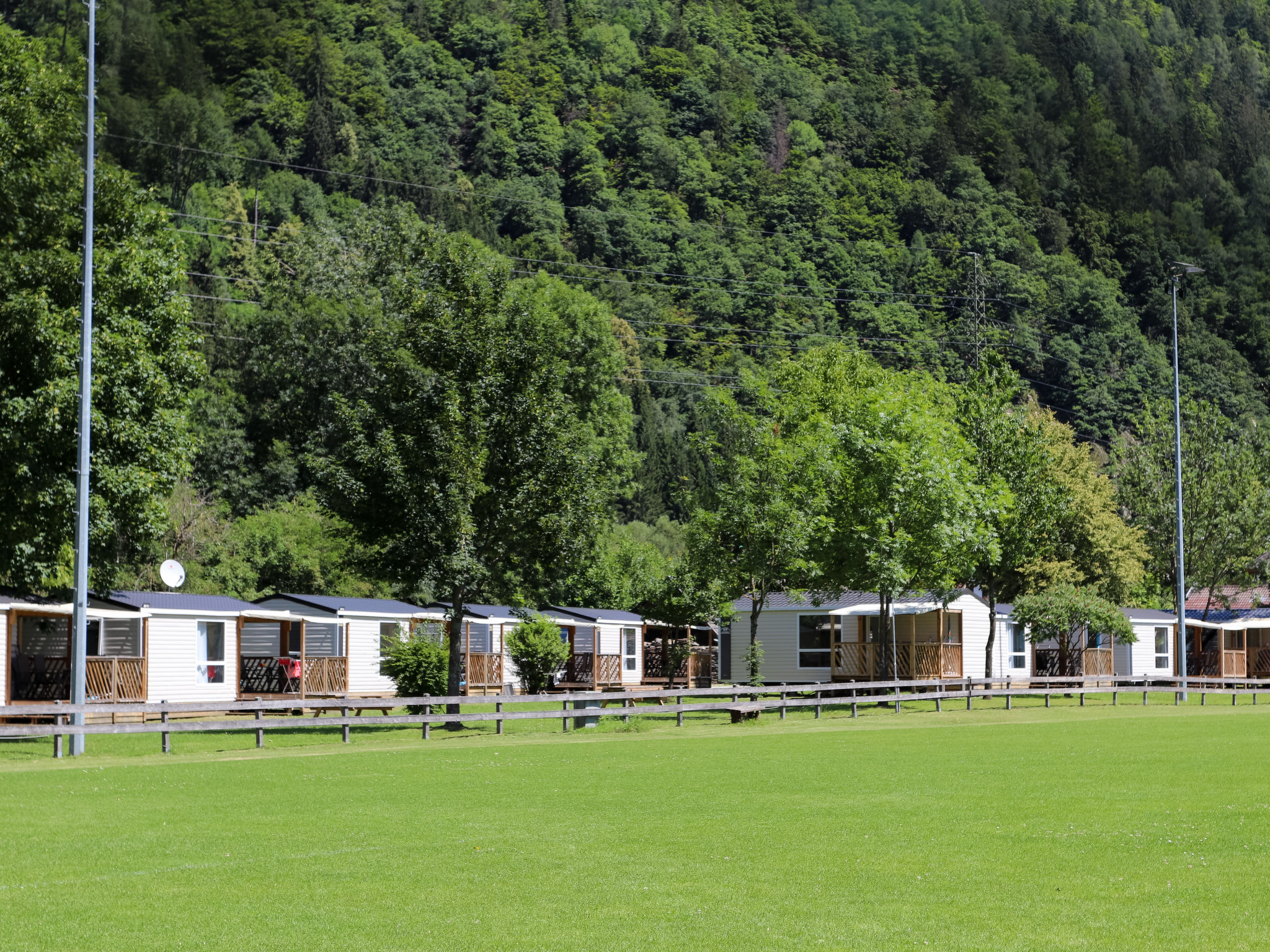 3-Zimmer-Mobilheim 30 m2. Objekt geeignet für 4 Erwachsene. Komfortabel und modern eingerichtet: 1 Doppelzimmer mit 1 franz. Bett (160 cm, Länge 200 cm). 1 Zimmer mit 2 Betten (80 cm, Länge 200 cm). Wohnküche (4 Induktionskochplatten, Mikrowelle, elektrische Kaffeemaschine, Racletteofen) mit 1 Schlafmöglichkeit (130 cm, Länge 190 cm), Esstisch, Sat-TV und Klimaanlage. Ausgang zur Terrasse. Dusche, sep. WC. E-Heizung, Klimaanlage. Terrasse überdacht. Terrassenmöbel, Elektrogrill (mobil), Liegestühle. Sicht auf die Berge und die Landschaft. Zur Verfügung: Internet (Wireless LAN, gratis). Bitte beachten: Nichtraucher-Unterkunft. Private Bootsanlegestelle (extra). 1 Haustier/Hund erlaubt. Rauchmelder. Die Mobilheime wurden erst im Vorjahr errichtet und sind brandneu. Bei Belegung mit weniger Personen als der maximalen Personenzahl stehen nicht alle Wohneinheiten zur Verfügung.