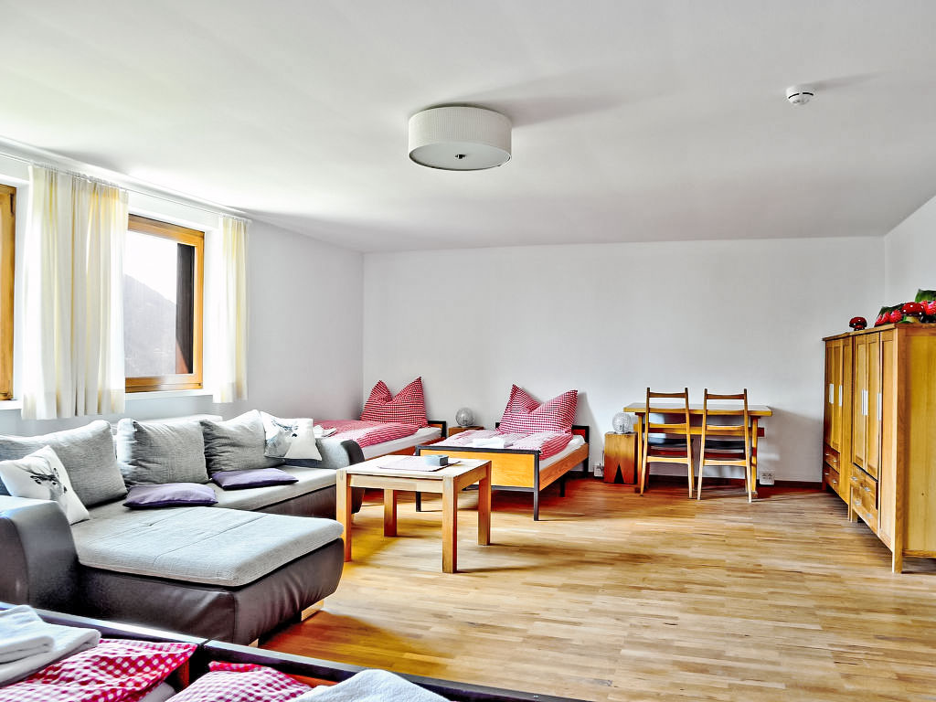 12-Zimmer-Haus 430 m2 auf 3 Stockwerken. Komfortabel und geschmackvoll eingerichtet: Spielzimmer. Billardzimmer. Gepäckraum. 4 Duschen. Obergeschoss: grosses Esszimmer mit Sat-TV (Flachbildschirm). Grosse Küche (5 Kochplatten, Backofen, Geschirrspüler, Mikrowelle) mit Durchreiche. 4 sep. WC's. 2. Obergeschoss: 4 Doppelzimmer. 1 Zimmer mit 3 Betten und Sat-TV. 3 Zimmer, jedes Zimmer mit 2 Betten und Sat-TV. 2 sep. WC's. Komfortable Einrichtung im Landhausstil. Panoramasicht auf die Berge und die Landschaft. Zur Verfügung: Babybett (extra). Internet (Wireless LAN, gratis). 2 Haustiere/Hunde erlaubt. Bestens geeignet für Großfamilien. Ein zusätzliches Zimmer für maximal 3 Personen kann vor Ort, für die Dauer des Aufenthaltes, gebucht werden.
