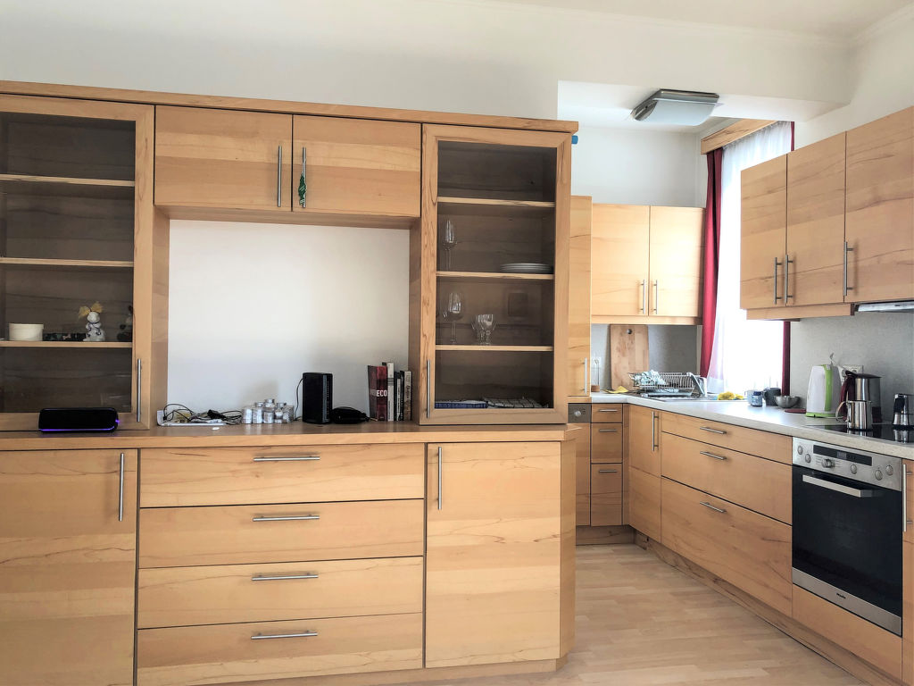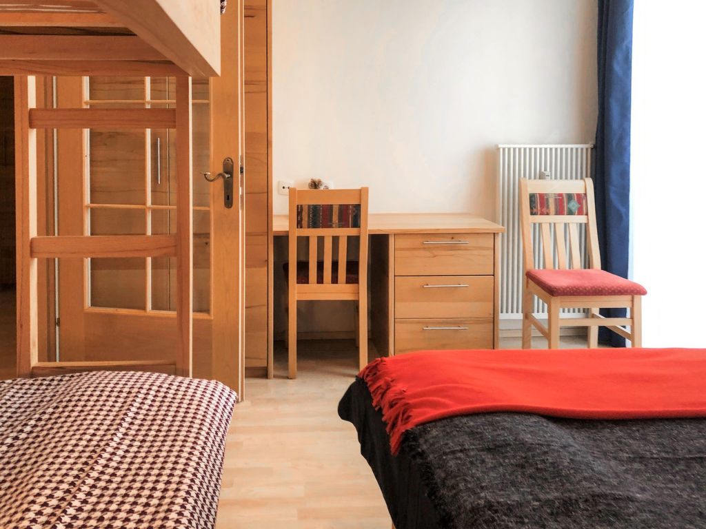 "Kaiser", 3-Zimmer-Wohnung 75 m2 im 1. Stock. Objekt geeignet für 4 Erwachsene + 4 Kinder. Geräumig und hell, sehr geschmackvoll und gemütlich eingerichtet: Eingang. 1 Zimmer mit 1 x 2 Etagenbetten (90 cm, Länge 200 cm), 1 Doppelbett. Ausgang zum Balkon. 1 Zimmer mit 1 x 2 Etagenbetten (90 cm, Länge 200 cm), 1 Doppelbett. Wohn-/Esszimmer mit Esstisch und Kabel-TV (Flachbildschirm). Ausgang zum Balkon. Offene Küche (Backofen, Geschirrspüler, 4 Glaskeramikherd Platten, Toaster, Wasserkocher, Mikrowelle). 2 Duschen, 2 sep. WC's. 2 kleine Balkone 2 m2, Südlage und Westlage. Schöne Sicht auf die Berge. Zur Verfügung: Internet (Wireless LAN, gratis). Bitte beachten: geeignet für Familien. Nichtraucher-Unterkunft. 1 Haustier/Hund erlaubt. 50402-000753-2021