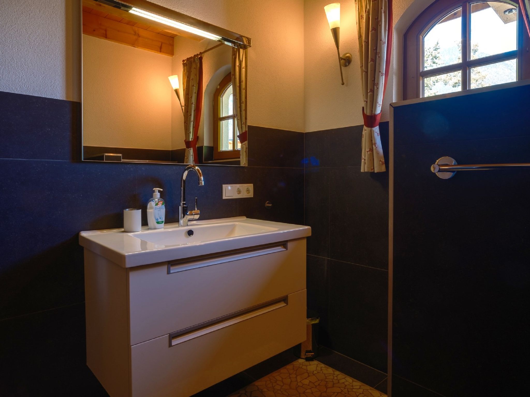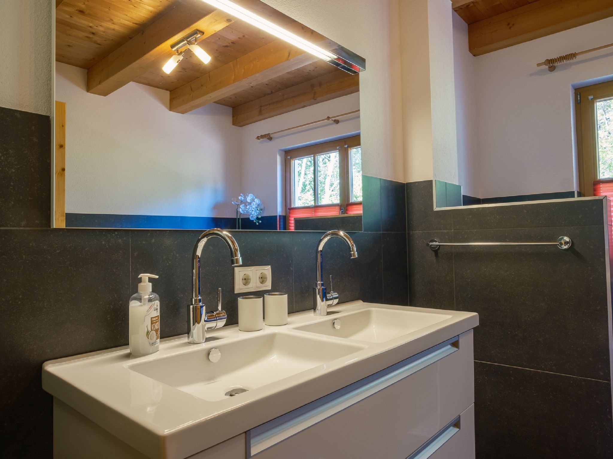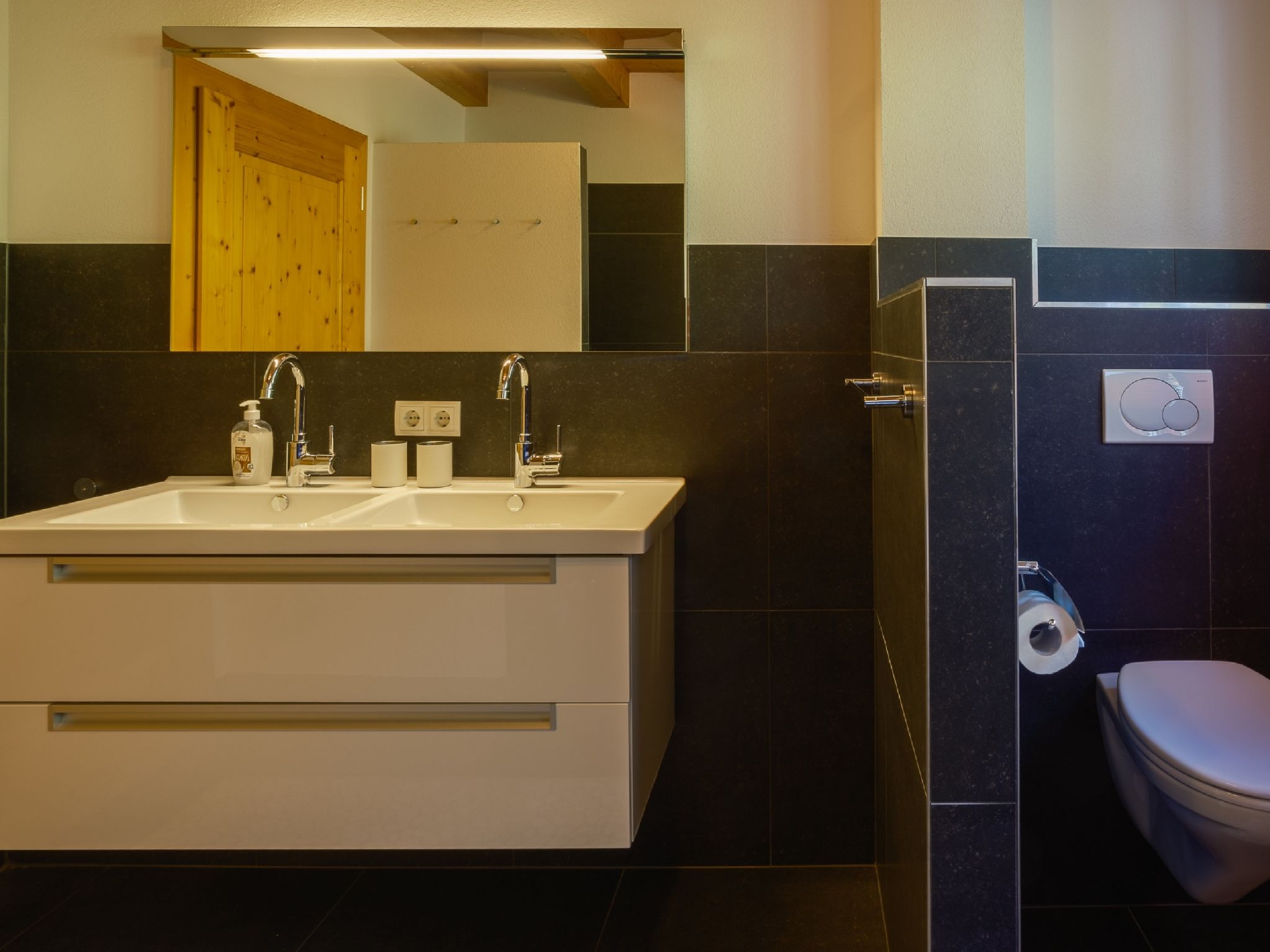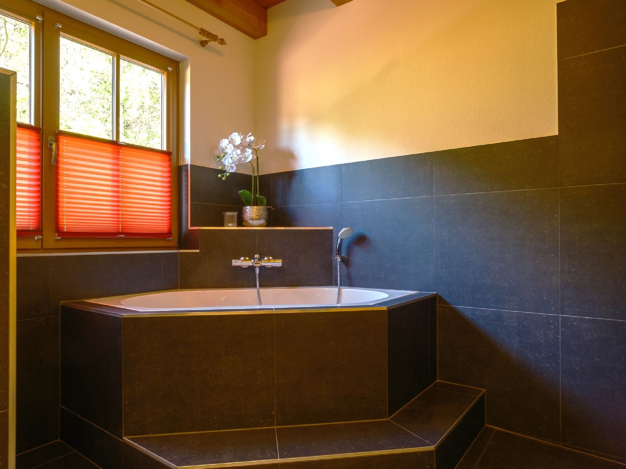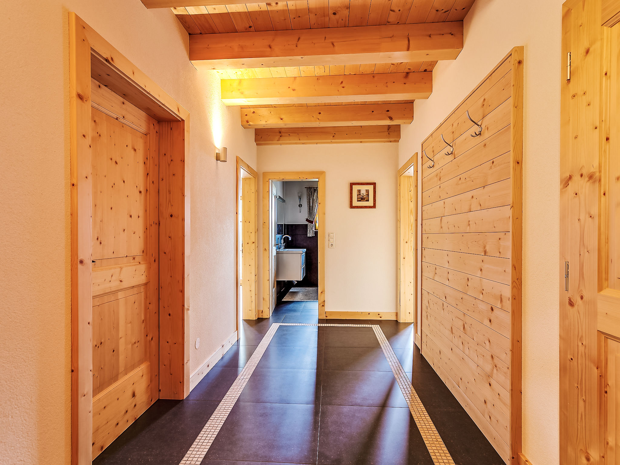 4-Zimmer-Wohnung 100 m2, im Erdgeschoss. Geschmackvoll und mit viel Holz eingerichtet: Eingang. 3 Doppelzimmer. Wohn-/Esszimmer mit Sat-TV. Ausgang zum Garten, zur Terrasse. Offene Küche (Geschirrspüler, 4 Induktionskochplatten, Mikrowelle). Dusche/WC, Bad/Dusche/WC. Fussbodenheizung. Komfortable Einrichtung im Landhausstil. Sicht auf die Berge und die Landschaft. Zur Verfügung: Safe, Haartrockner. Internet (Wireless LAN). Bitte beachten: Nichtraucher-Haus. Allergikergeeignet. Achtung: Es sind nicht mehr als 6 Personen in der Ferienwohnung erlaubt!