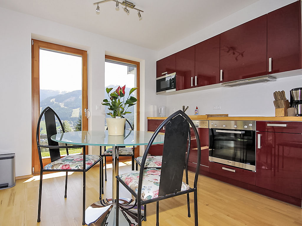 "Schönwies", 3-Zimmer-Wohnung 47 m2, im Erdgeschoss. Objekt geeignet für 2 Erwachsene + 2 Kinder. Sehr komfortabel und modern eingerichtet: Eingang. 1 Zimmer mit 1 franz. Bett (160 cm). 1 kleines Zimmer mit 1 x 2 Etagenbetten. Wohn-/Esszimmer mit Esstisch, Sat-TV und Flachbildschirm. Ausgang zum Garten. Offene Küche (Backofen, Geschirrspüler, 4 Glaskeramikherd Platten, Mikrowelle). Dusche/WC. Solarheizung, Fussbodenheizung. Parkettböden. Grosse Terrasse 15 m2. Sehr schöne Panoramasicht auf die Skipiste und die Ortschaft. Zur Verfügung: Internet (Wireless LAN, gratis). Bitte beachten: Nichtraucher-Unterkunft. Eigener Eingang. Hochwertige Einrichtung mit Miele Küche und Villeroy und Boch Sanitärobjekte.