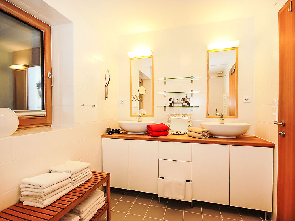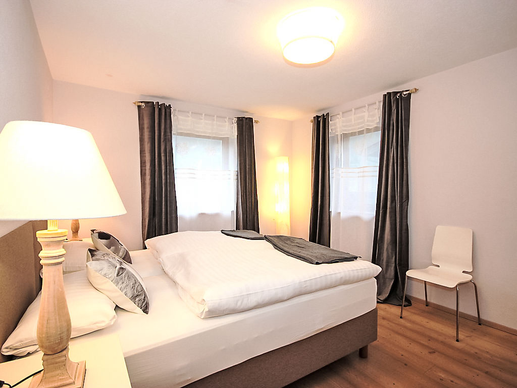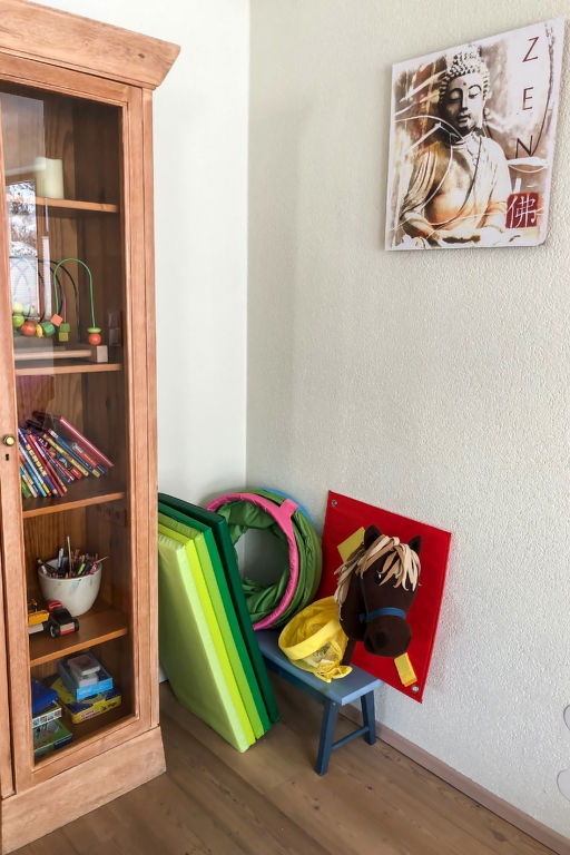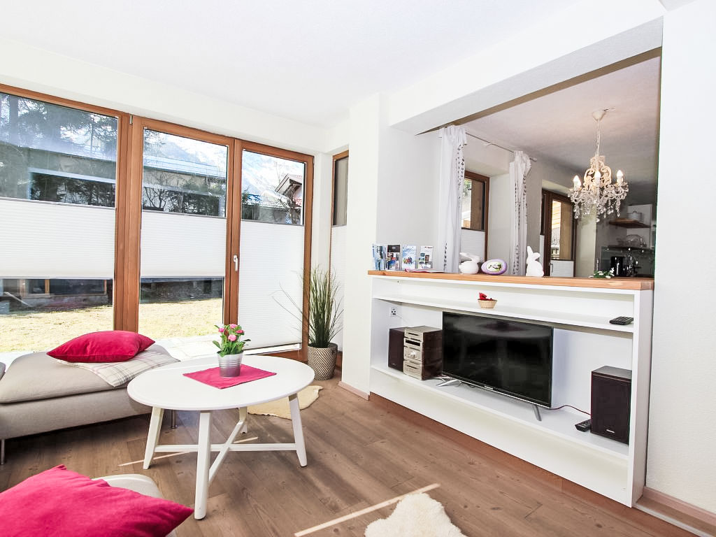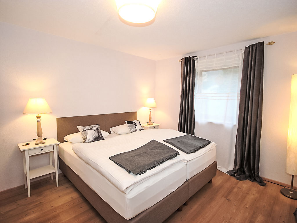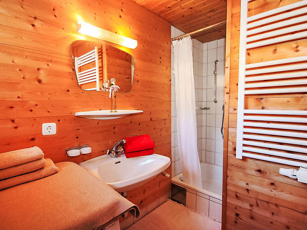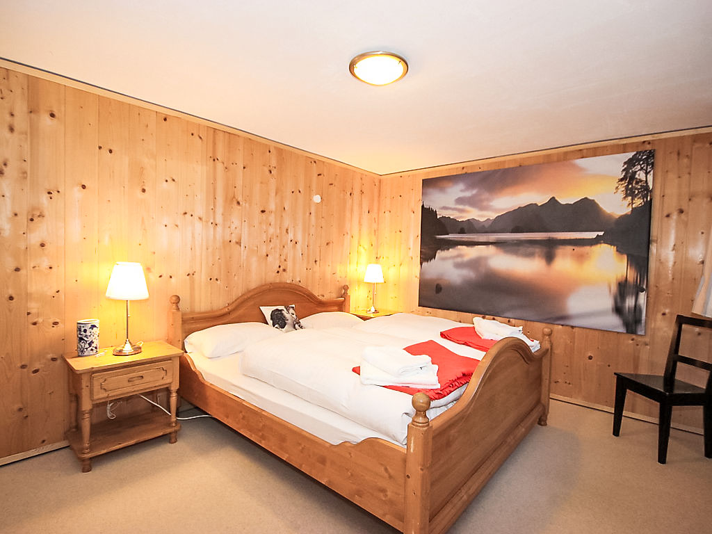 4-Zimmer-Chalet 120 m2. Komfortabel eingerichtet: Eingang. 2 Doppelzimmer. Wohnzimmer mit Schwedenofen und Sat-TV (Flachbildschirm), Stereoanlage. Ausgang zur Terrasse. Offene Küche (Backofen, Geschirrspüler, 4 Glaskeramikherd Platten, Mikrowelle, Tiefkühler) mit Esstisch. Ausgang zur Terrasse. Bad, sep. WC. Unteres Geschoss: 1 Doppelzimmer mit Dusche/WC. 2 Terrassen. Terrassenmöbel, Liegestühle. Sehr schöne Sicht auf die Berge. Zur Verfügung: Babybett, Haartrockner. Internet (Wireless LAN, gratis). Bitte beachten: Nichtraucher-Haus. 2 Haustiere/Hunde erlaubt.