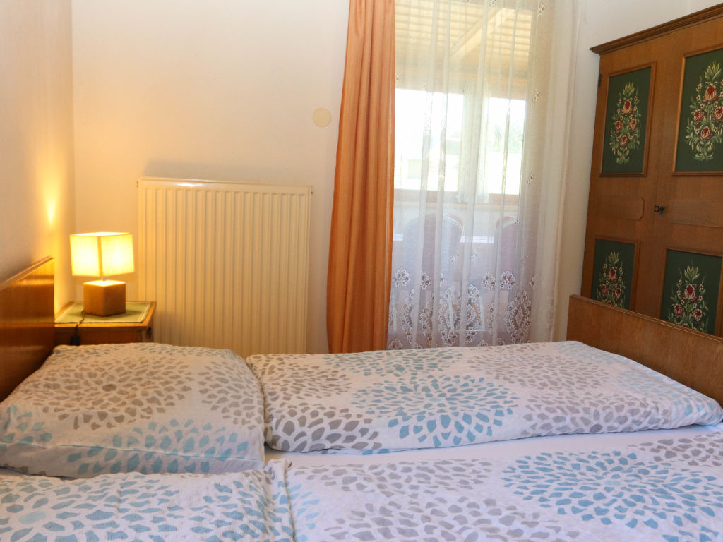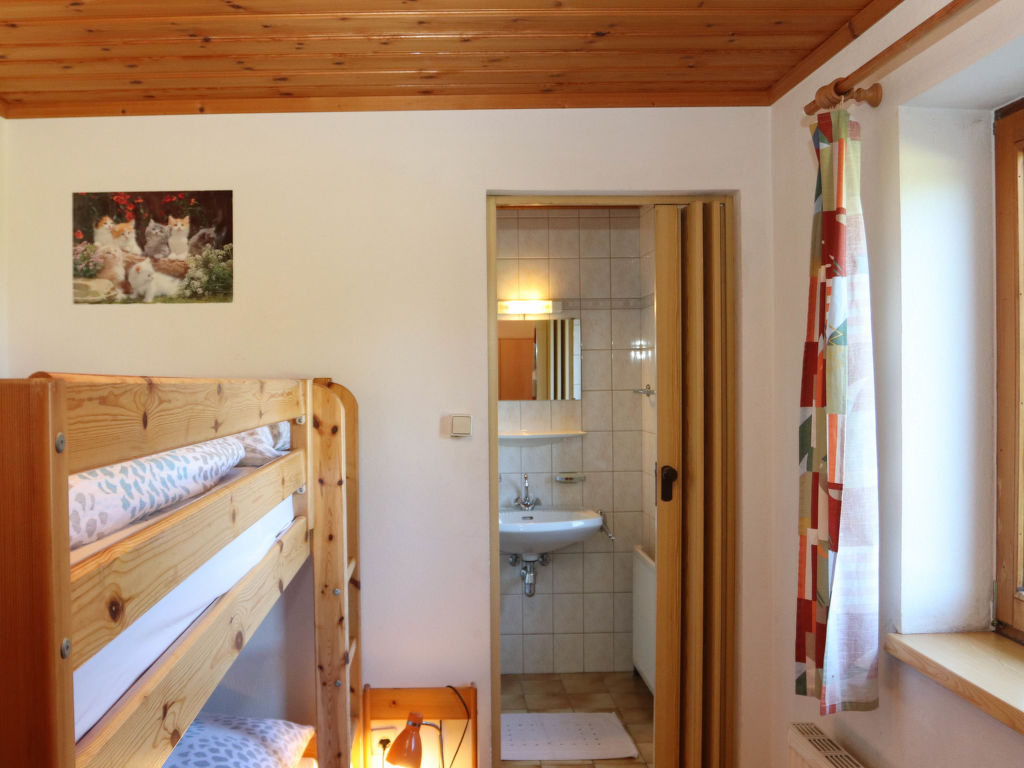 "Kammspitze", 4-Zimmer-Wohnung 70 m2, im erhöhten Erdgeschoss. Sehr einfach und rustikal eingerichtet: Eingang. Wohn-/Esszimmer mit Essecke und Sat-TV. 1 Doppelzimmer. 1 Zimmer mit 1 x 2 Etagenbetten, Dusche/WC. Durchgangszimmer mit 1 Bett und 1 x 2 Etagenbetten. Kochnische (2 Kochplatten, Mini-Backofen, 2 Glaskeramikherd Platten, Mikrowelle, elektrische Kaffeemaschine). Dusche/WC. Terrasse teilweise überdacht. Terrassenmöbel. Sehr schöne Sicht auf die Berge und die Landschaft. Zur Verfügung: Internet (Wireless LAN, gratis). Bitte beachten: Nichtraucher-Unterkunft. Maximal 1 Haustier/Hund erlaubt. Bei Belegung mit weniger Personen als der maximalen Personenzahl stehen nicht alle Wohneinheiten zur Verfügung.