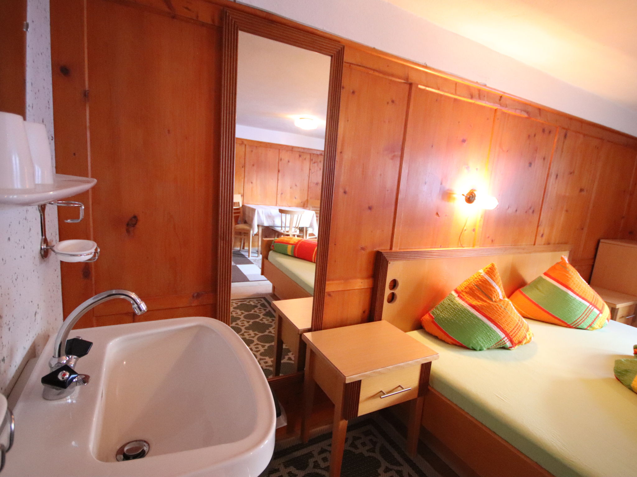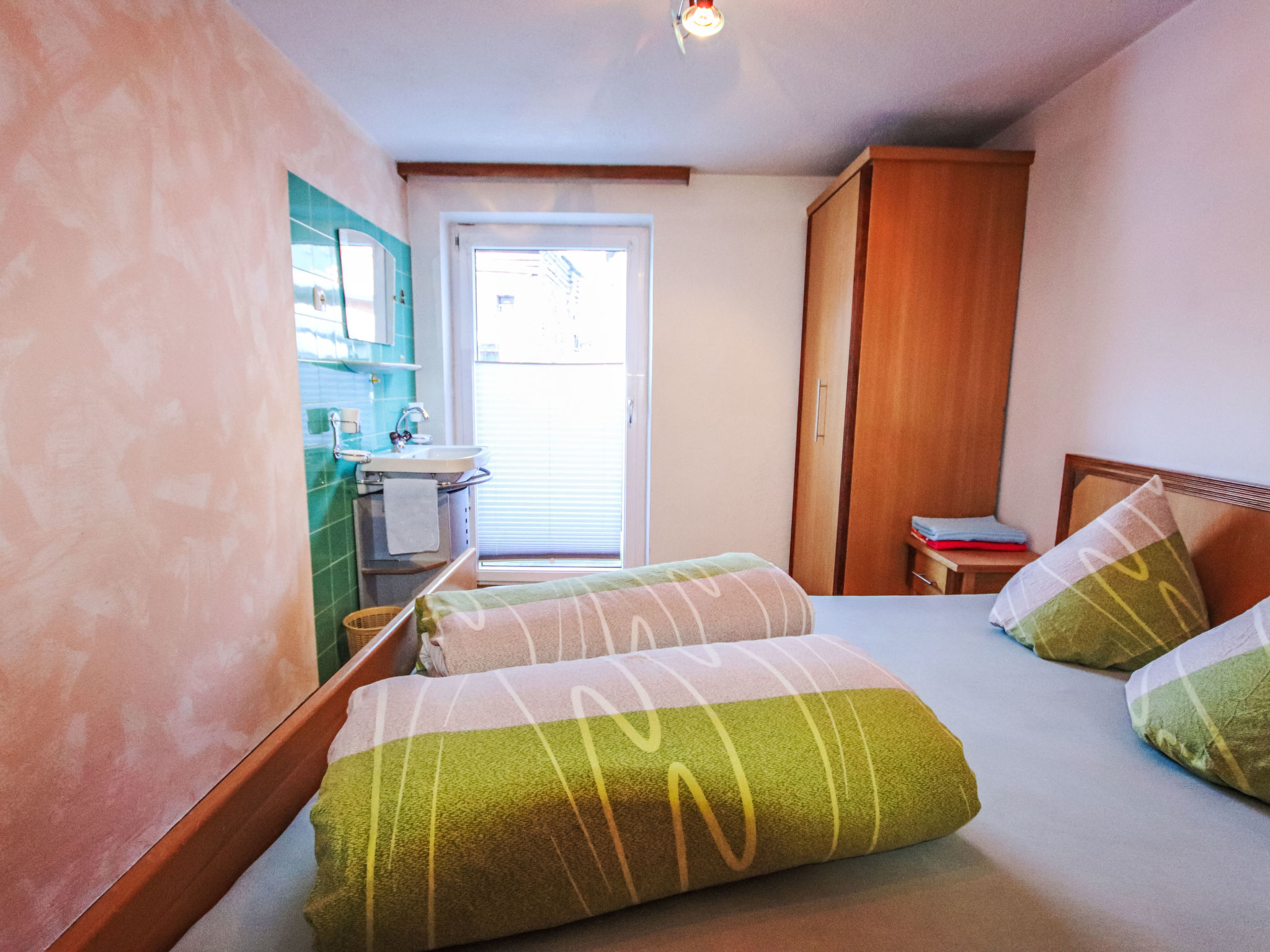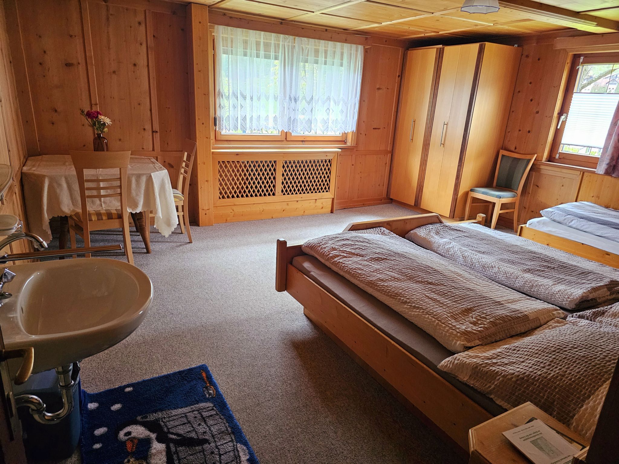 10-Zimmer-Haus, 3 Etagen, ca. 180 m². Erdgeschoss: Vorraum mit Garderobe. Wohnküche (4 Ceranfelder, Backofen, Geschirrspüler, Kühlschrank, 3x kleiner Gefrierschrank, Kaffeemaschine, Wasserkocher, Toaster) mit Essplatz (Eckbank) für ca. 6 Personen. Gemütliche, holzvertäfelte Stube mit Essplatz für ca. 15 Personen. Doppelzimmer. Sep.WC. 1. Etage: Wohnküche (4 Ceranfelder, Backofen, Geschirrspüler, Kühl-/Gefrierkombination, Kaffeemaschine, Wasserkocher) mit Balkonausgang. 3 Doppelzimmer, jeweils mit Waschbecken. Dreibettzimmer mit Waschbecken. Dusche. Sep.WC. 2. Etage: 2 Doppelzimmer, jeweils mit Waschbecken, eines davon mit Balkonausgang. Dusche. Sep.WC. Bei Belegung mit weniger Personen als der maximalen Personenzahl stehen nicht alle Wohneinheiten zur Verfügung.