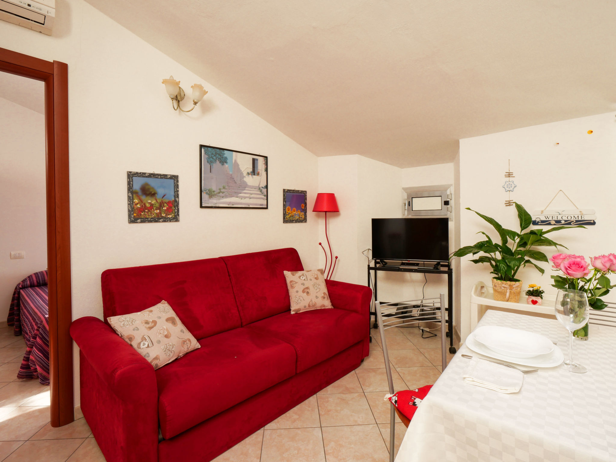 "Stefi", 3-Zimmer-Wohnung 55 m2 im 2. Stock. Hell, abgeschrägt, komfortabel und gemütlich eingerichtet: Wohn-/Esszimmer mit Esstisch und TV (Flachbildschirm), Klimaanlage. 1 Doppelzimmer mit TV (Flachbildschirm), Klimaanlage. 1 Zimmer mit 2 Betten (80 cm). Offene Küche (Backofen, Geschirrspüler, 4 Flammen, Toaster, Wasserkocher, Tiefkühler, elektrische Kaffeemaschine). Dusche/Bidet/WC. E-Heizung, G-Heizung. Heizung nur verfügbar von 01.11. bis 15.04. Zur Verfügung: Waschmaschine, Bügeleisen, Babybett bis 2 Jahre, Haartrockner. Internet (Wireless LAN, gratis). Geeignet für Familien. Es werden keine zusätzlichen Gebühren vor Ort fällig, ausgenommen der örtlichen Kurtaxe.