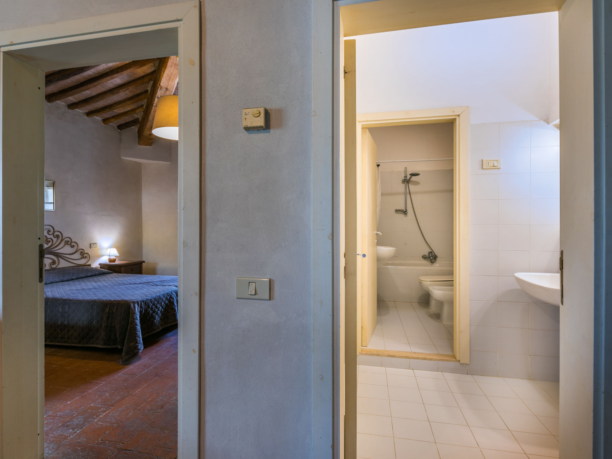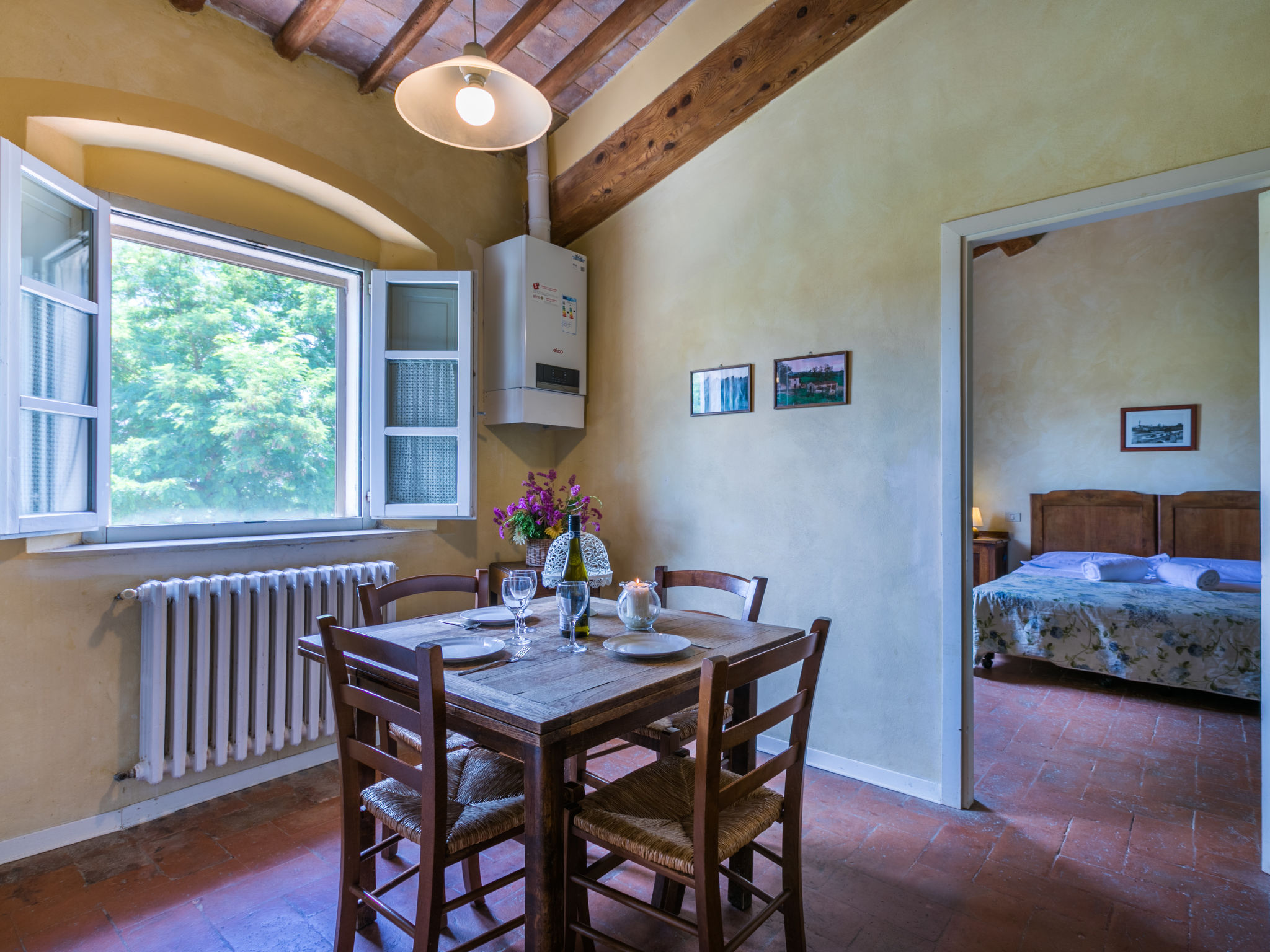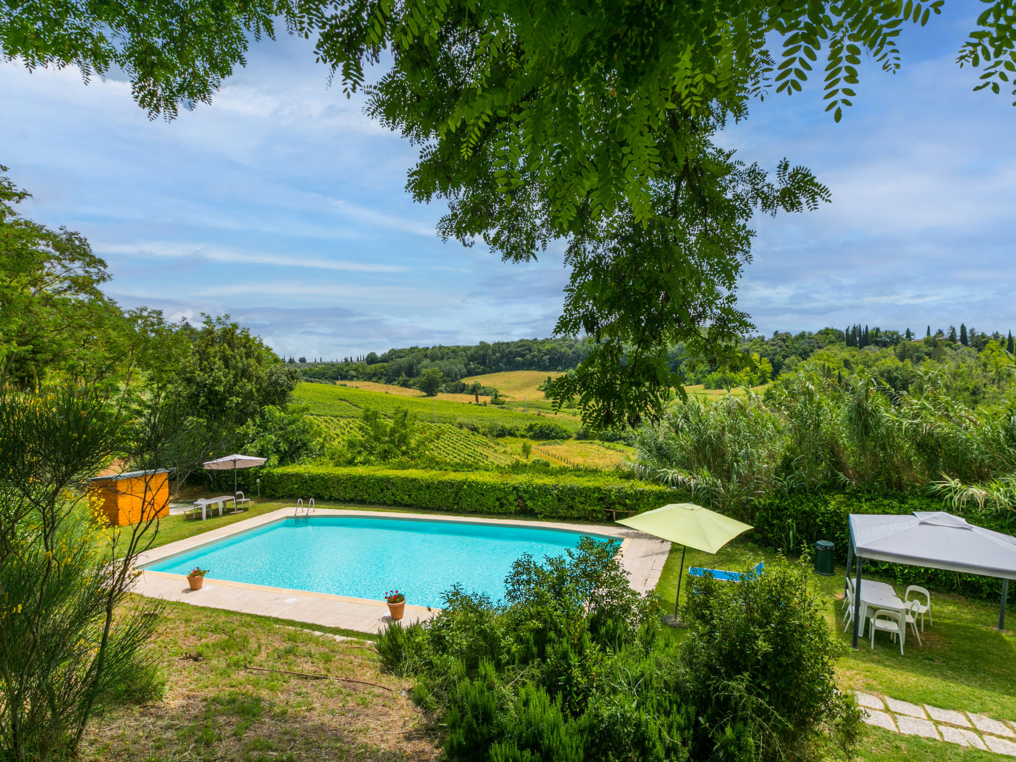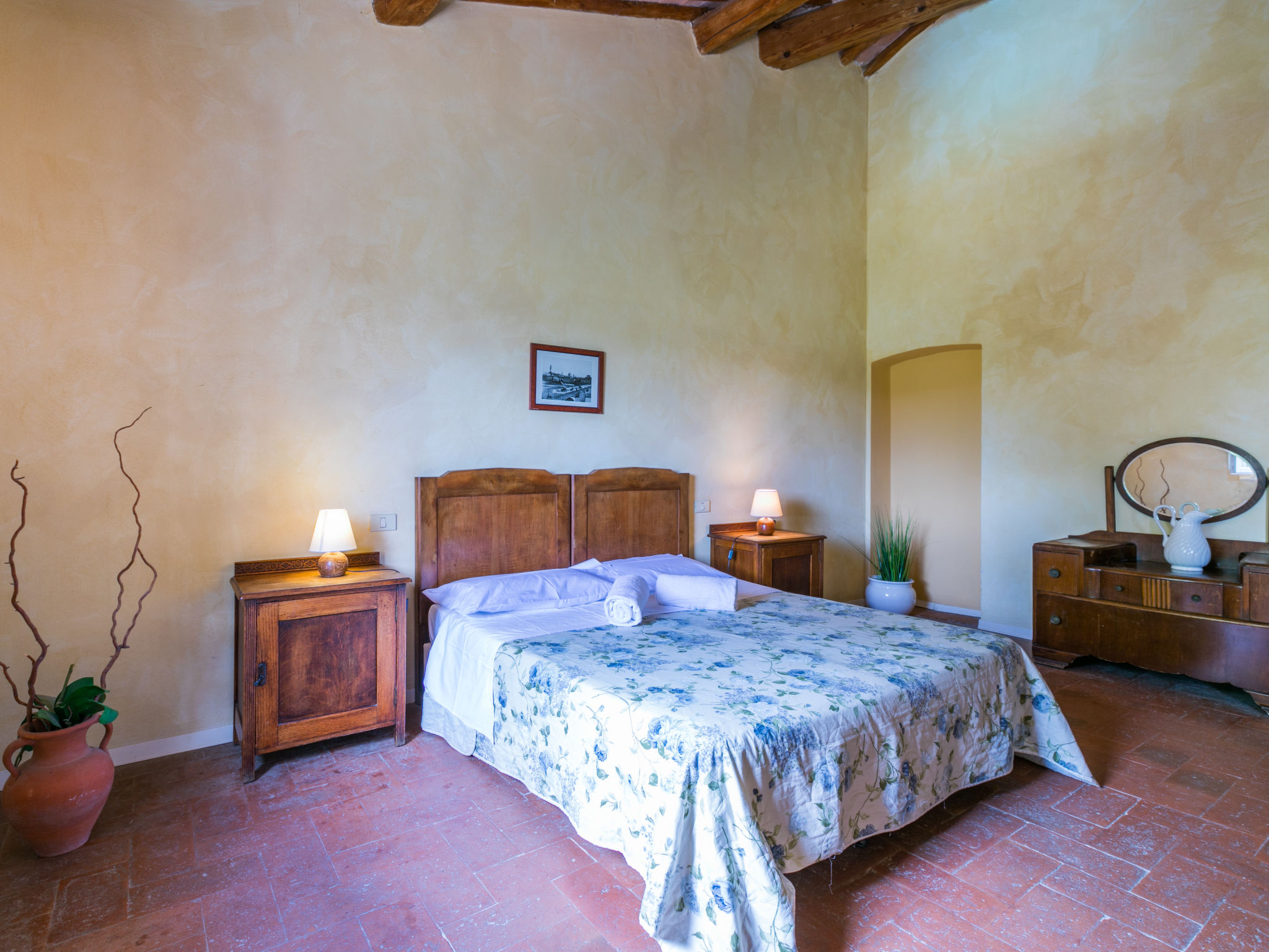 Landgut inmitten der Weinberge und Olivenhaine des Chianti. Jede der rund 12 Wohnungen im Herrenhaus und in einem ehemaligen Nebengebäude verfügt über einen Aussenbereich oder einen Tisch auf der Terrasse, die um das Haupthaus führt. Dank der zentralen Lage ist es ein guter Ausgangspunkt, um die landschaftlichen und kulturellen Schönheiten der Region zu entdecken. Bauerngut "La Moraia", renoviert. 14 km vom Zentrum von Castellina in Chianti, 18 km vom Zentrum von San Gimignano, 50 km vom Zentrum von Firenze, erhöhte Lage, im Grünen. Zur Mitbenutzung: Garten, Schwimmbad (7 x 14 m, 120 - 160 cm tief, saisonale Verfügbarkeit: 23.Mai.-30.Sep. Öffnungszeiten Schwimmbad: 09:00-19:00). Sitzplatz, Grill. Im Hause: Zentralheizung, Waschmaschine (zur Mitbenutzung, extra), Heizung nur verfügbar von 01.11. bis 15.04.. Zufahrt bis zum Haus (1 km Naturweg). Parkplatz. Supermarkt 5 km, Restaurant 5 km, Bahnstation "Poggibonsi" 5 km, Thermalbad "Rapolano Terme" 55 km. Tennis 5 km. Nahe gelegene Sehenswürdigkeiten: Monteriggioni 14 km, Barberino Val d'Elsa 16 km, San Donato 21 km, Radda in Chianti e Badia a Passignano 25 km, Siena 30 km, Volterra 38 km. Bitte beachten: Das Foto ist nur ein Hausbeispiel. In diesem Haus sind weitere Ferienwohnungen mietbar.